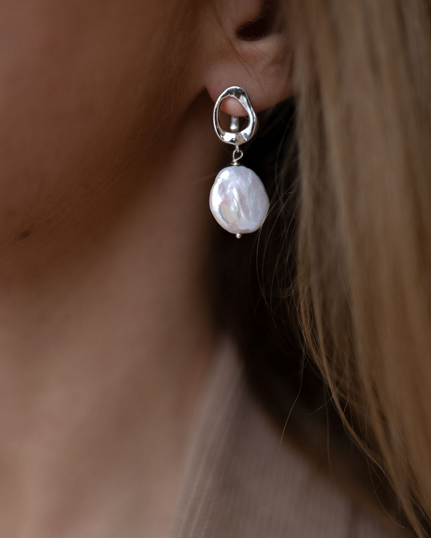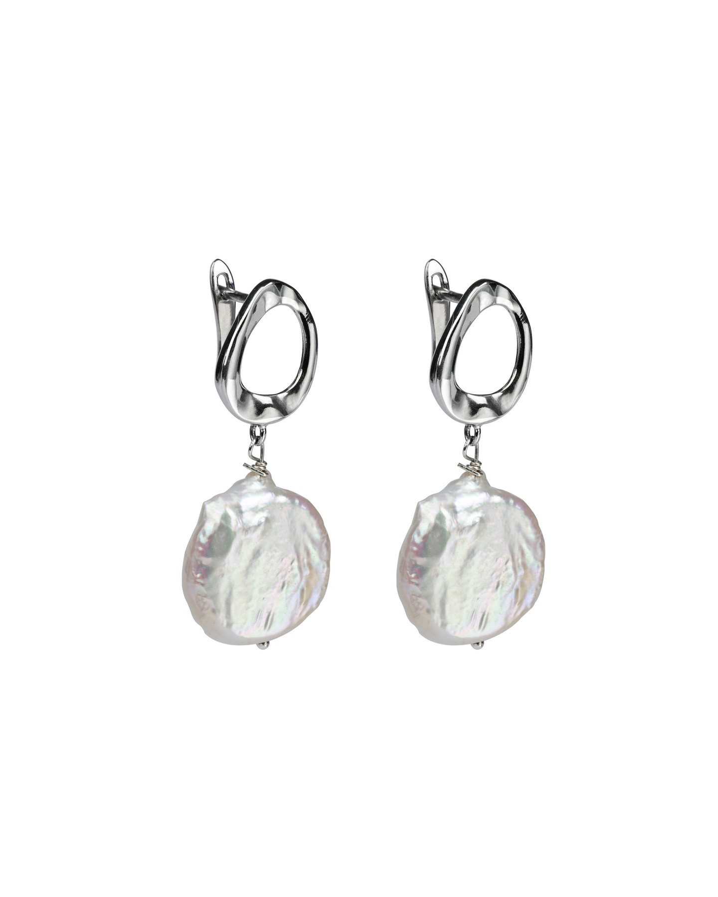 Срібні сережки висячі з барочними перлами 007079