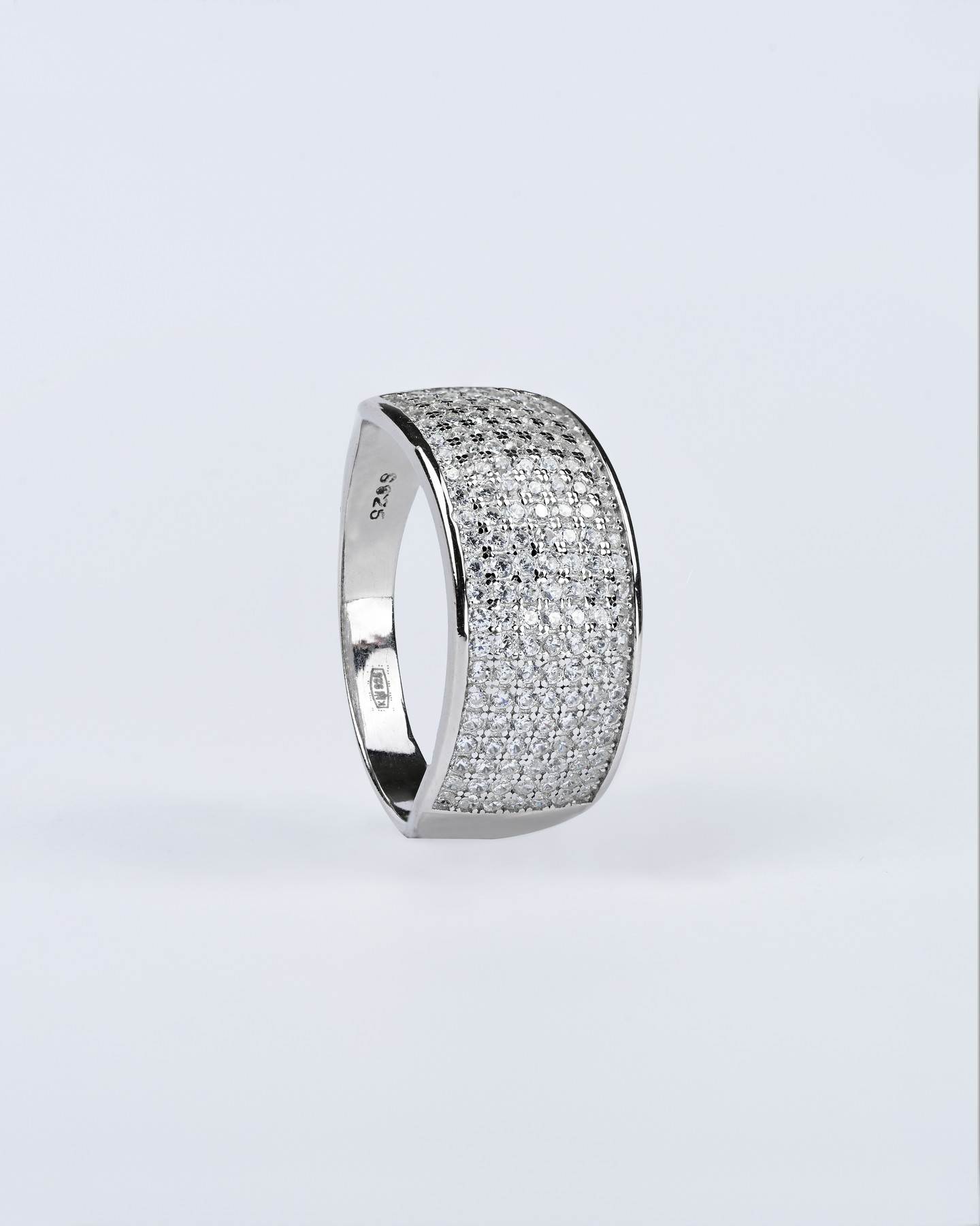 Каблучка срібна широка з цирконієм діамантової огранки 006636