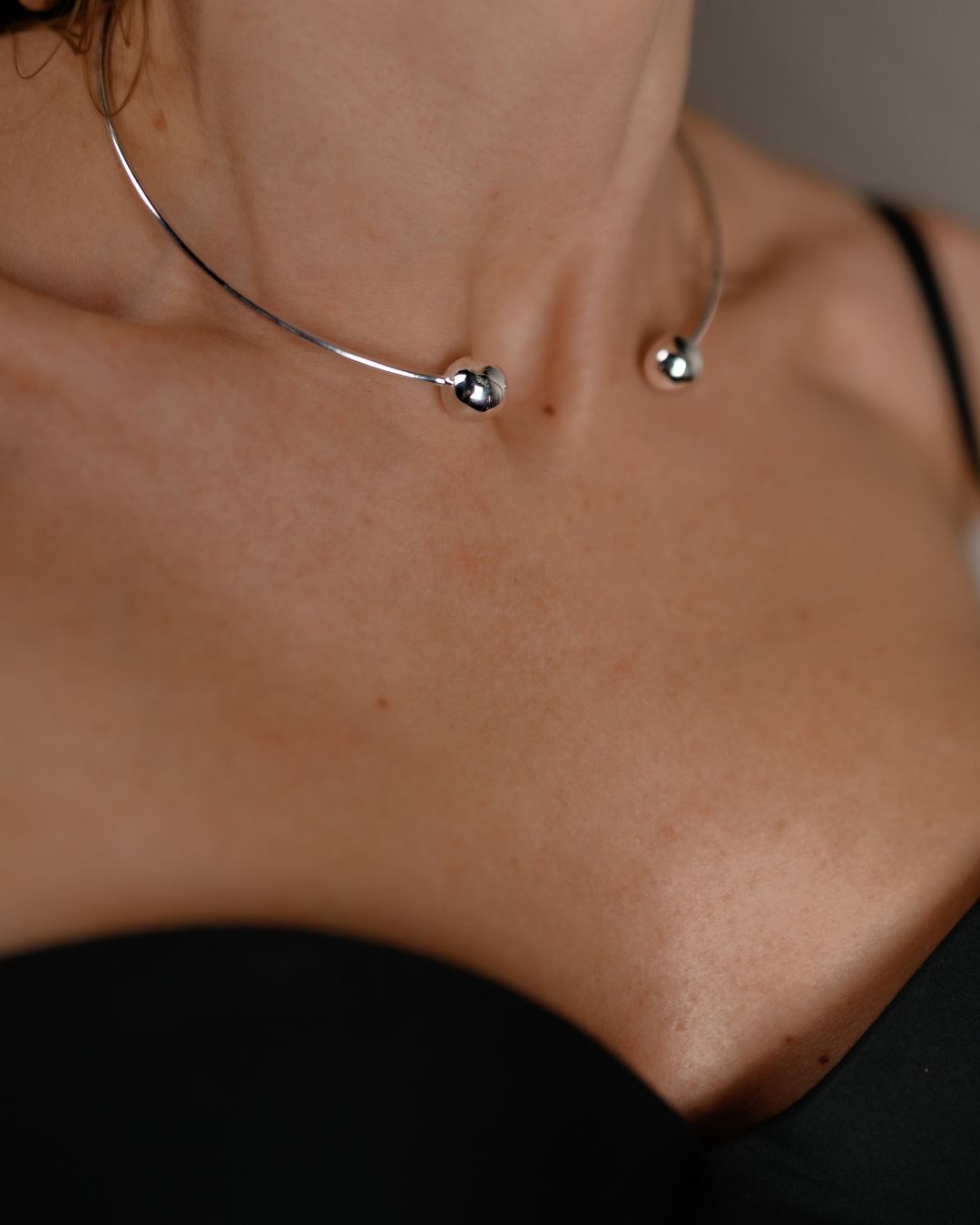 Срібне кольє-чокер лите Кулі 007077