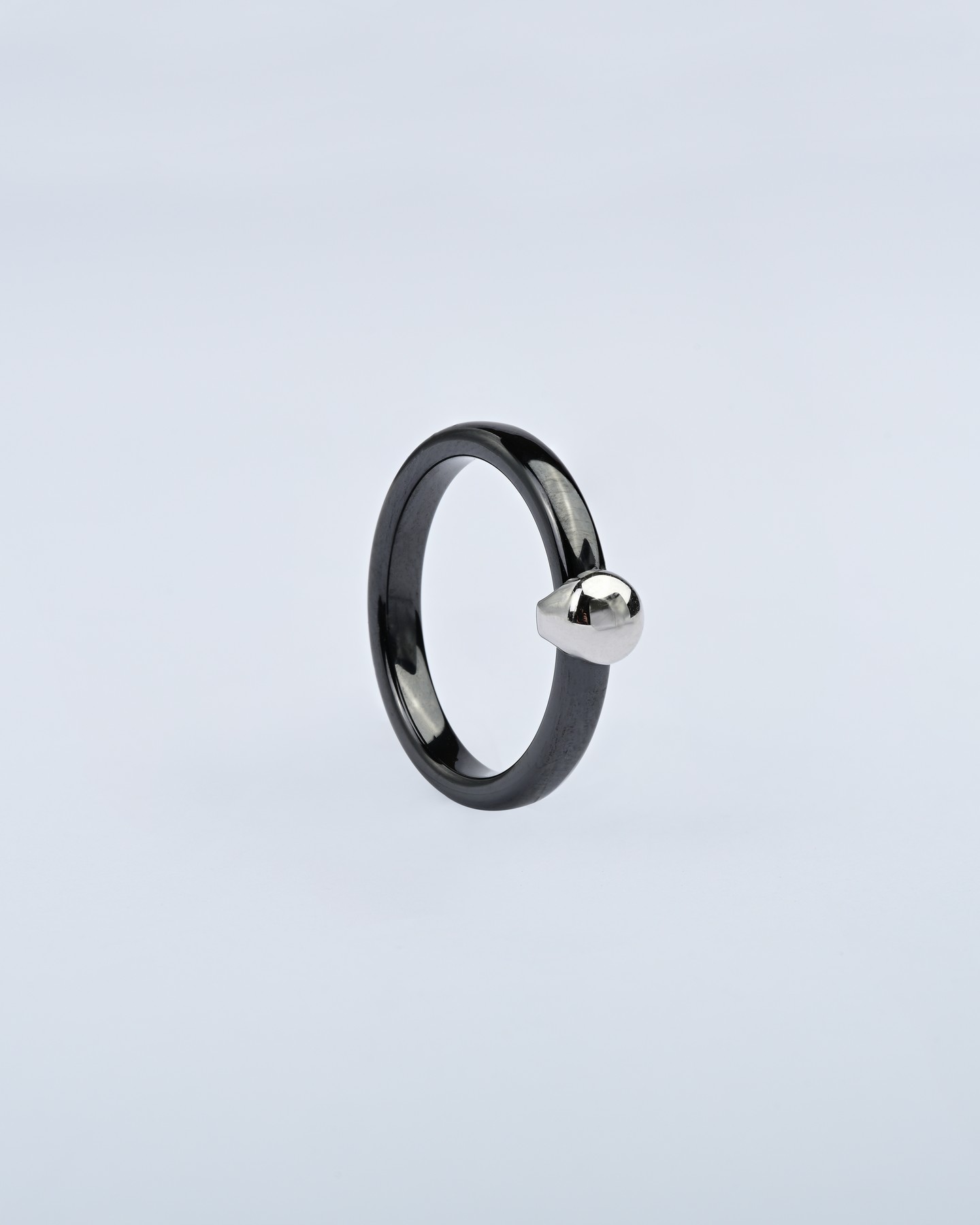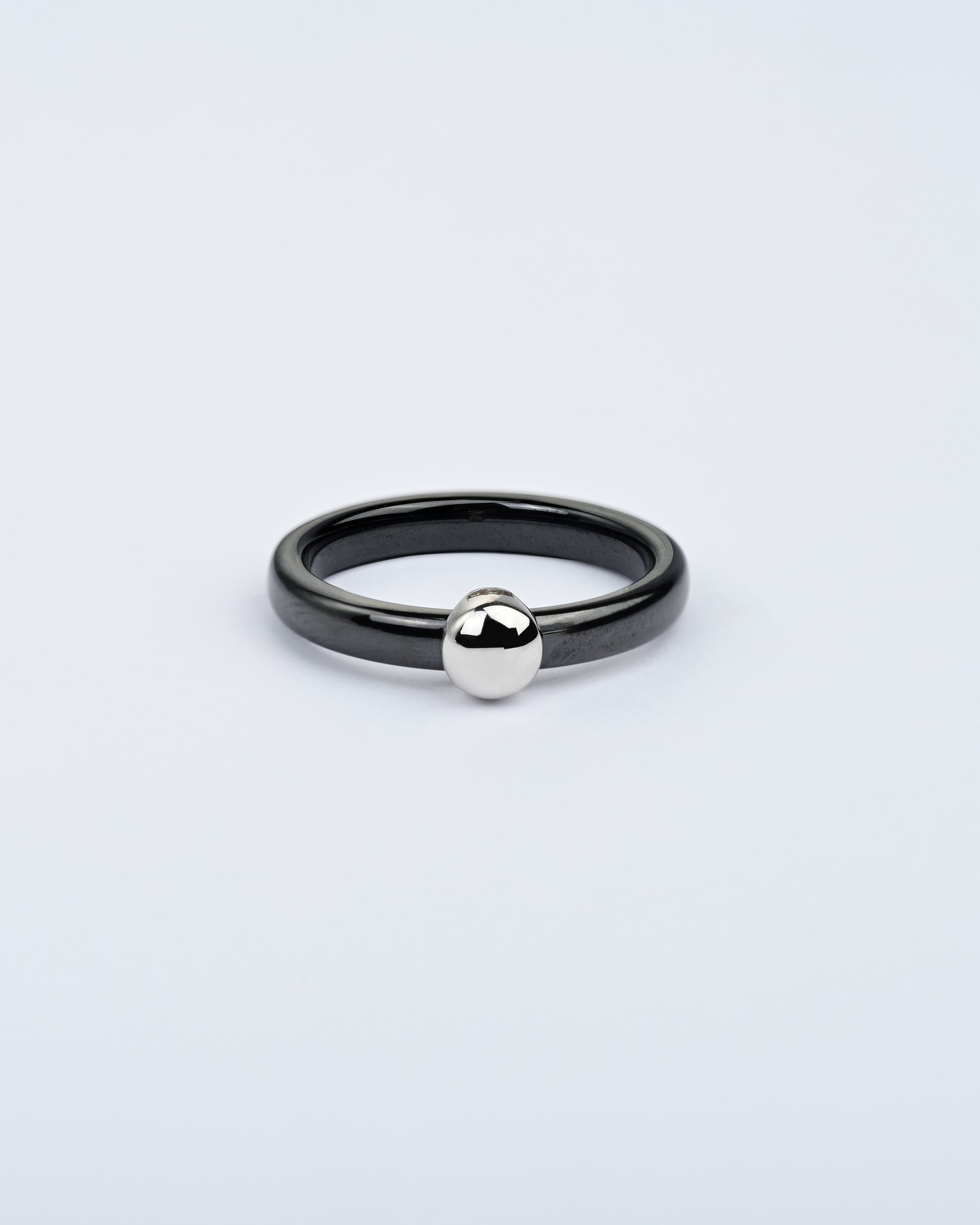 Каблучка срібна з чорною керамікою і кулькою 007073