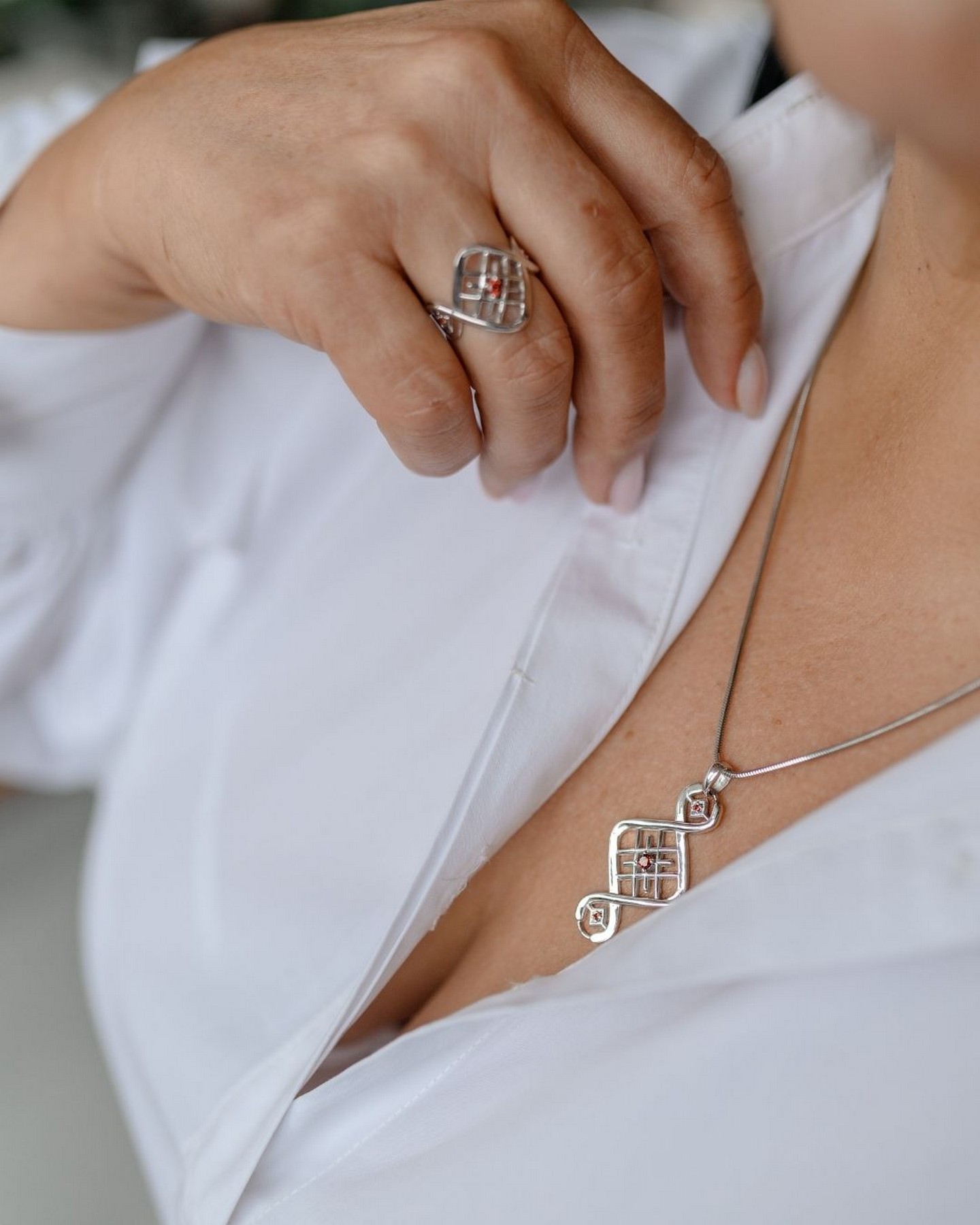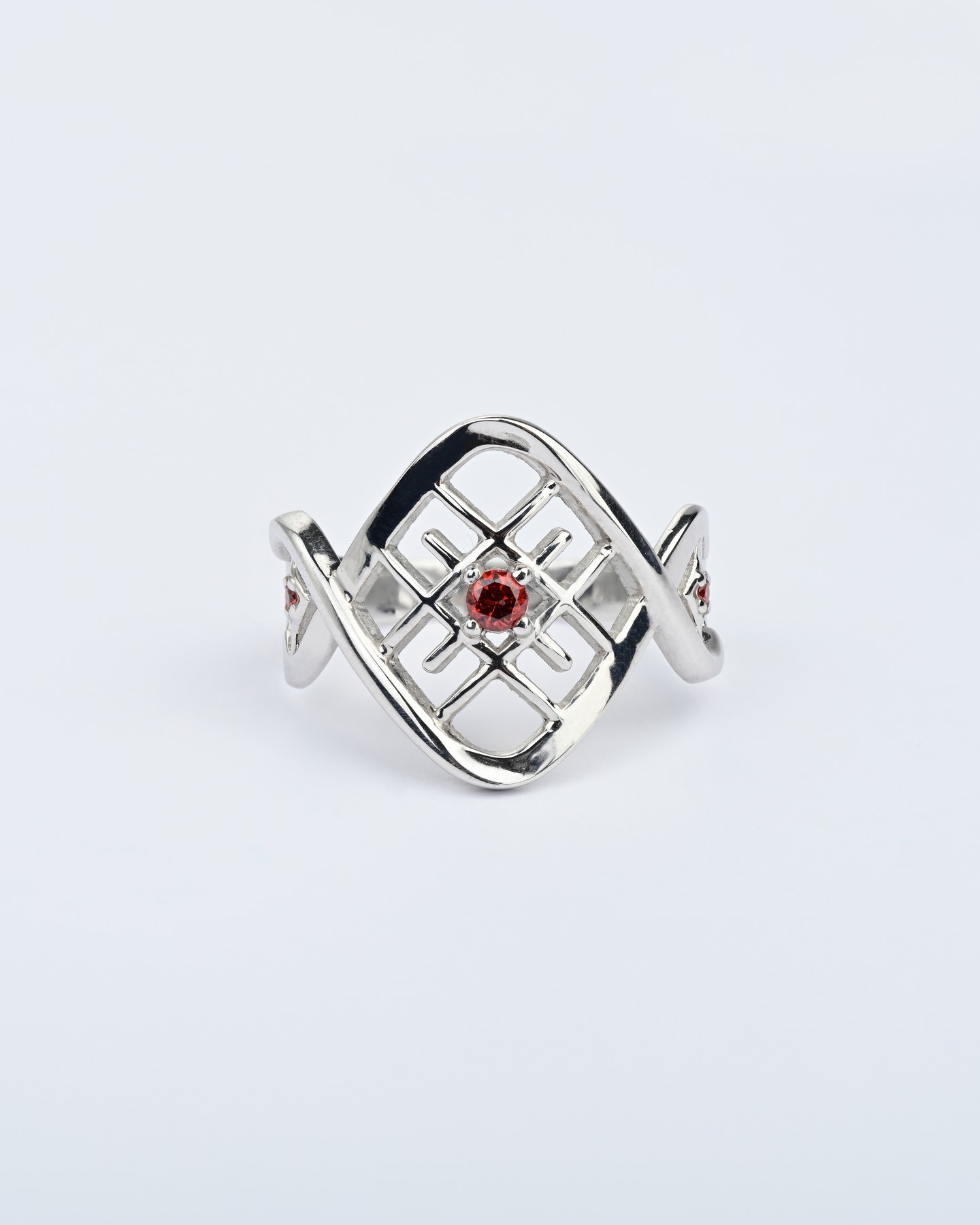 Каблучка срібна ДНК Нації з гранатовим цирконієм 007072