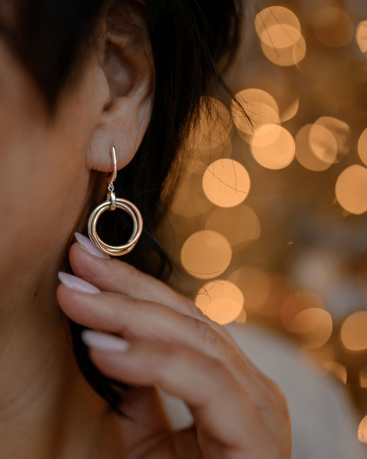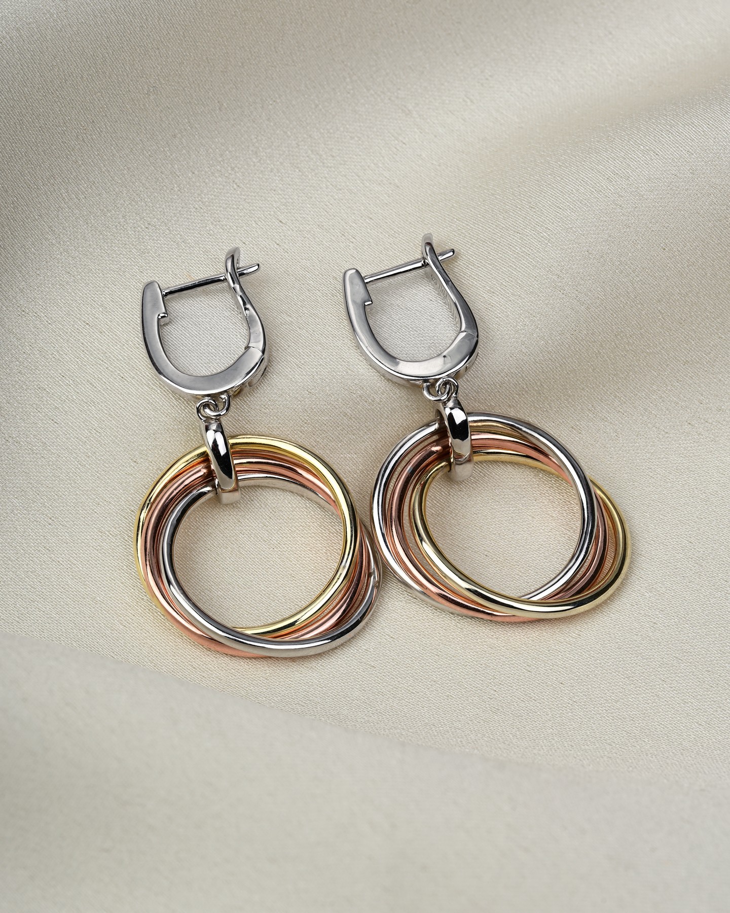 Сережки срібні висячі Три кільця в позолоті 007065