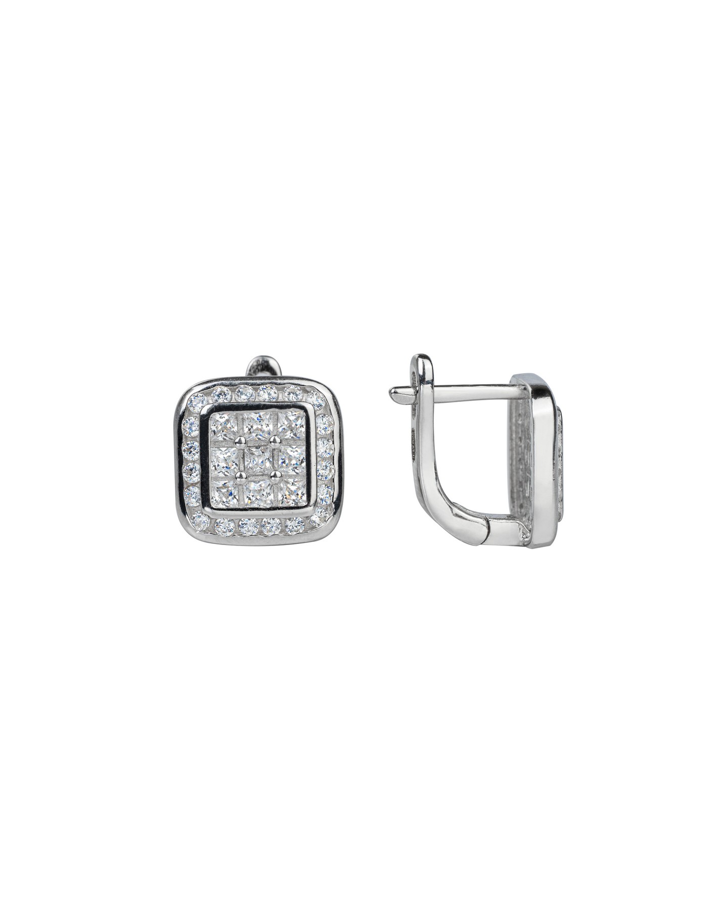 Сережки срібні Квадрати із цирконієм діамантового огранювання 007040