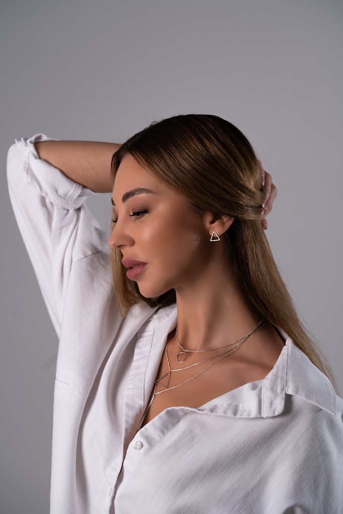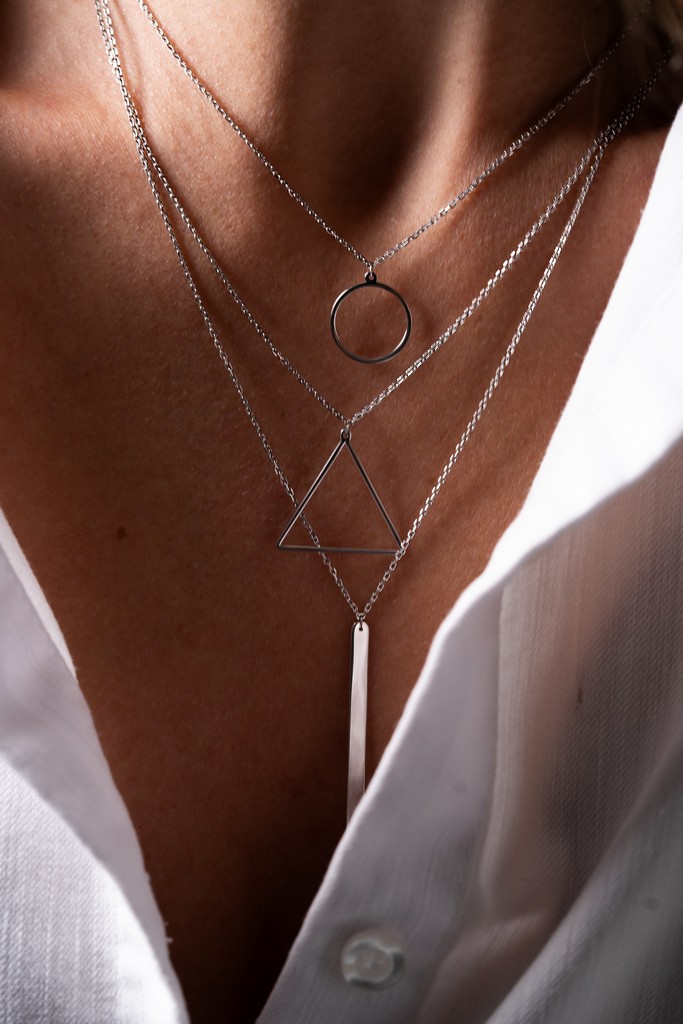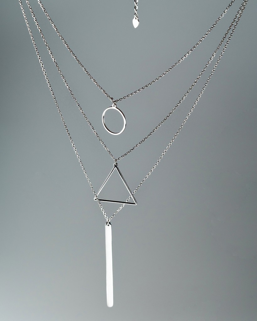 Кольє срібне потрійне багатошарове Геометрія 004945