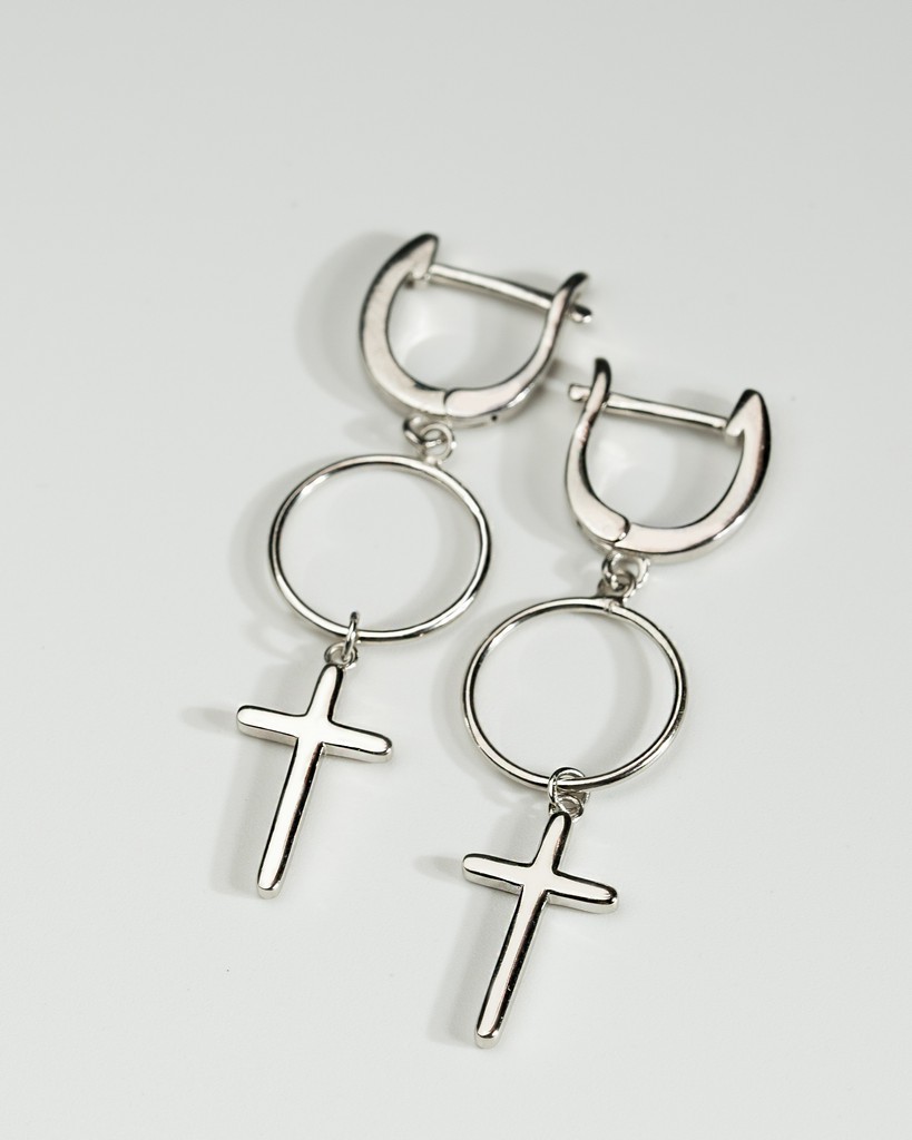 Сережки срібні з хрестом 006500