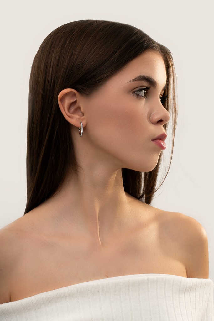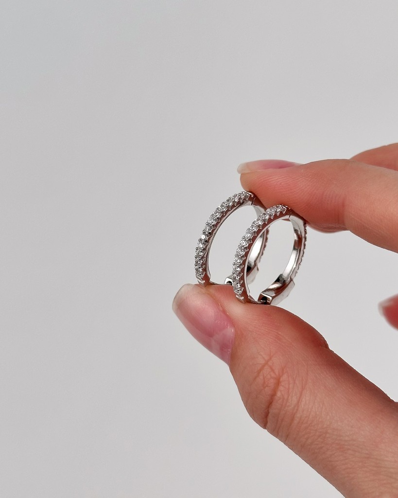 Сережки-кільця срібні з цирконієм діамантового огранювання 2см 003548