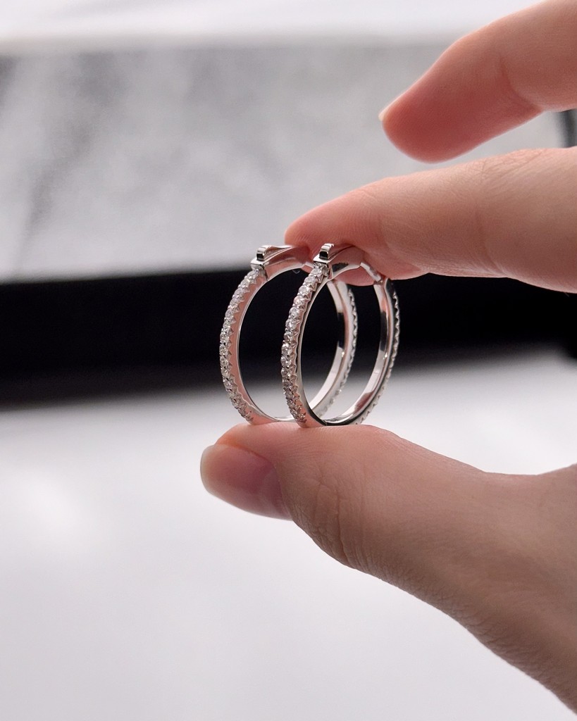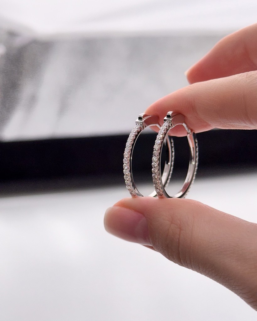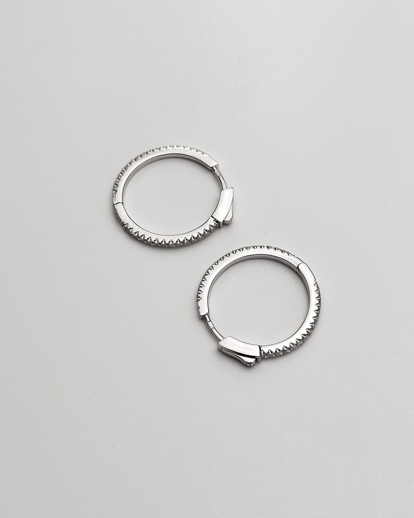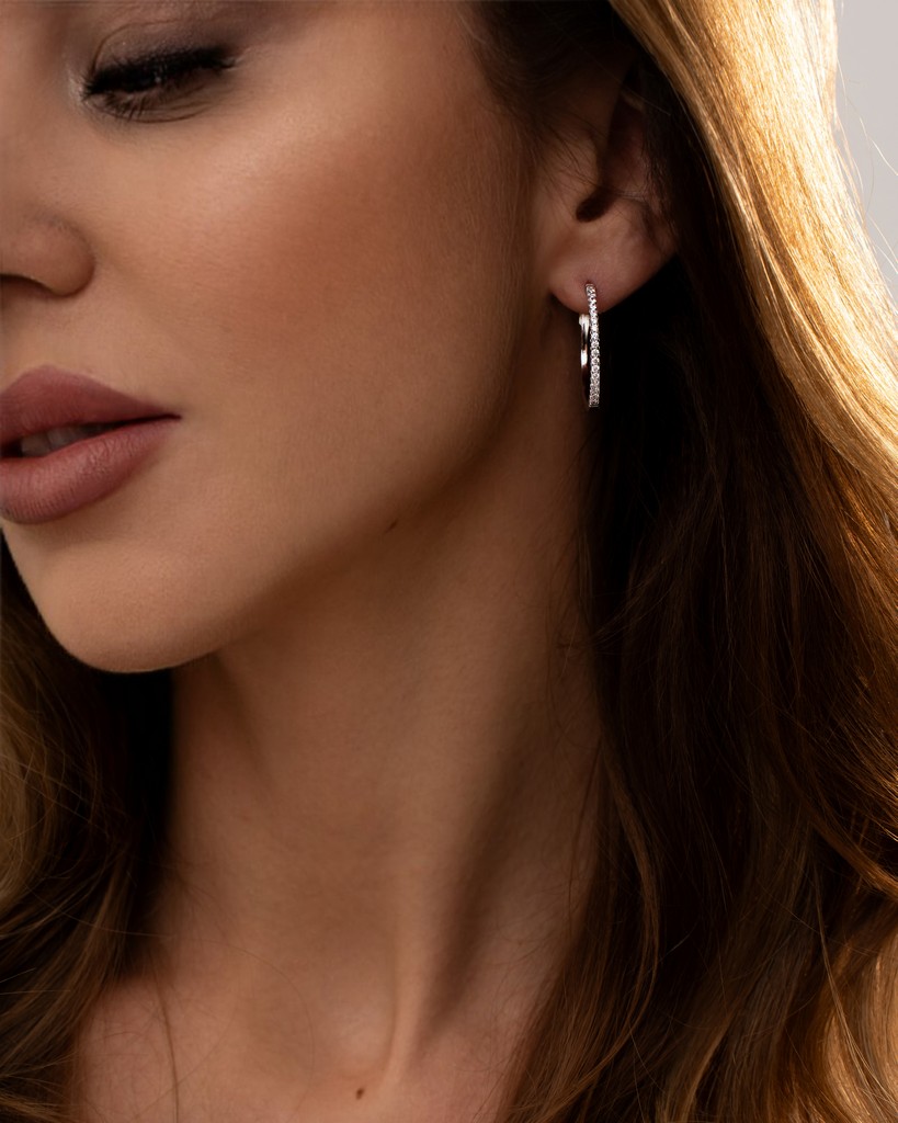 Сережки-кільця срібні з цирконієм діамантового огранювання 2,5см 006483