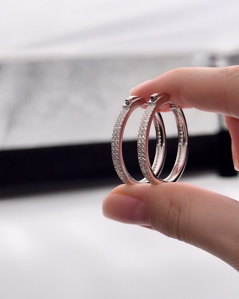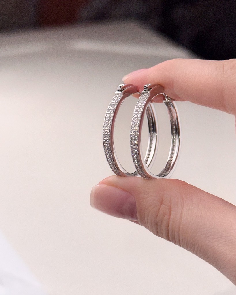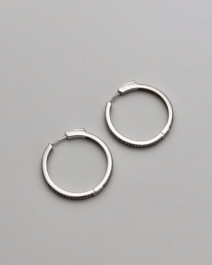 Сережки-кільця срібні з цирконієм діамантового огранювання 3см 003558