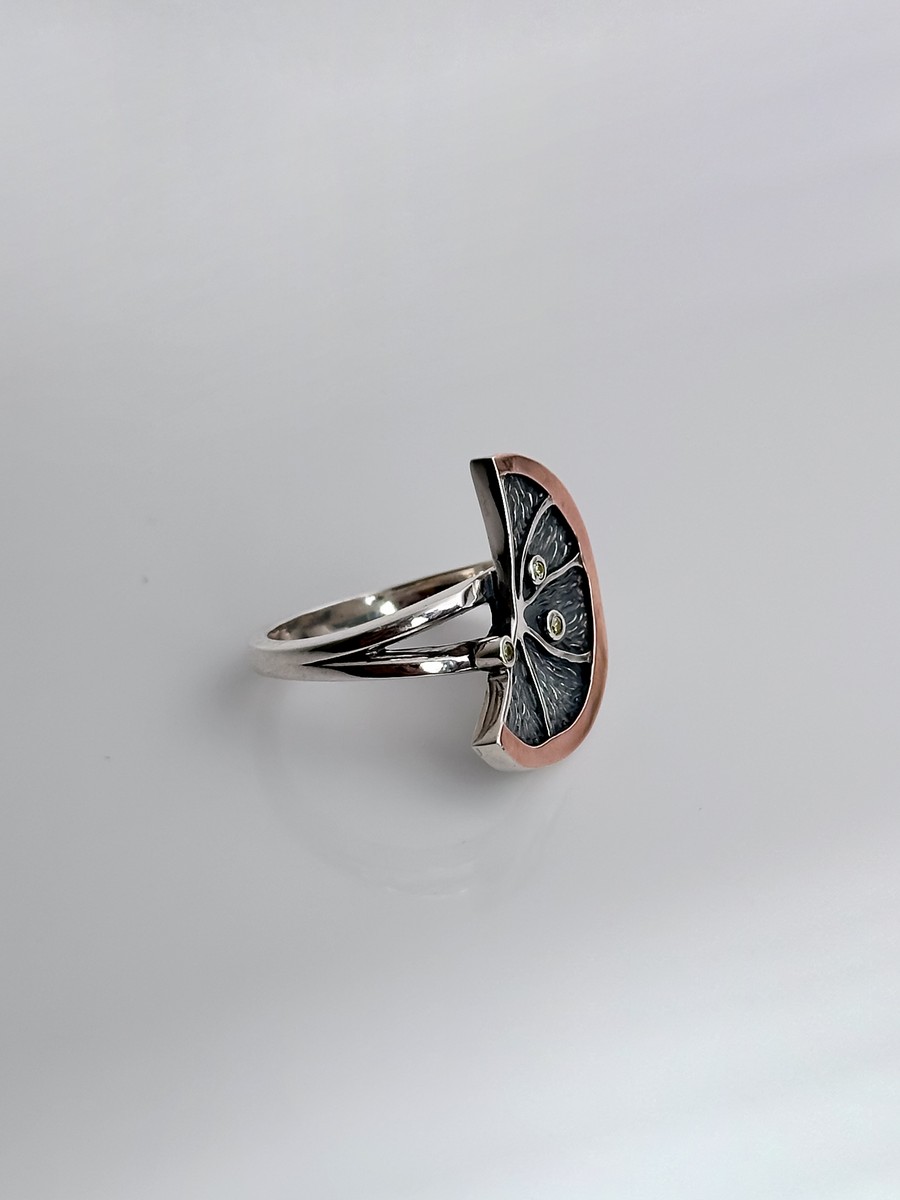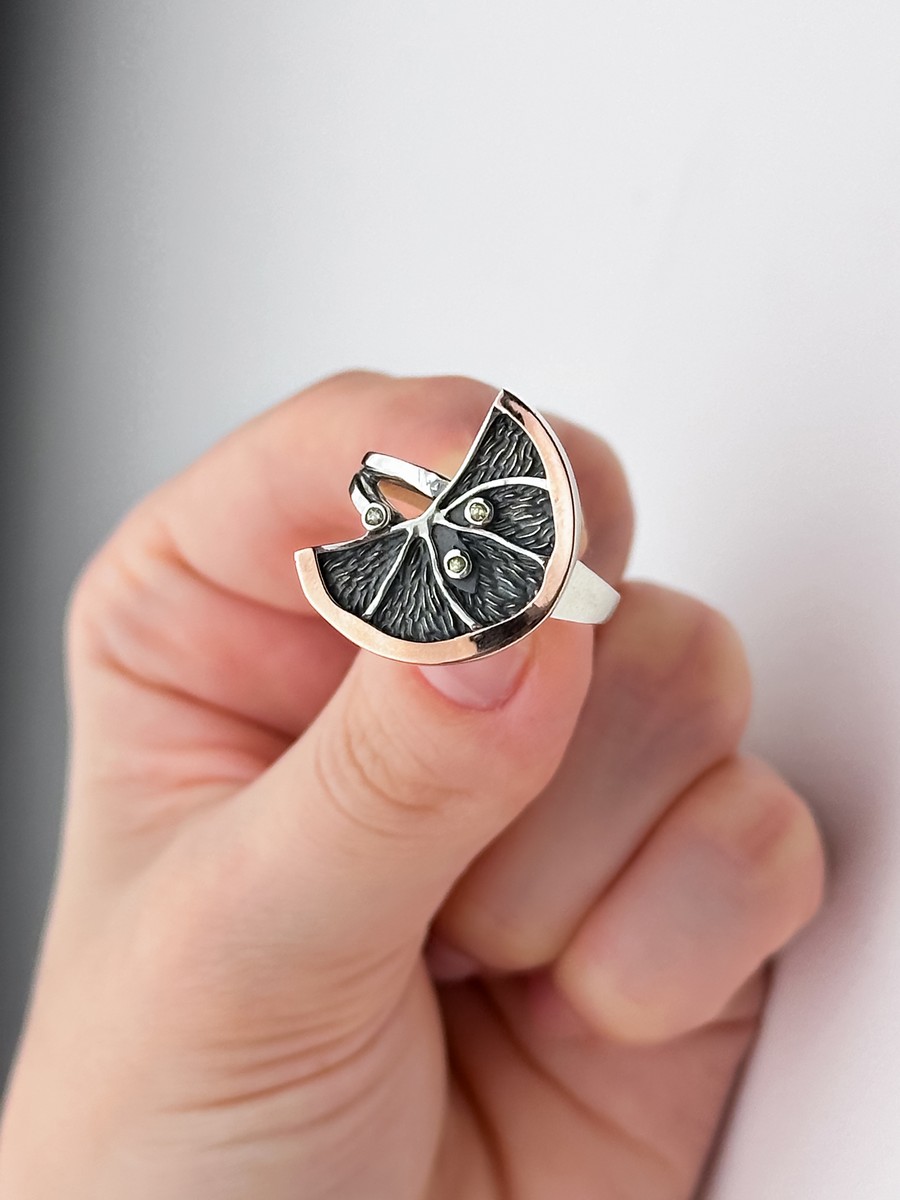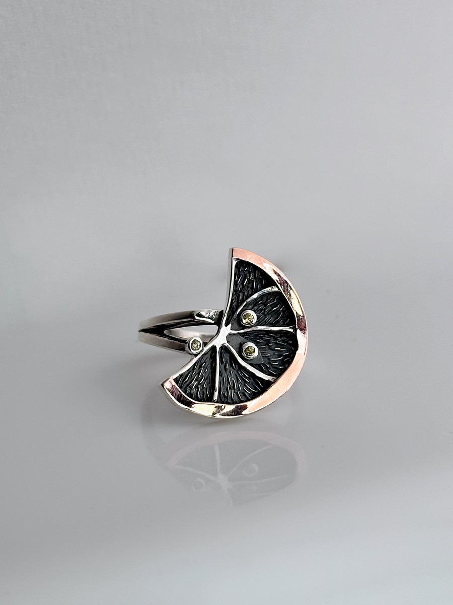 Каблучка срібна із золотою пластиною Лимон 006623