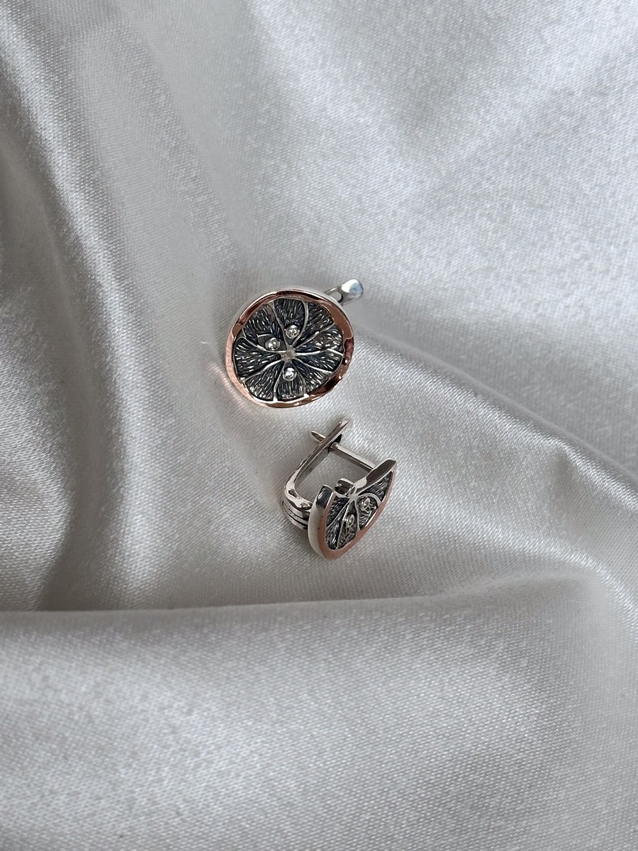 Сережки срібні із золотою пластиною Лимони 006622