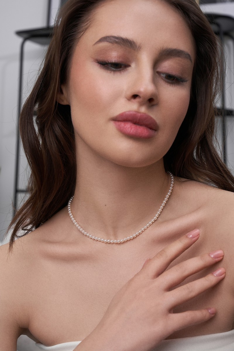 Кольє-чокер срібне з перлами 006655