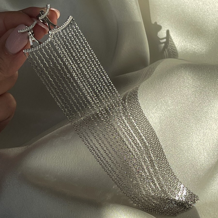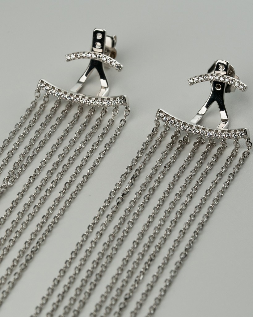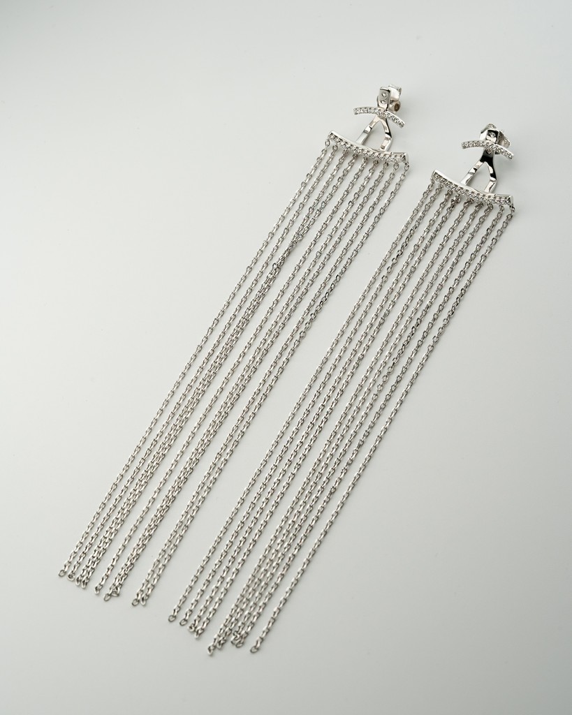 Срібна сережка моно із ланцюжками Срібний дощ 006630
