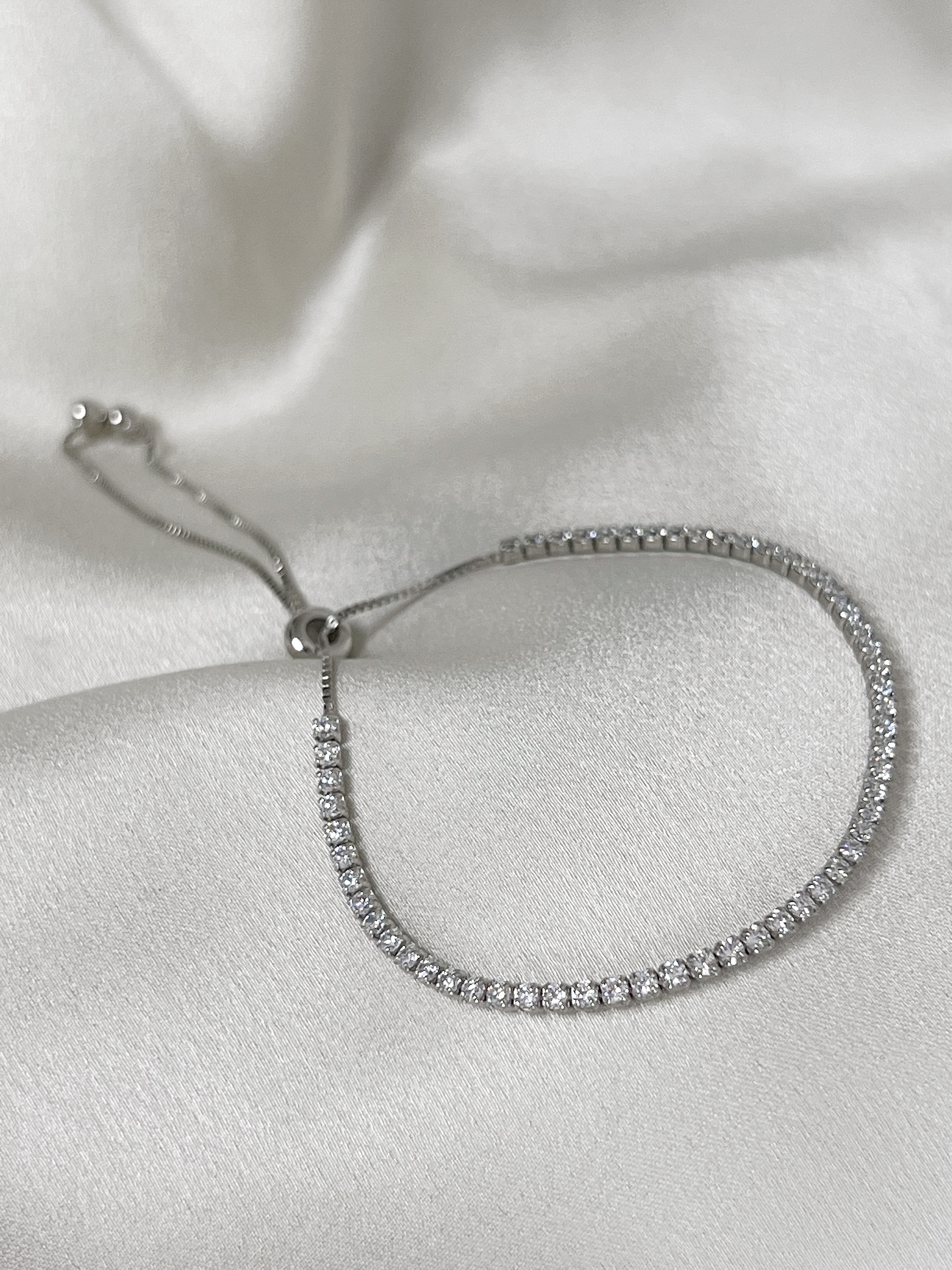 Браслет срібний з цирконієм діамантового огранювання на затяжці 000284