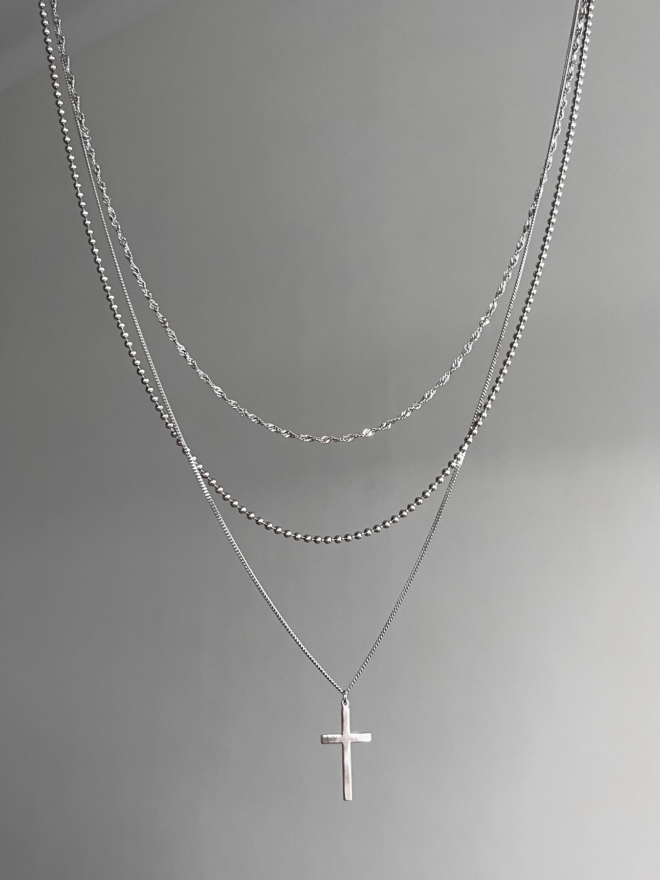 Срібне кольє потрійне з хрестом 004981