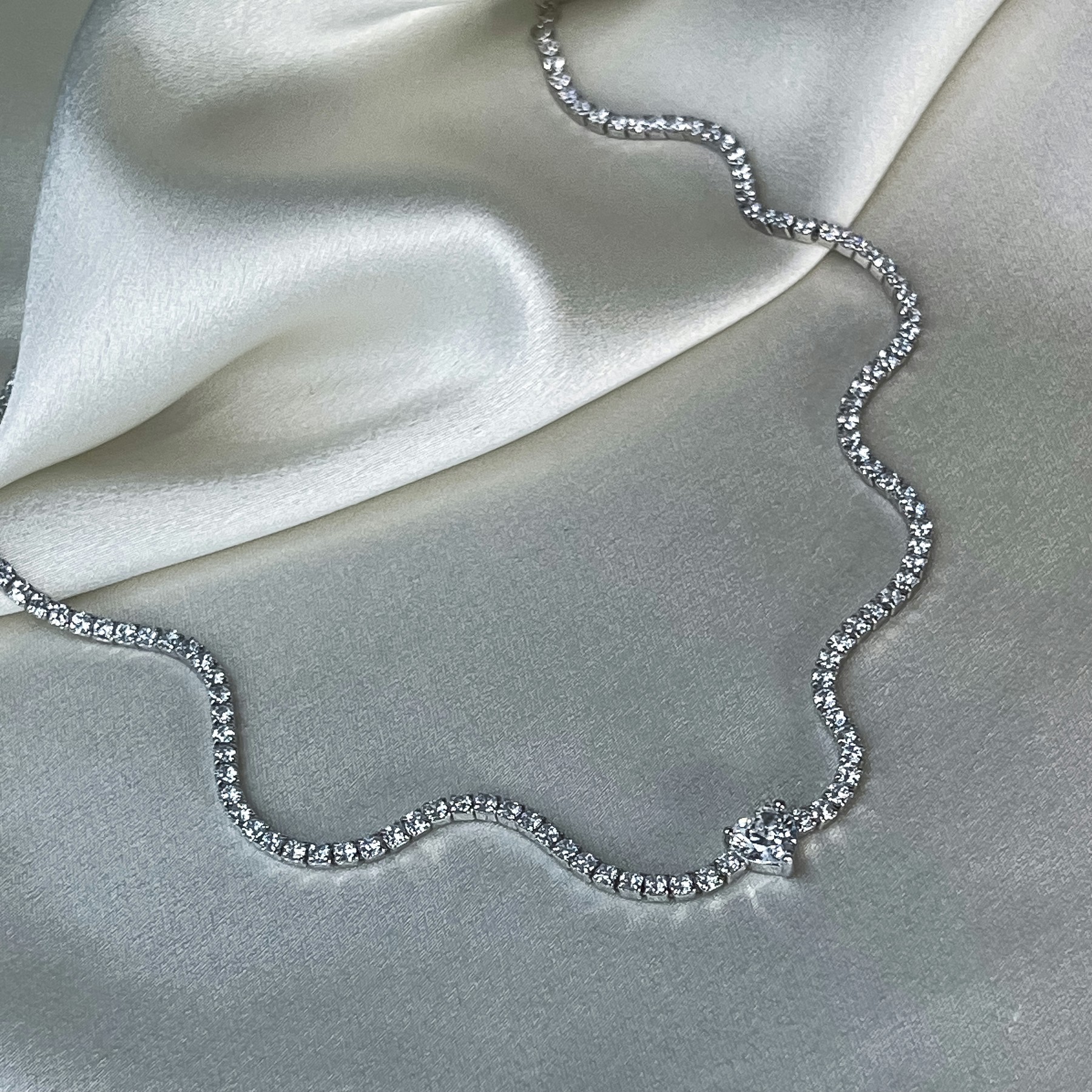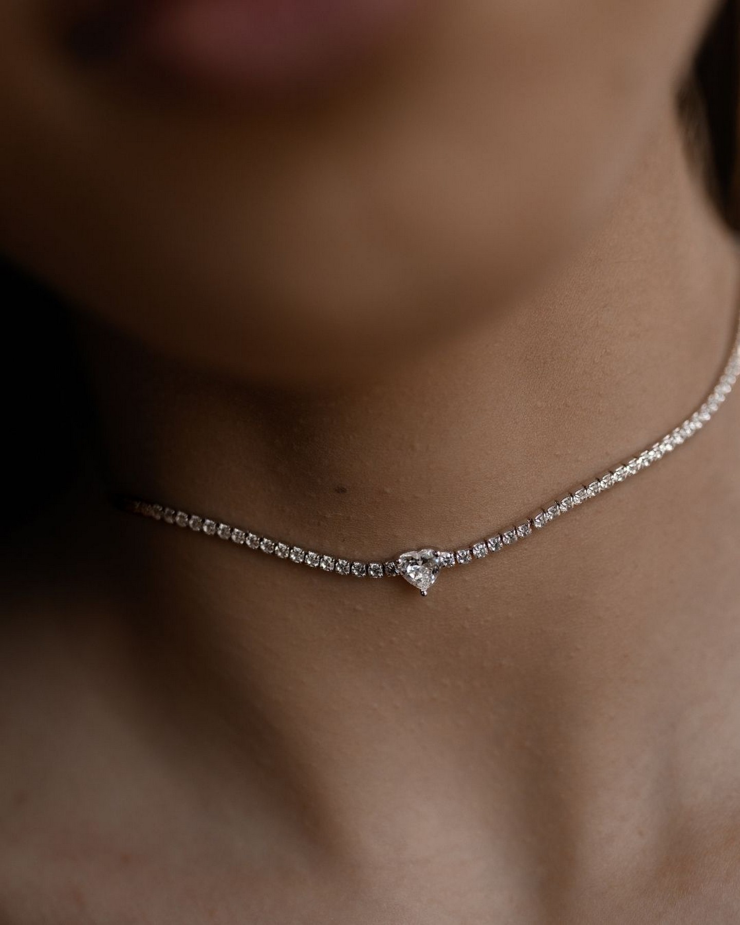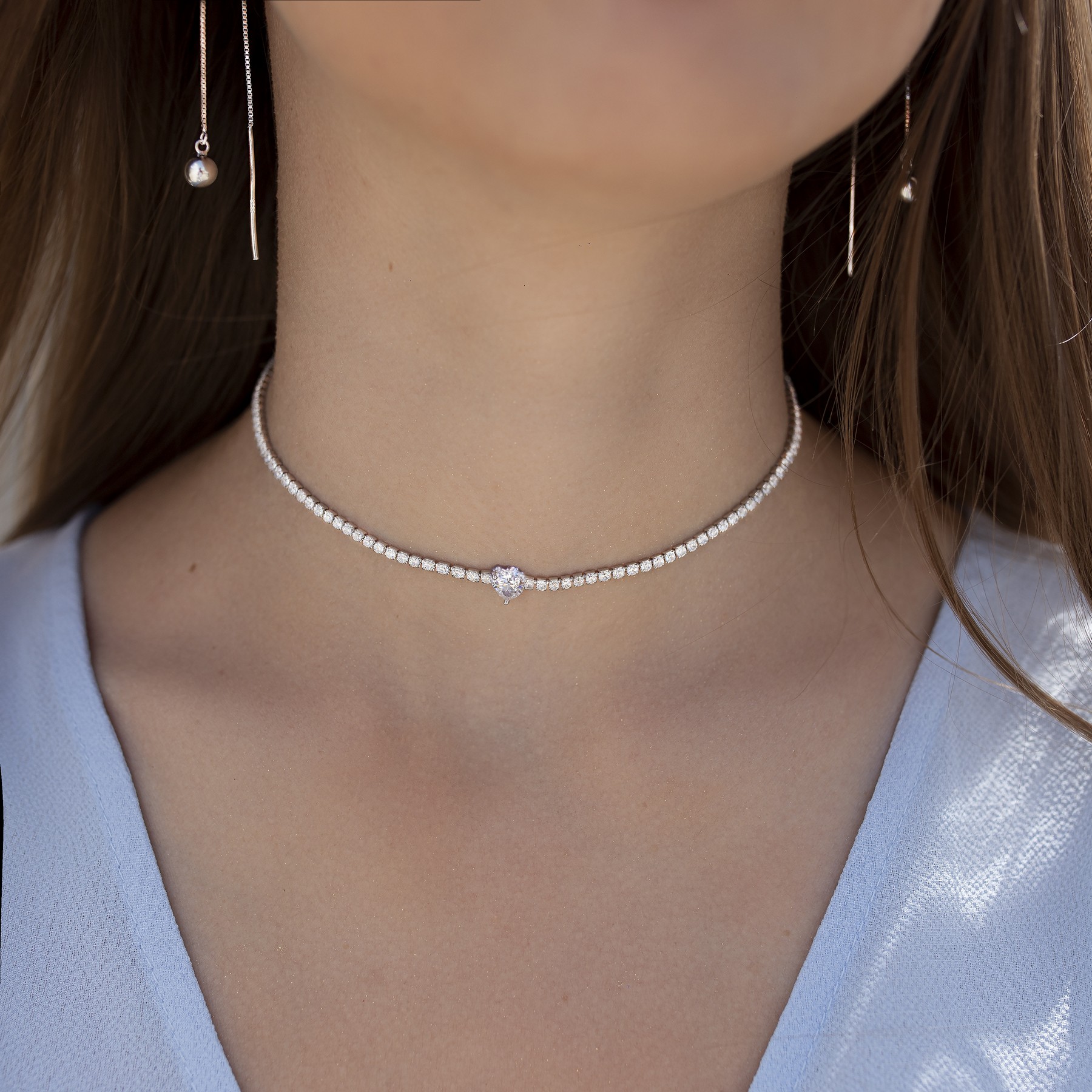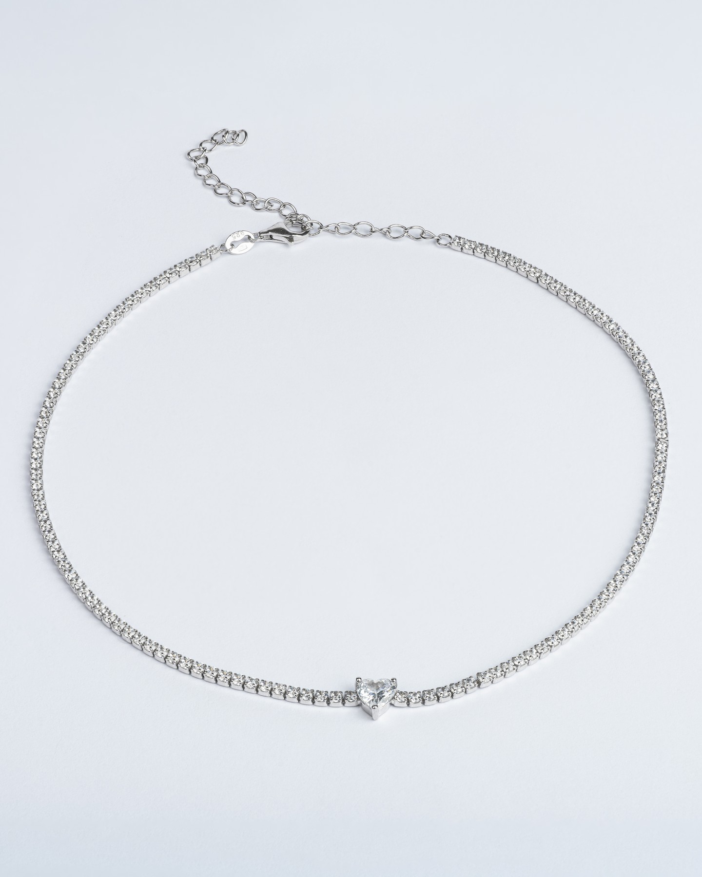 Кольє-чокер срібне з цирконієм діамантового огранювання Серце 005230