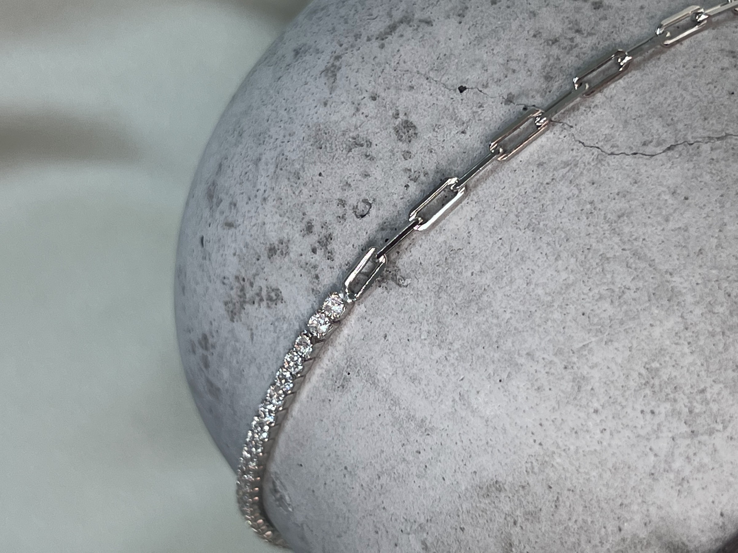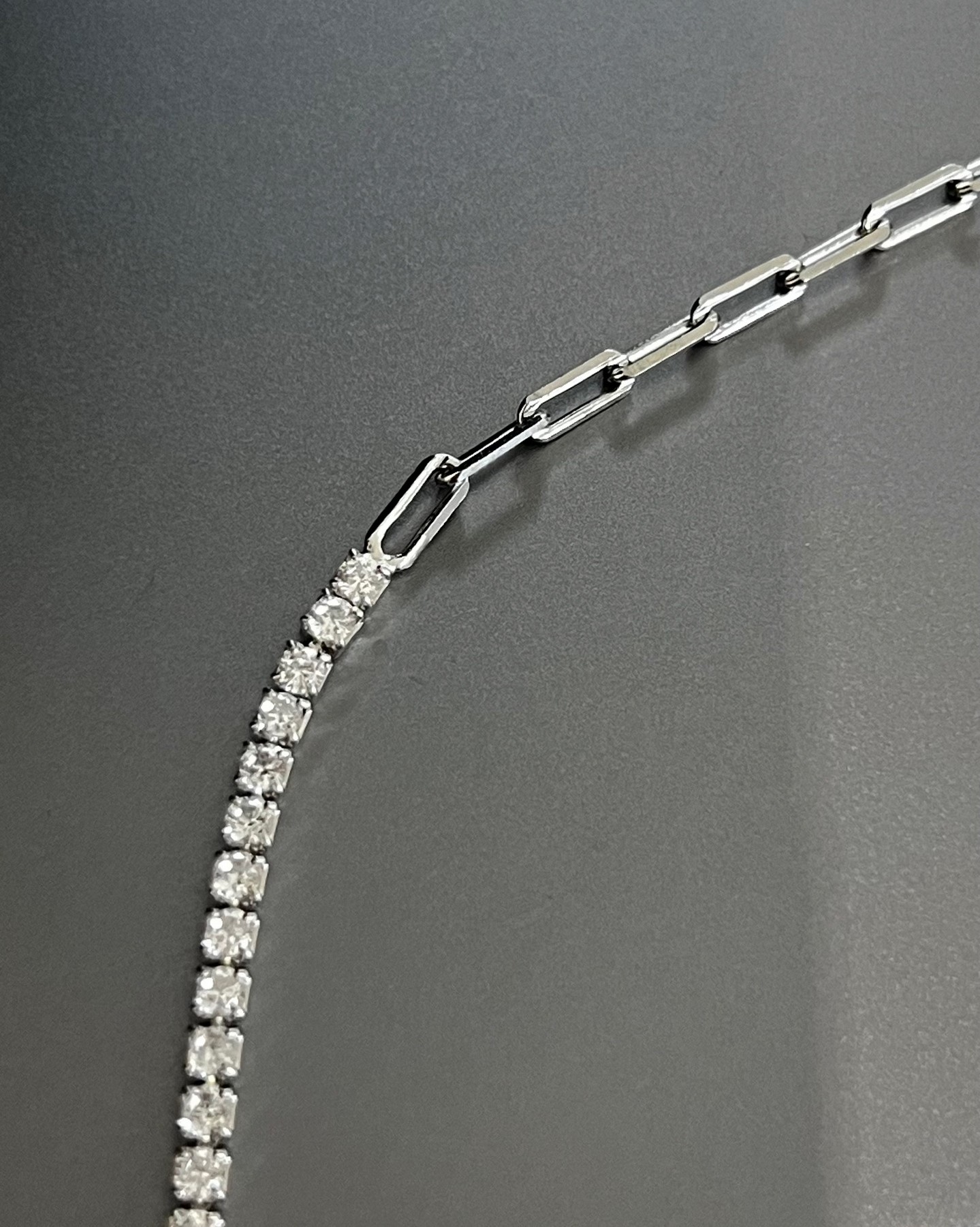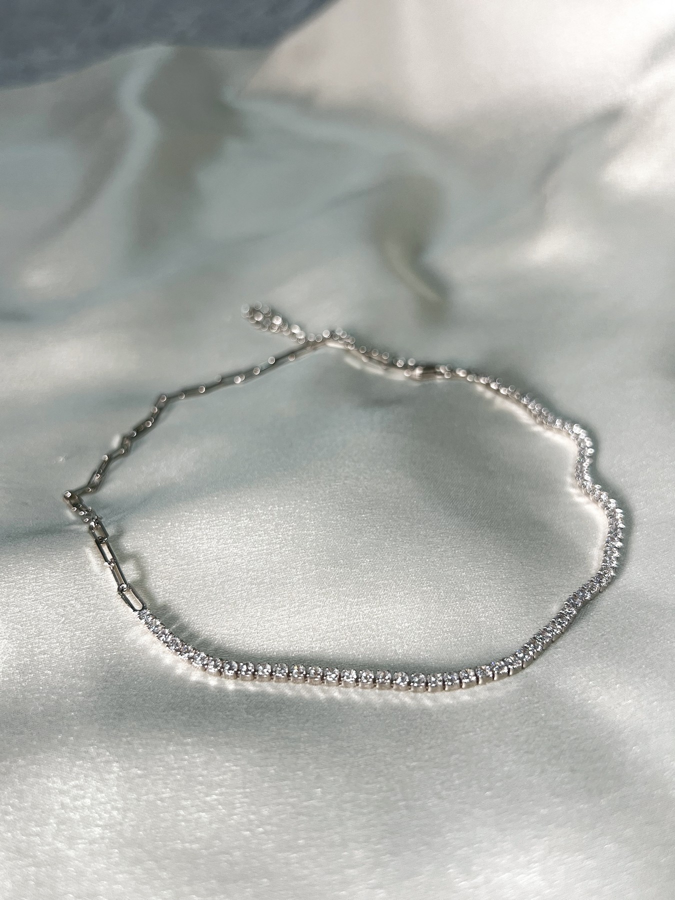 Кольє-чокер срібне з цирконієм діамантового огранювання та ланцюжком 005231