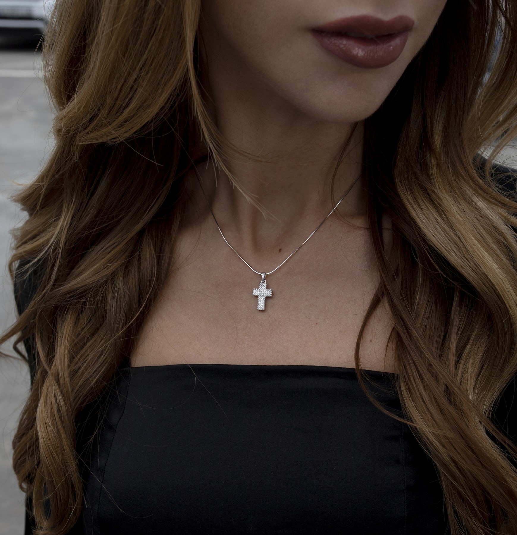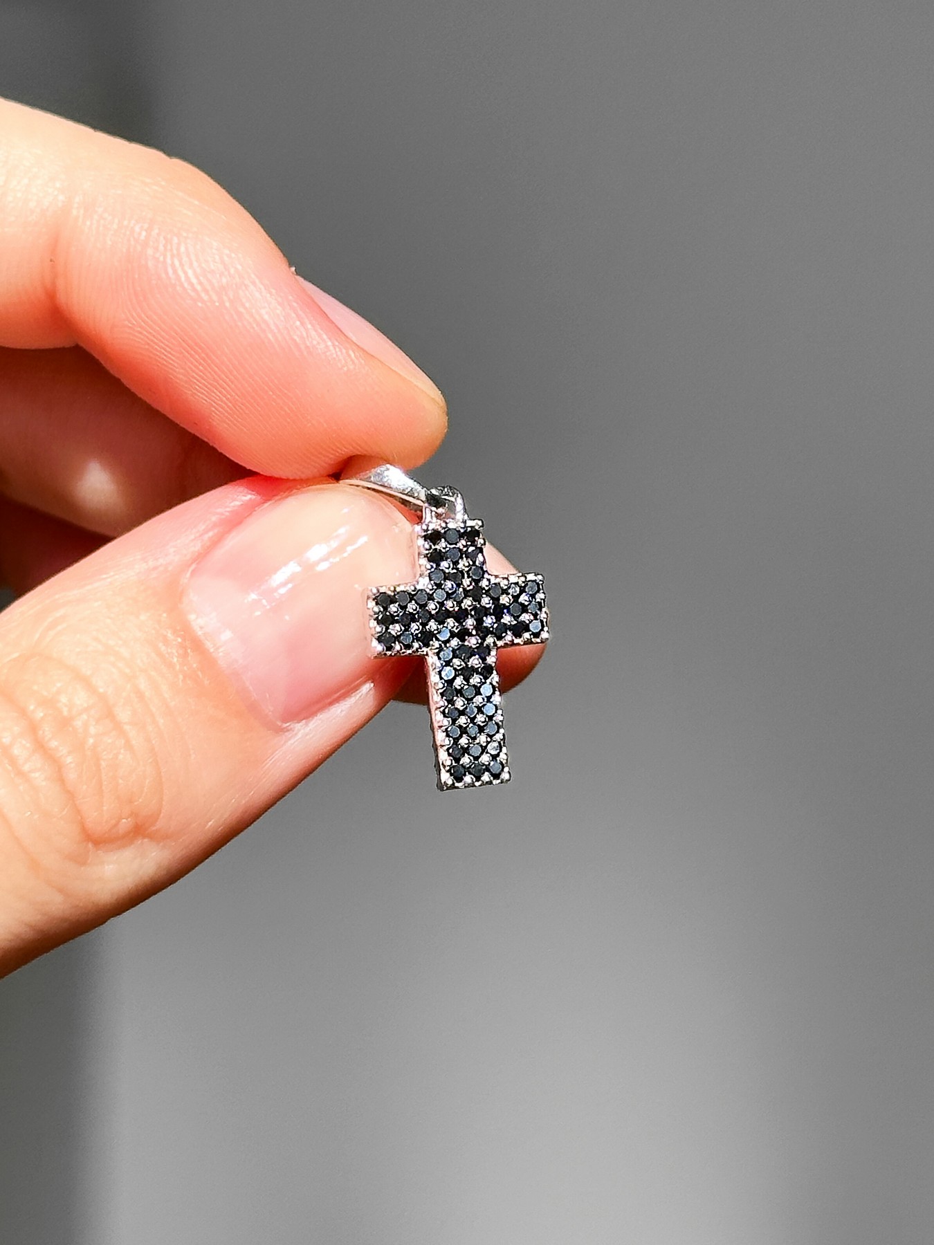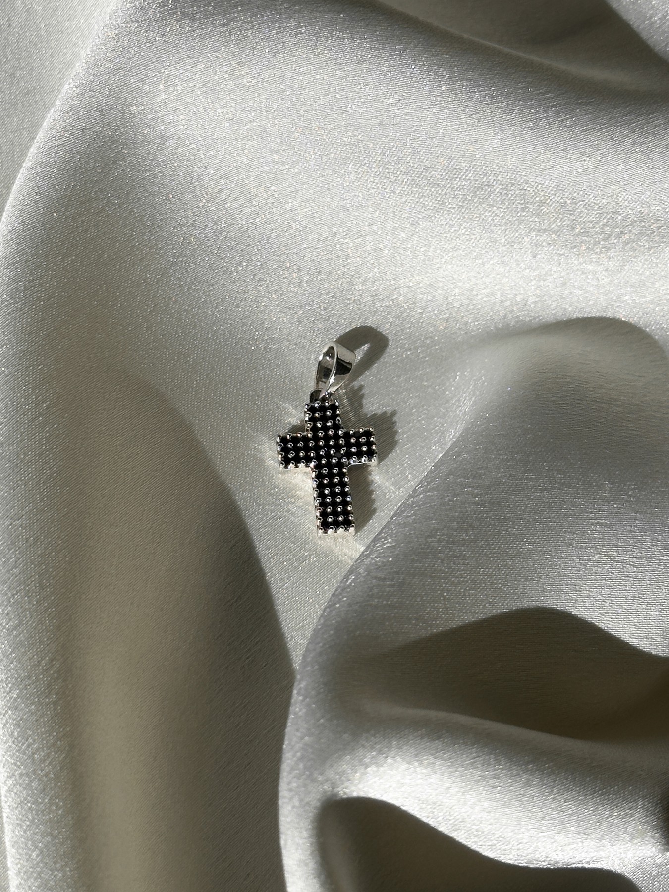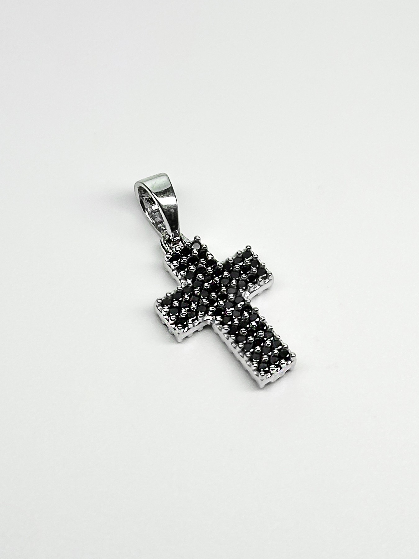 Підвіс срібний двосторонній чорно-білий хрестик