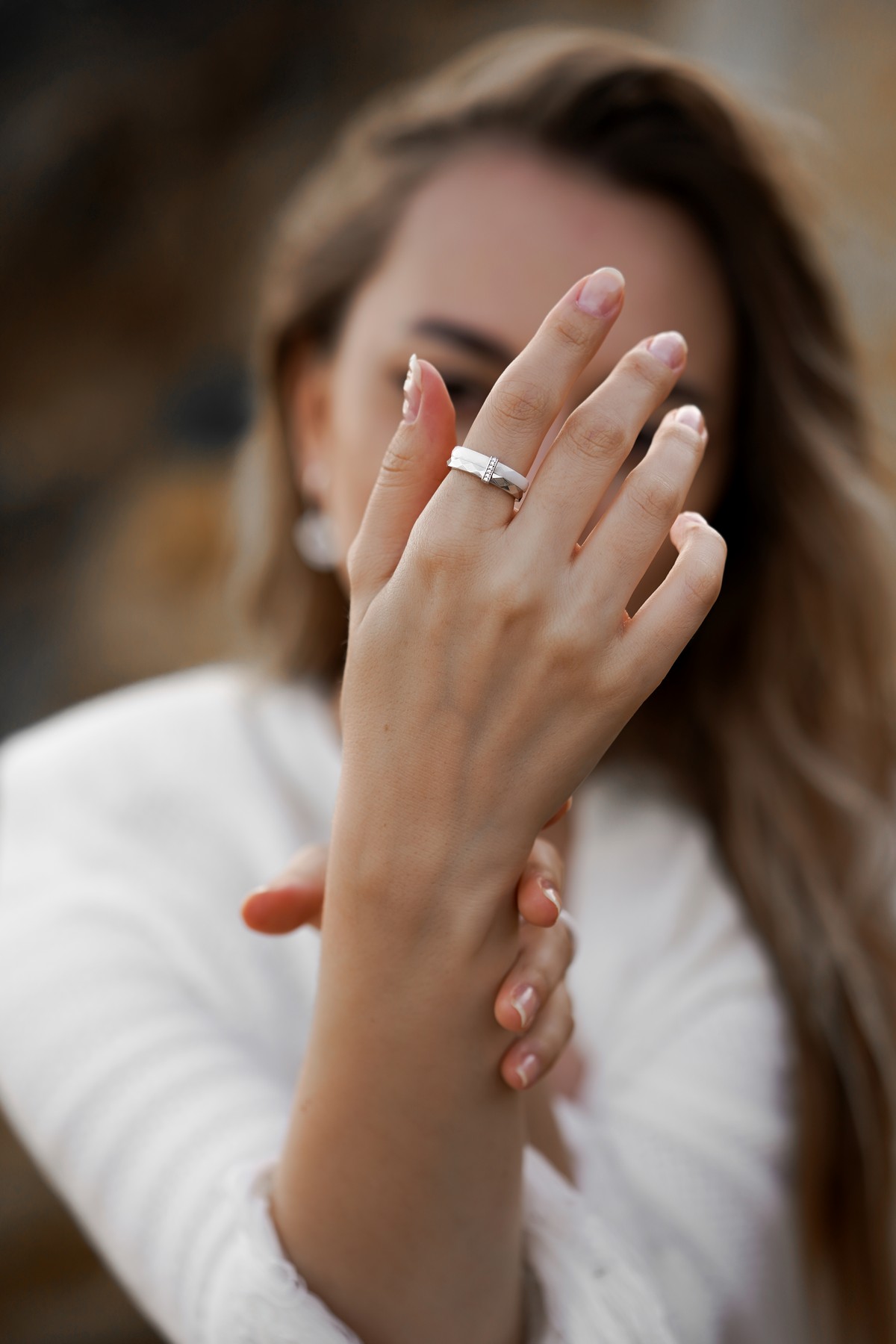 Каблучка срібна з білою керамікою і цирконієм діамантової огранки 006719