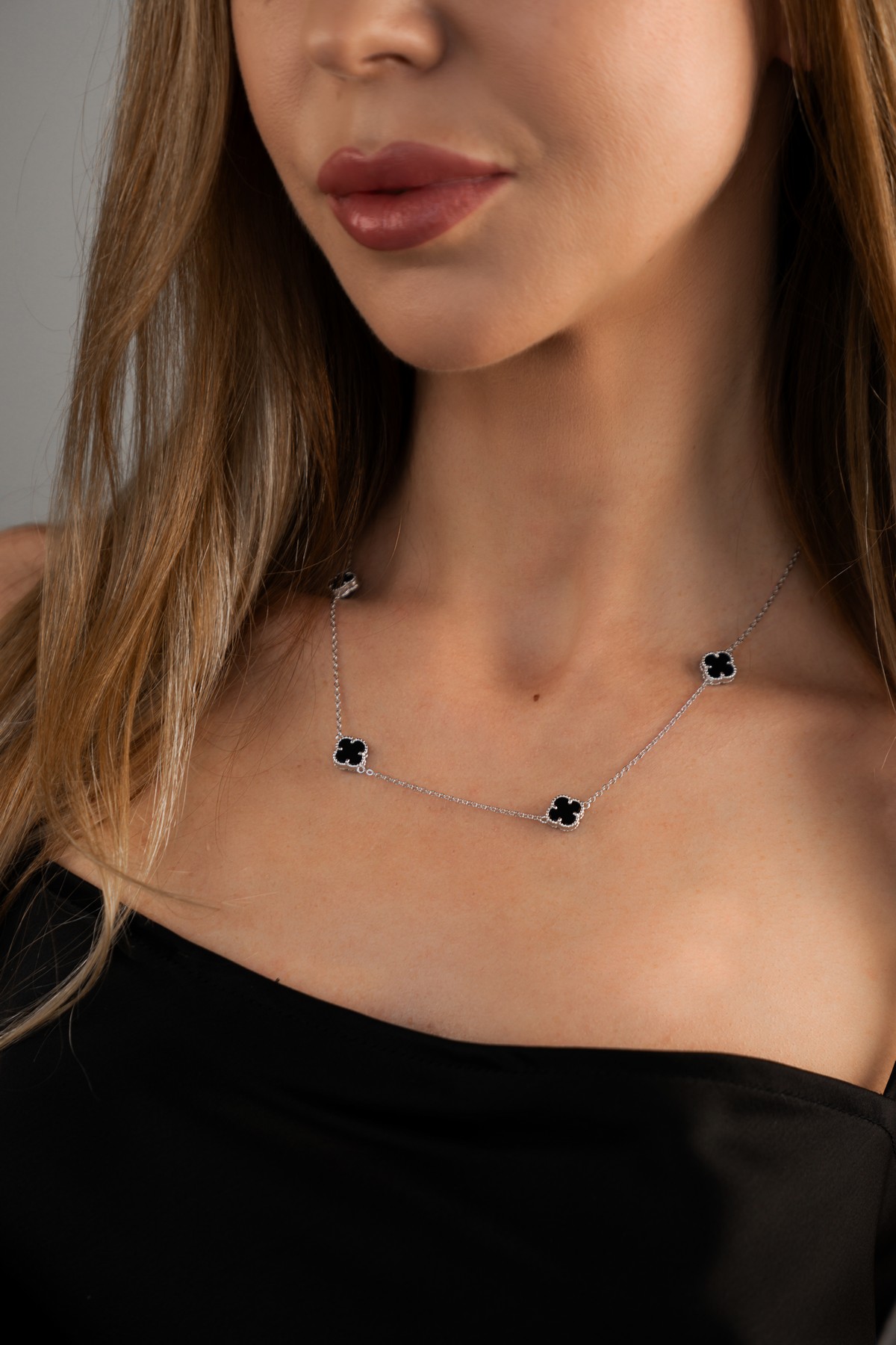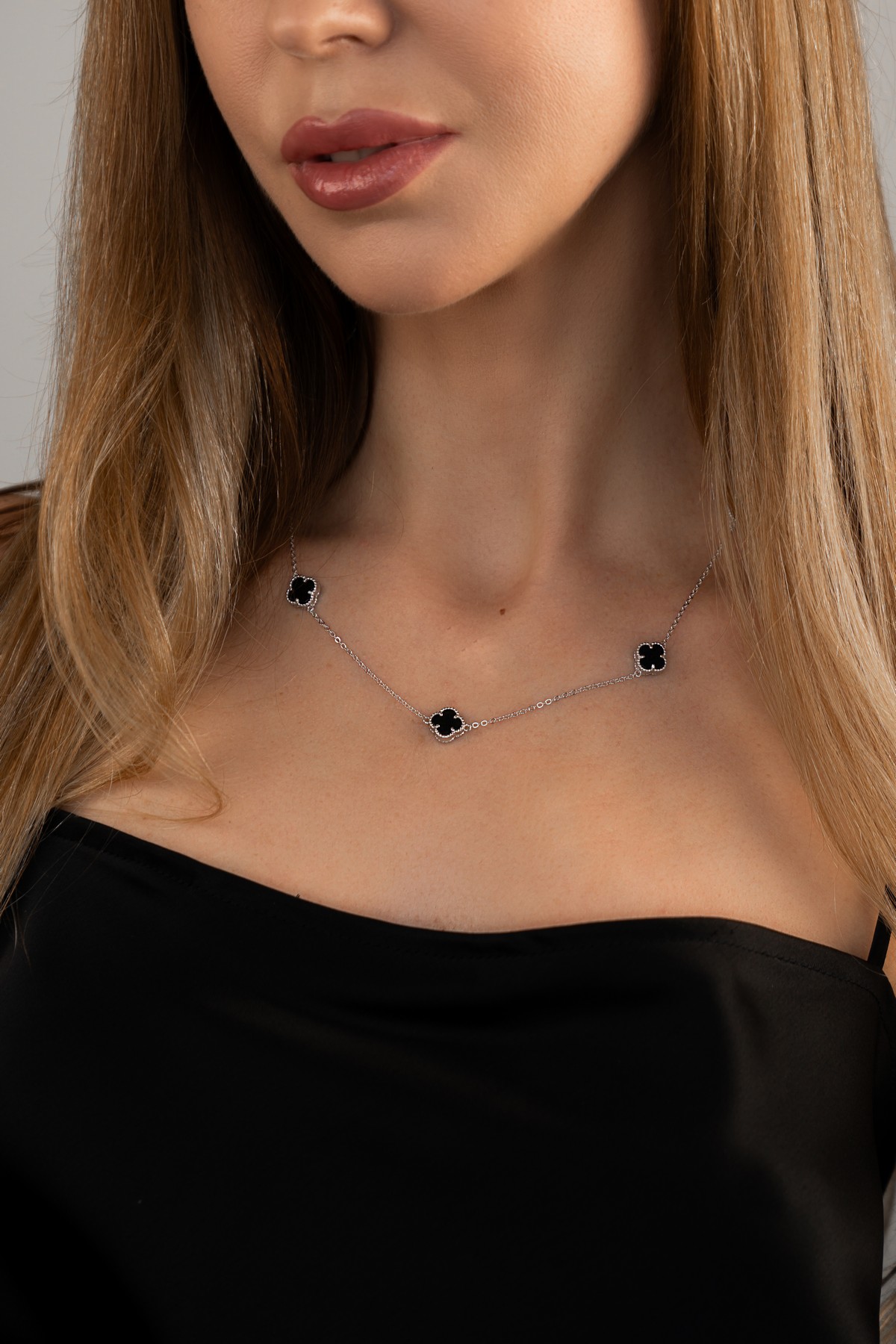 Кольє срібне з оніксом Клевери 1см 005103