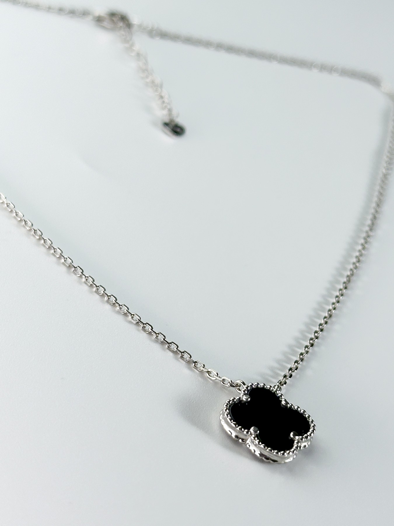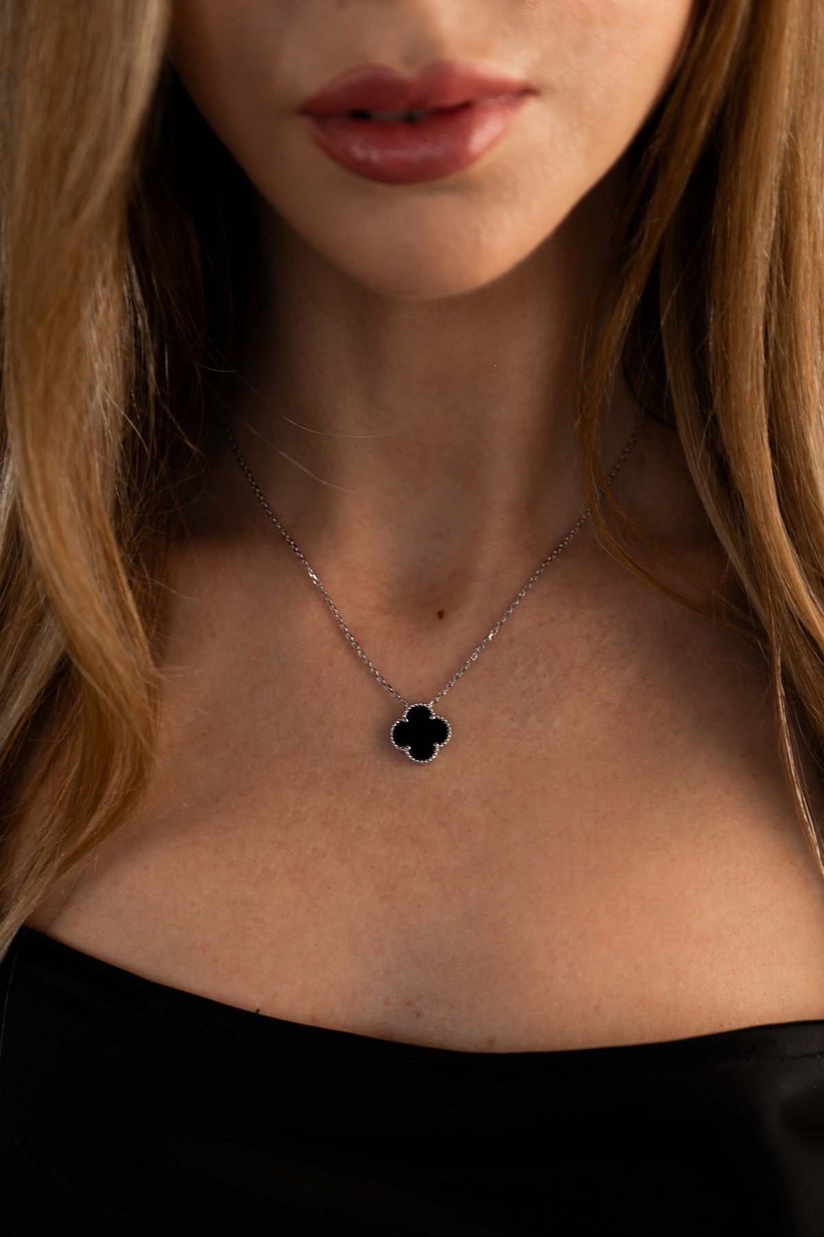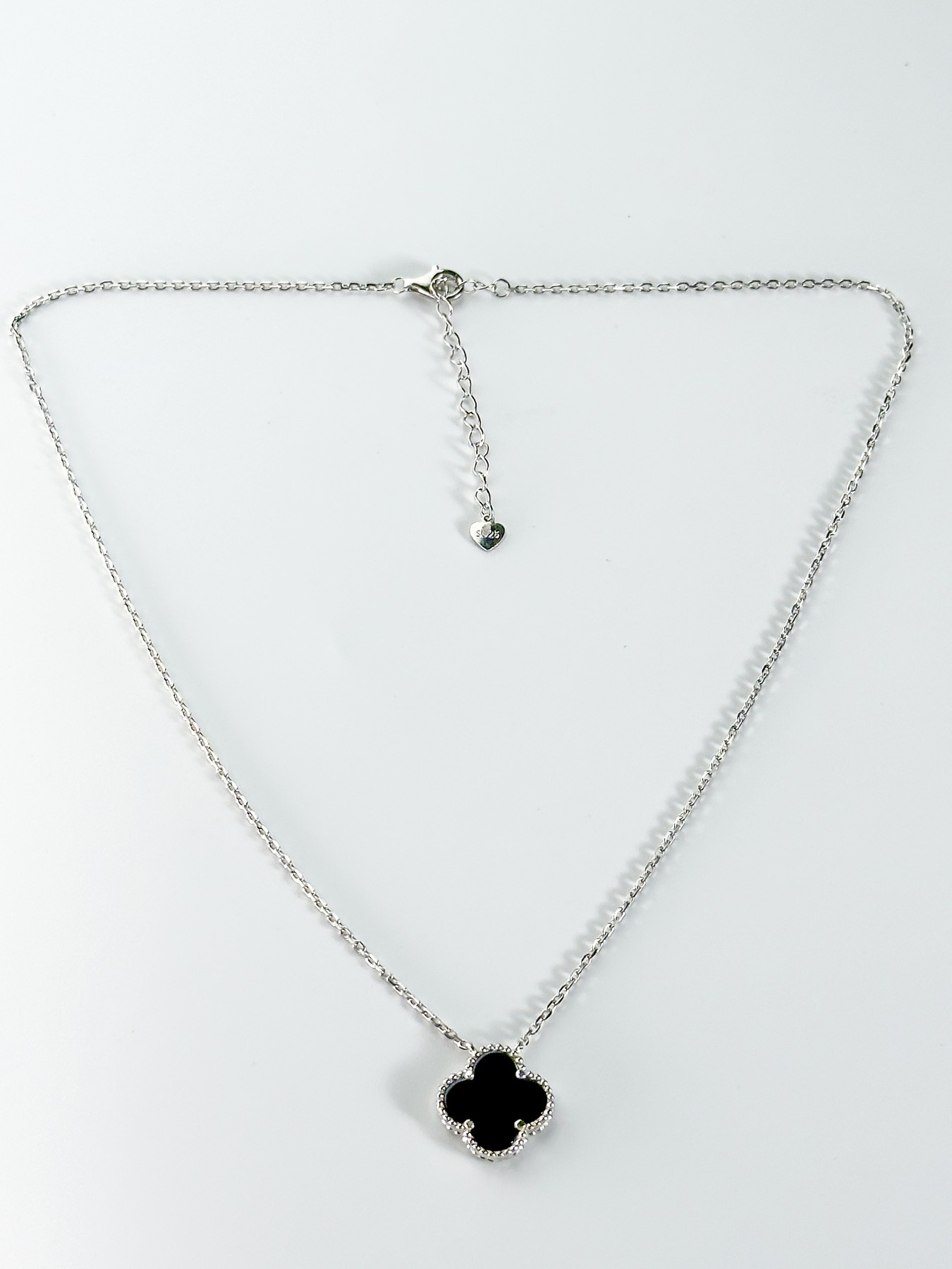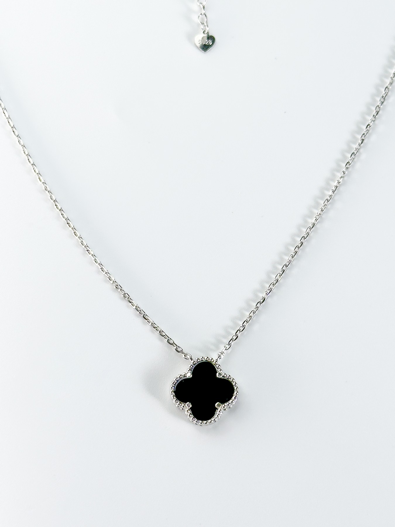 Кольє срібне з оніксом Клевер 1,5см 005107