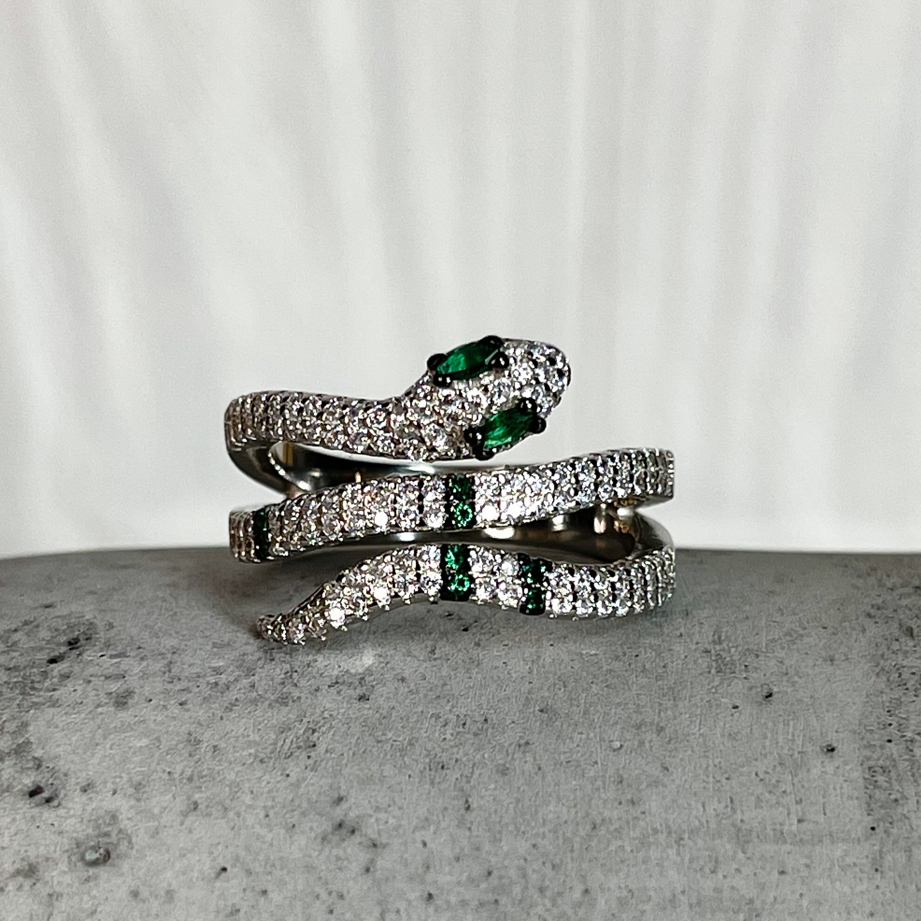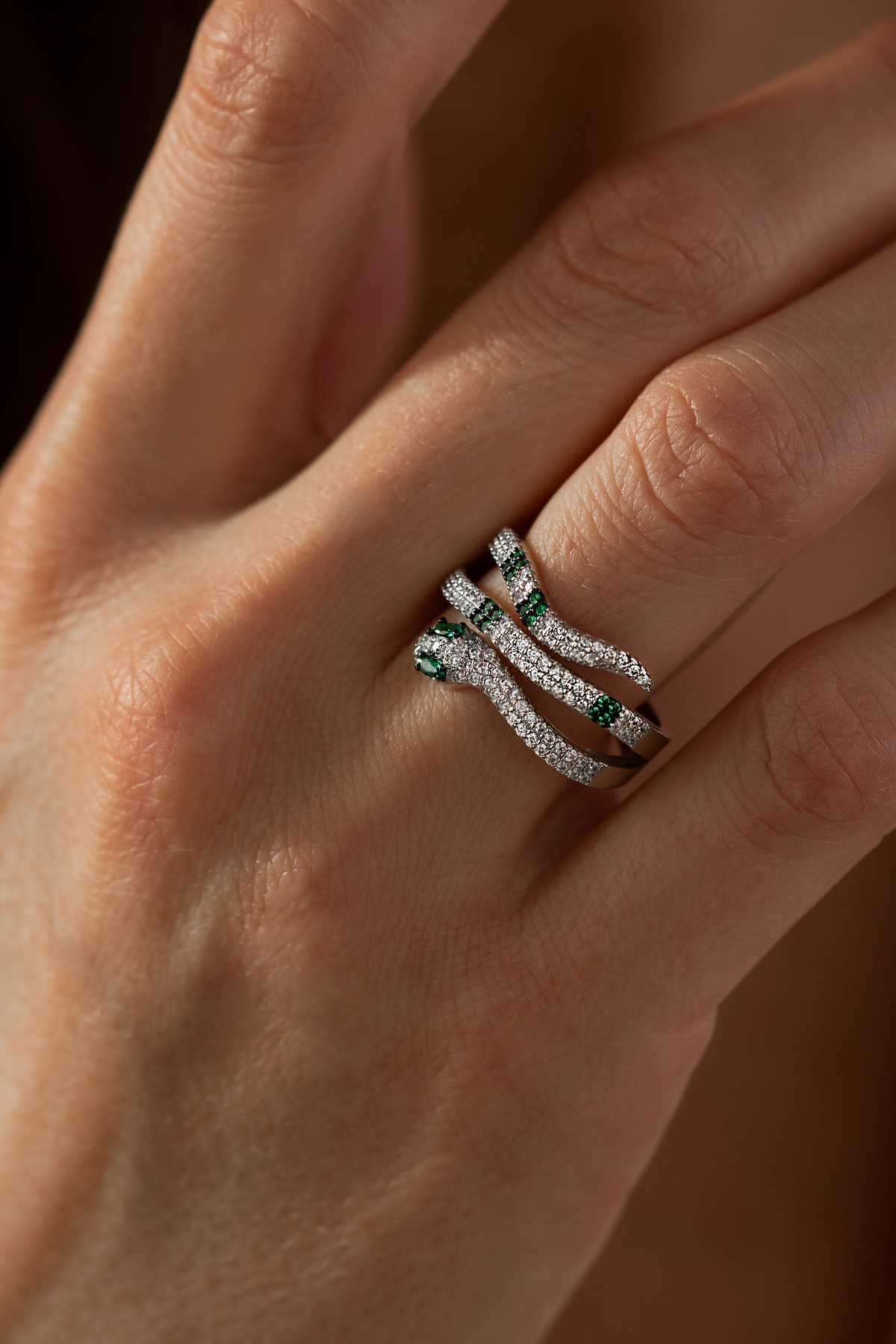 Каблучка срібна із цирконієм діамантової огранки Змія 000884