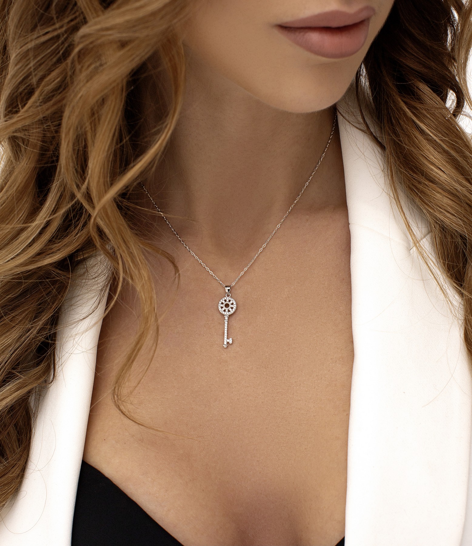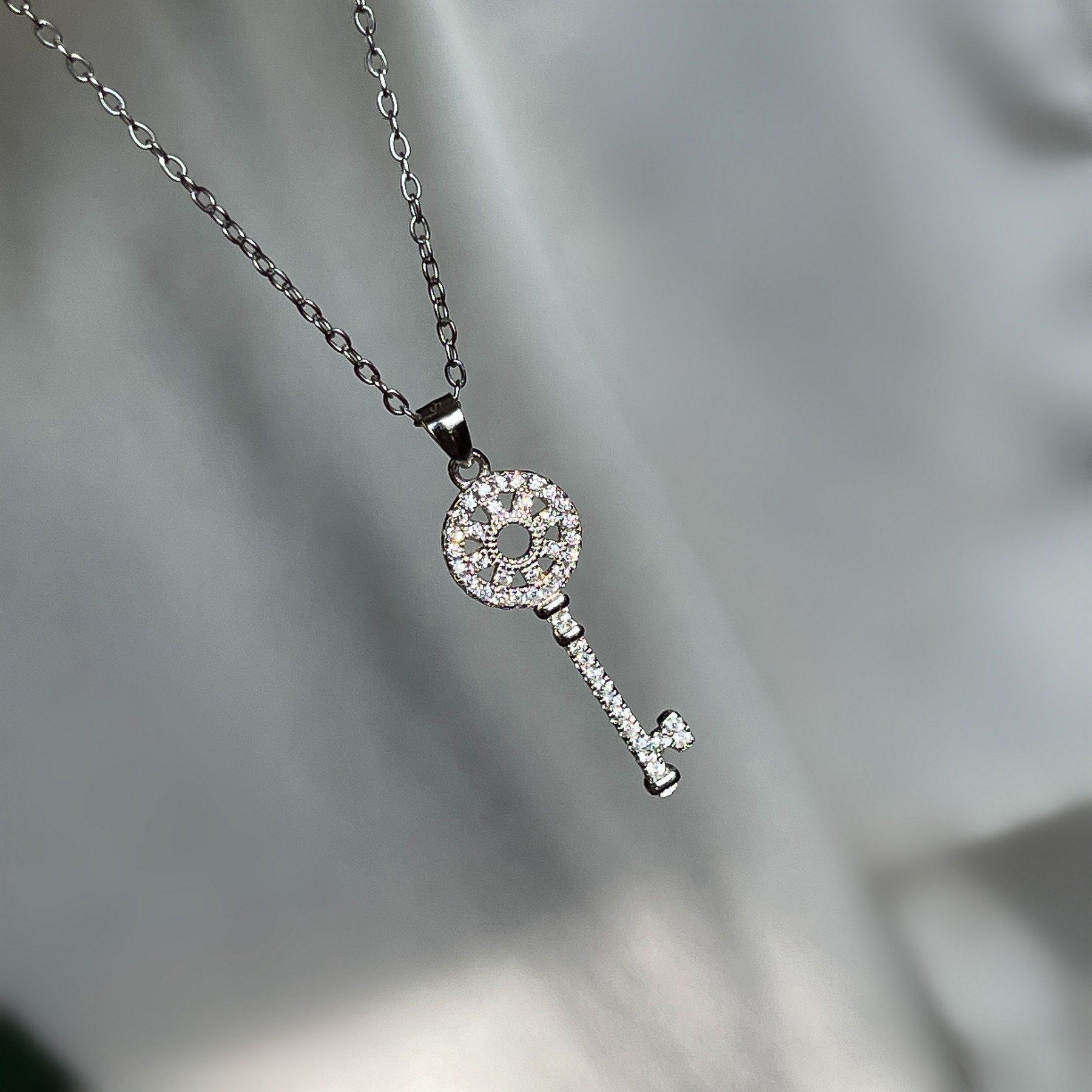 Кольє срібне Ключик із цирконієм діамантового огранювання 005117