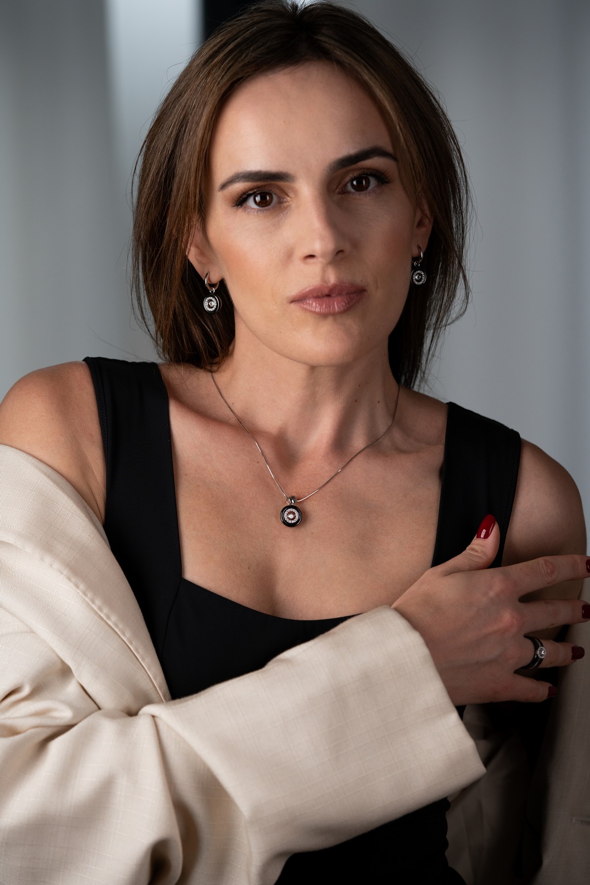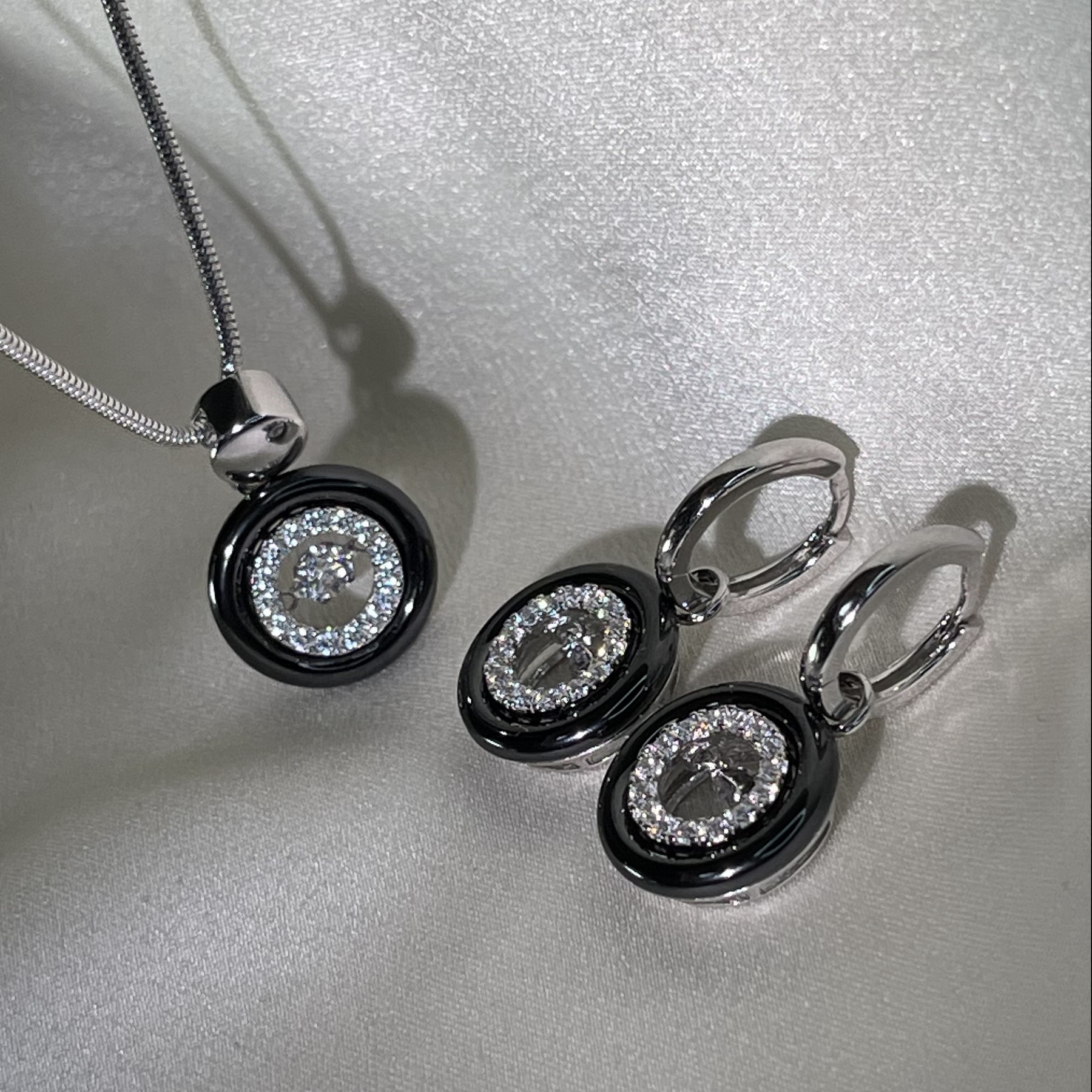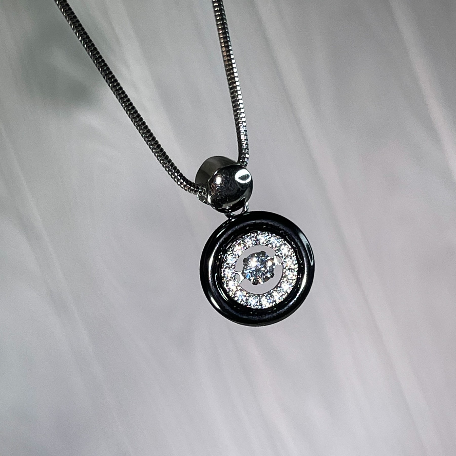 Підвіс срібний з чорною керамікою і танцюючим цирконієм діамантового огранювання 001163