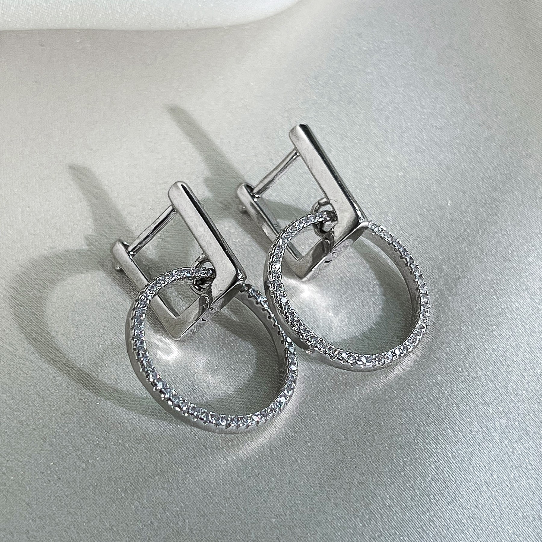 Сережки срібні Коло з цирконієм діамантового огранювання 003727