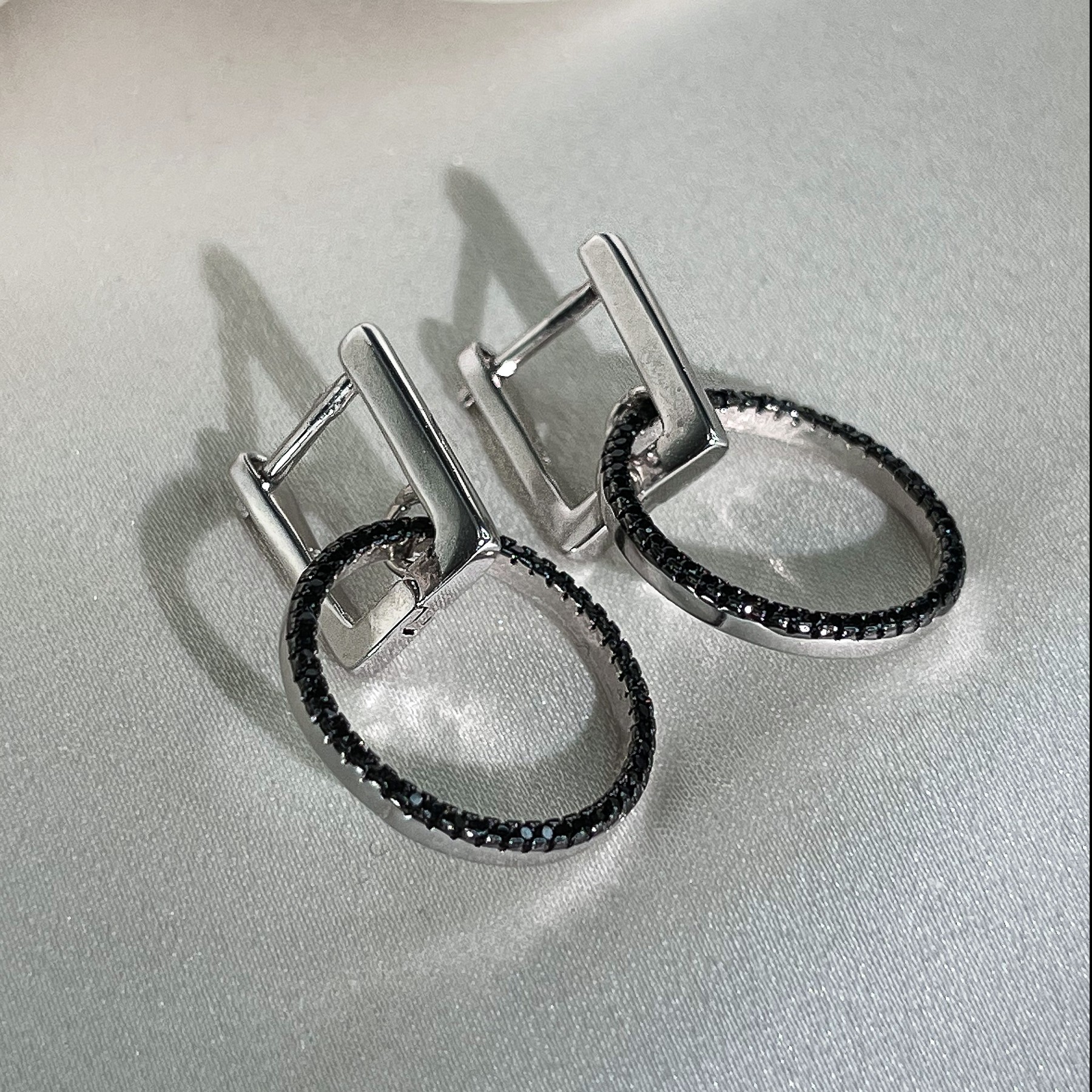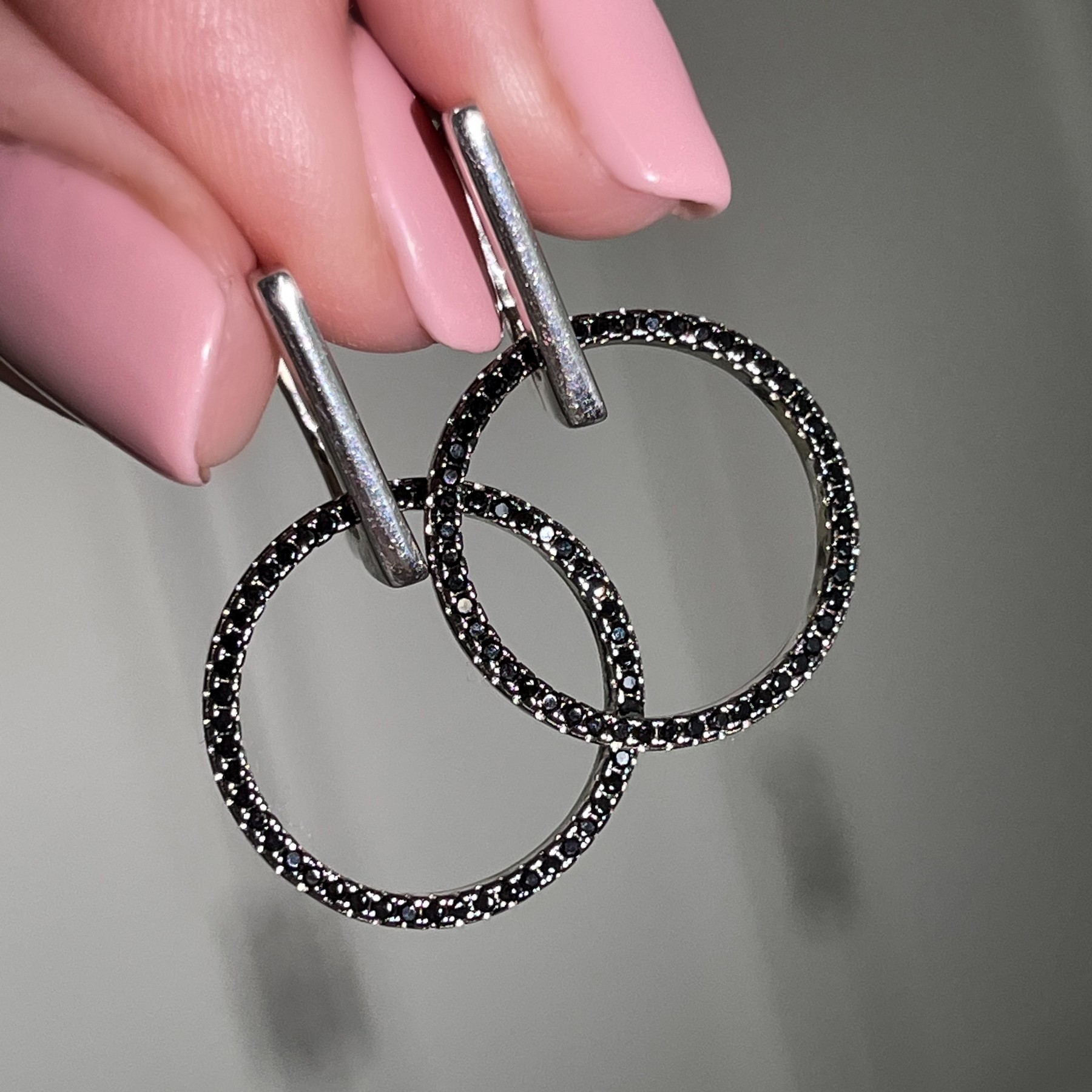Сережки срібні Коло з чорним цирконієм діамантового огранювання 006781