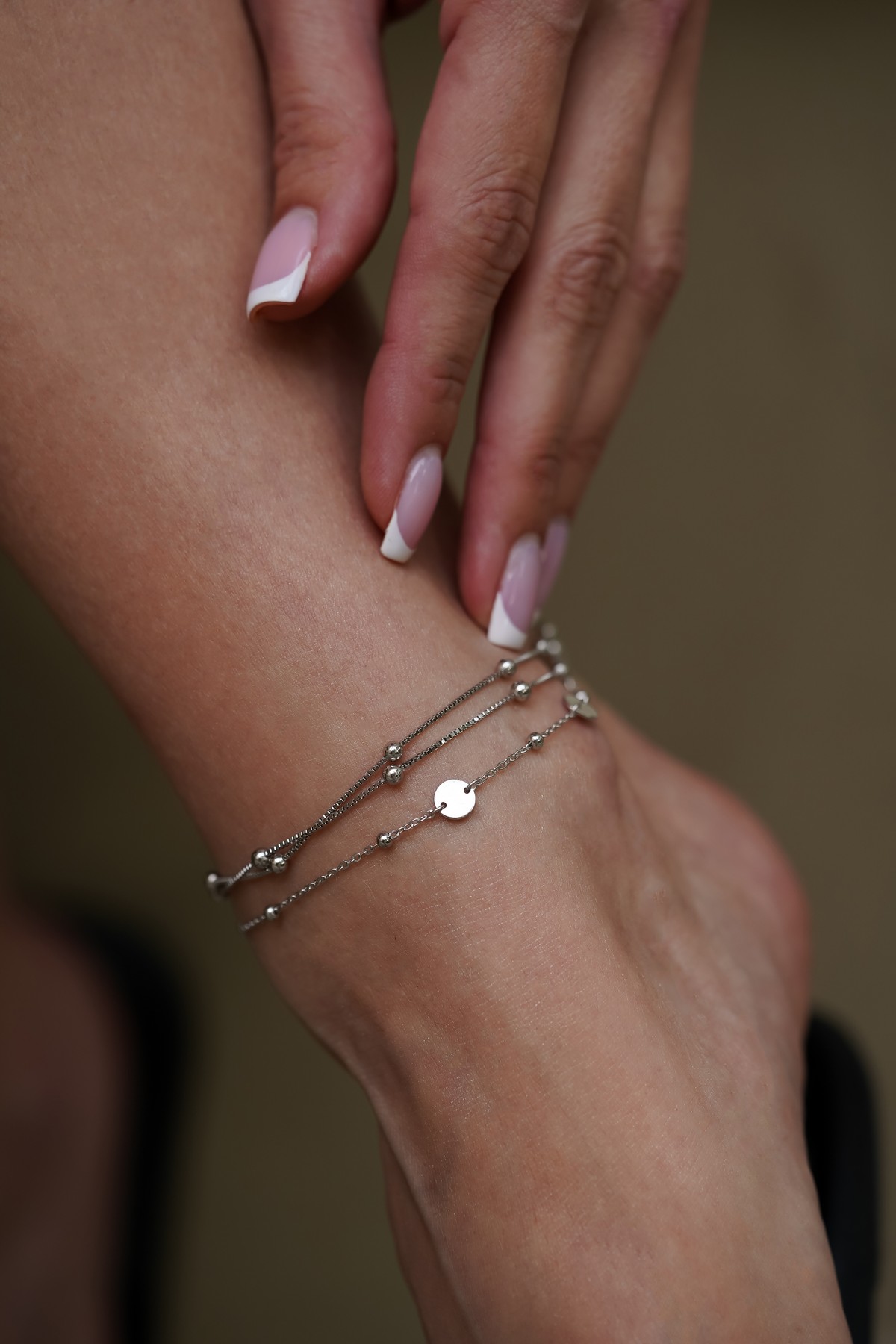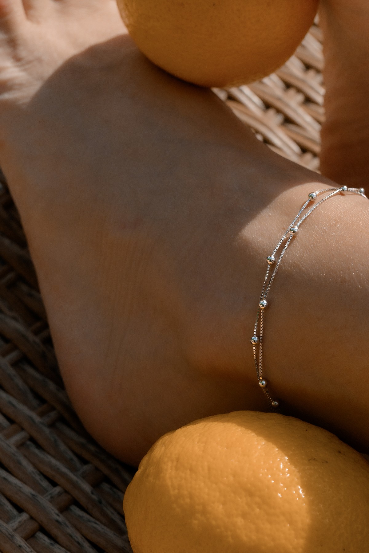 Браслет срібний на ніжку з кульками подвійний 000218