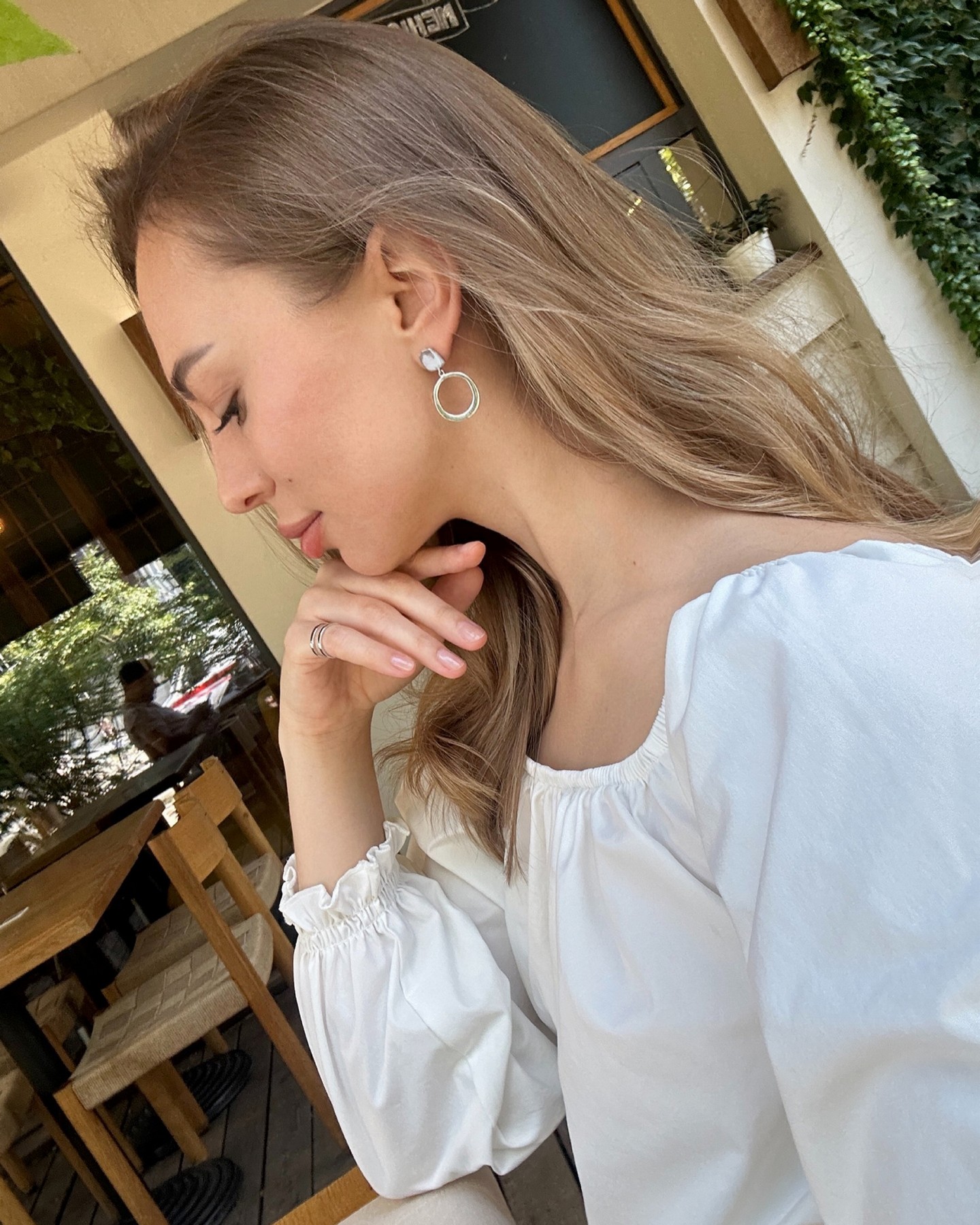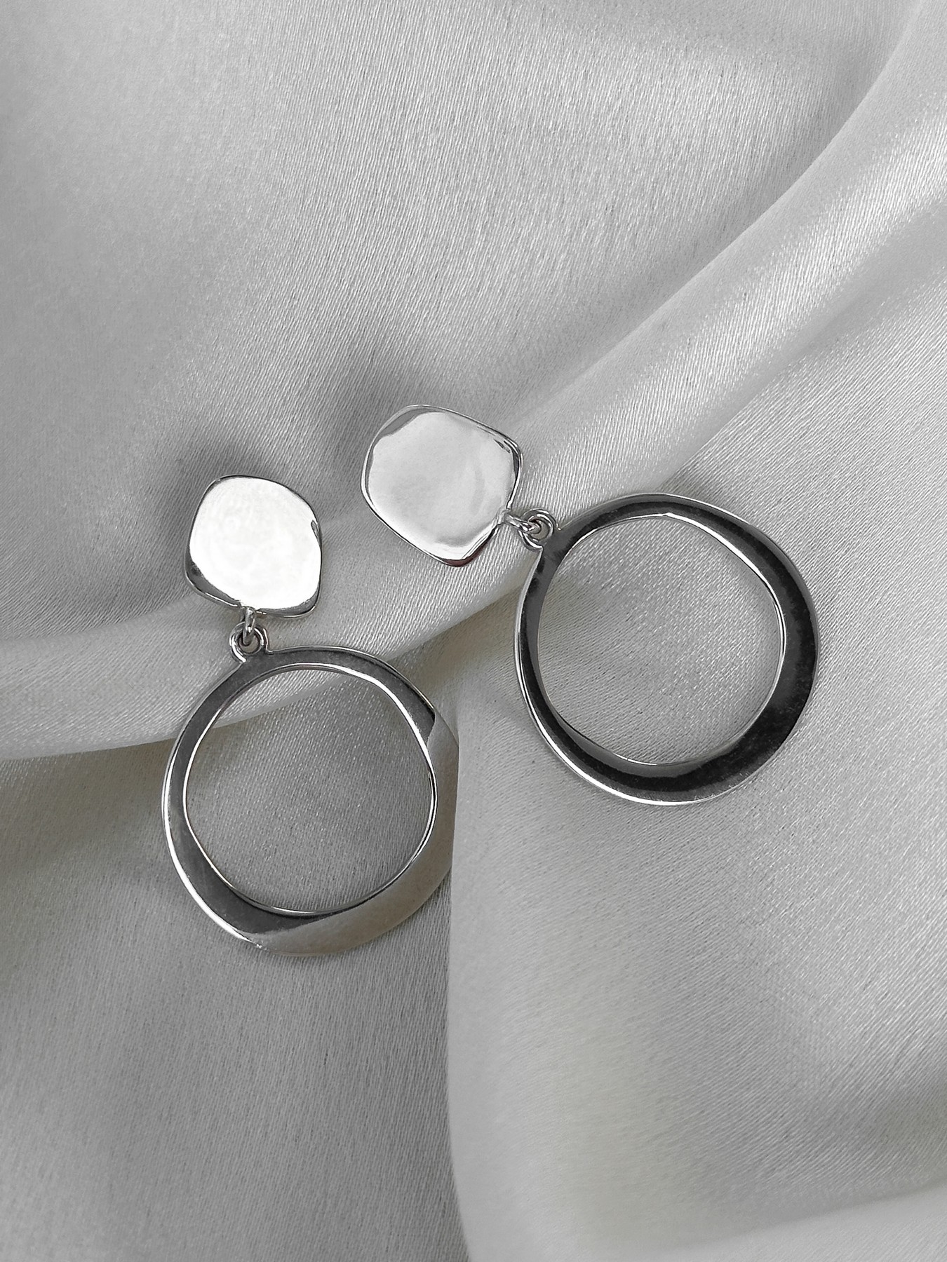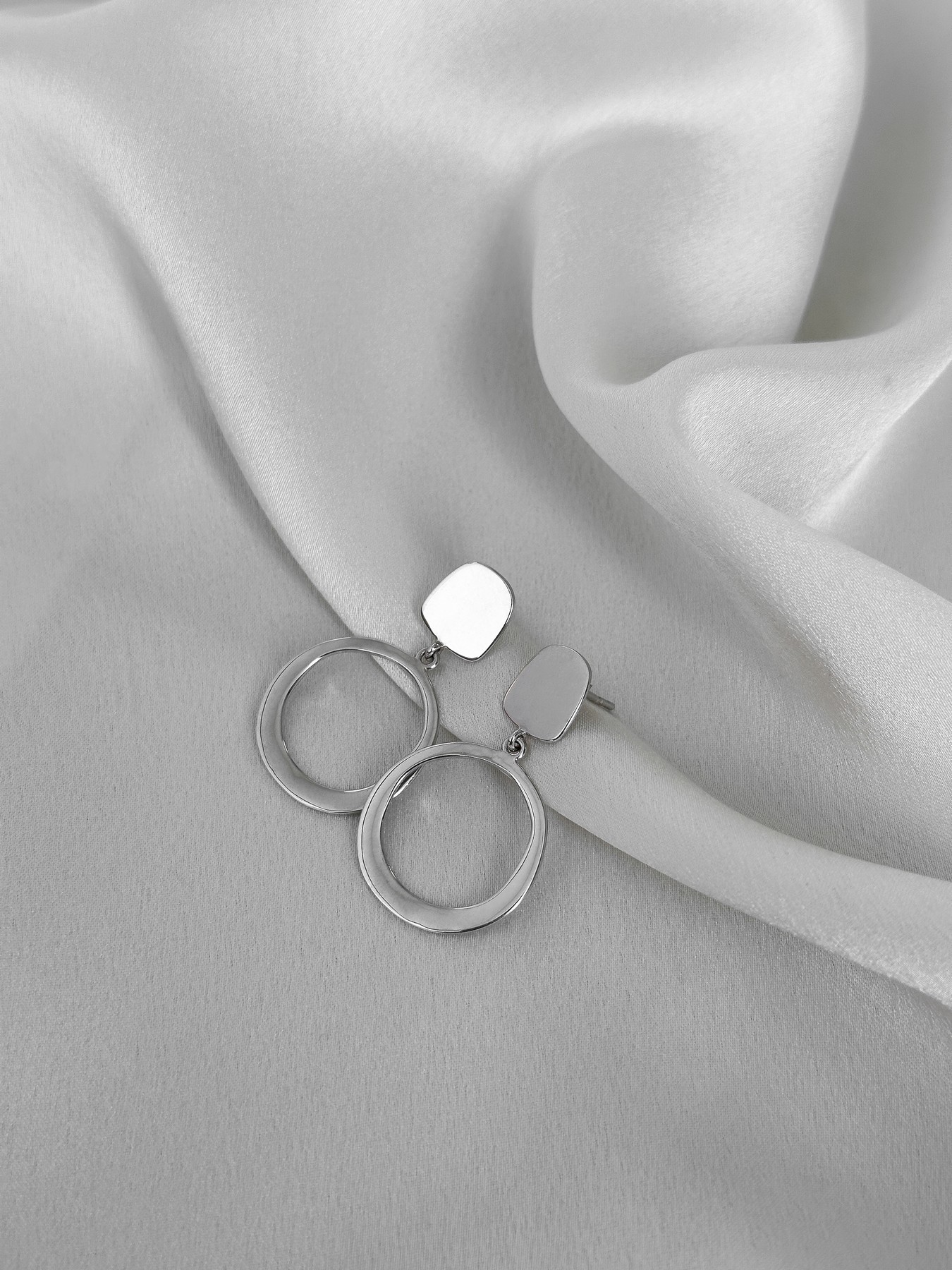 Сережки - пусети срібні із підвіскою безкаменні Геометрія