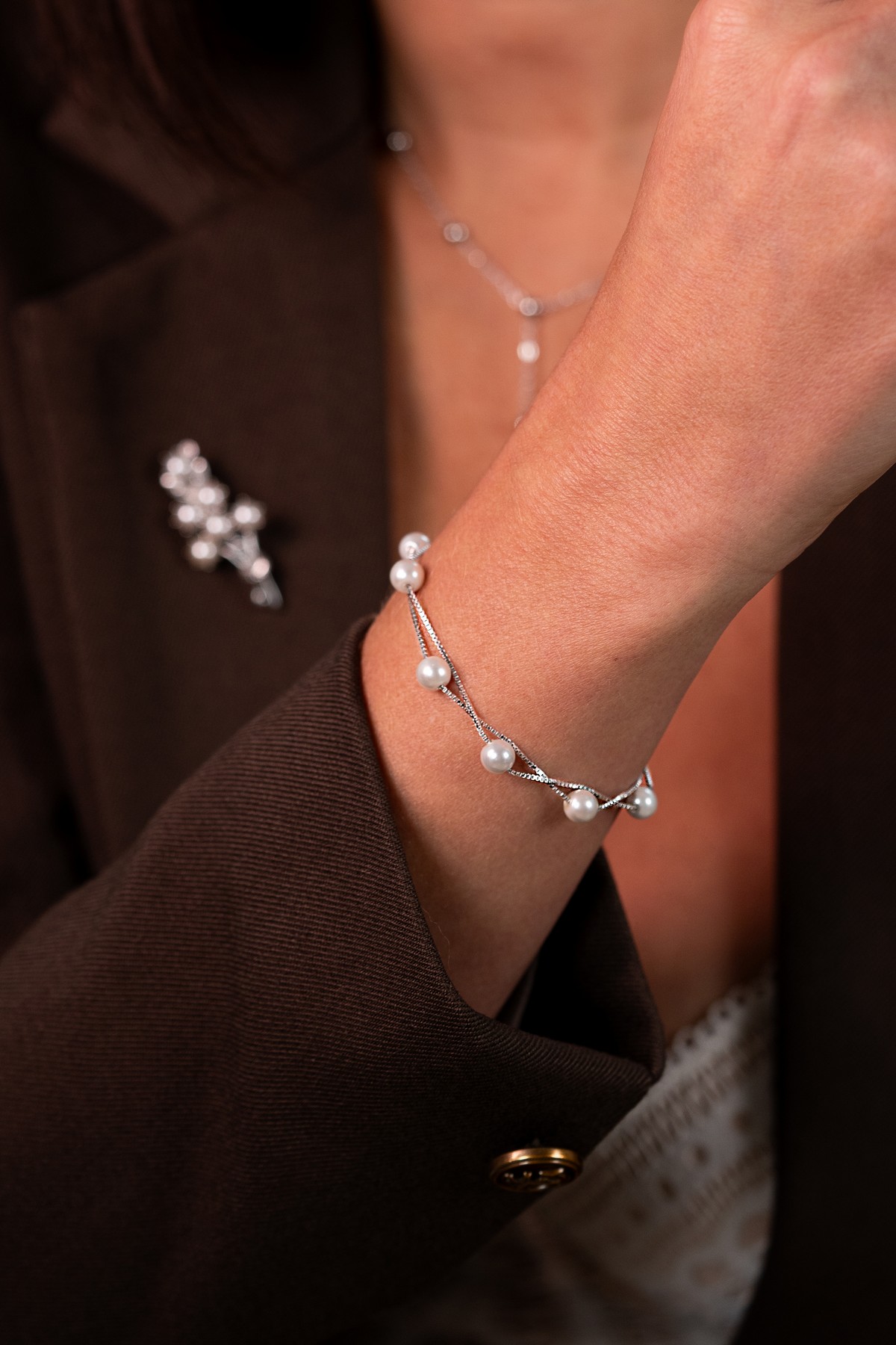 Браслет срібний з перлами 006748