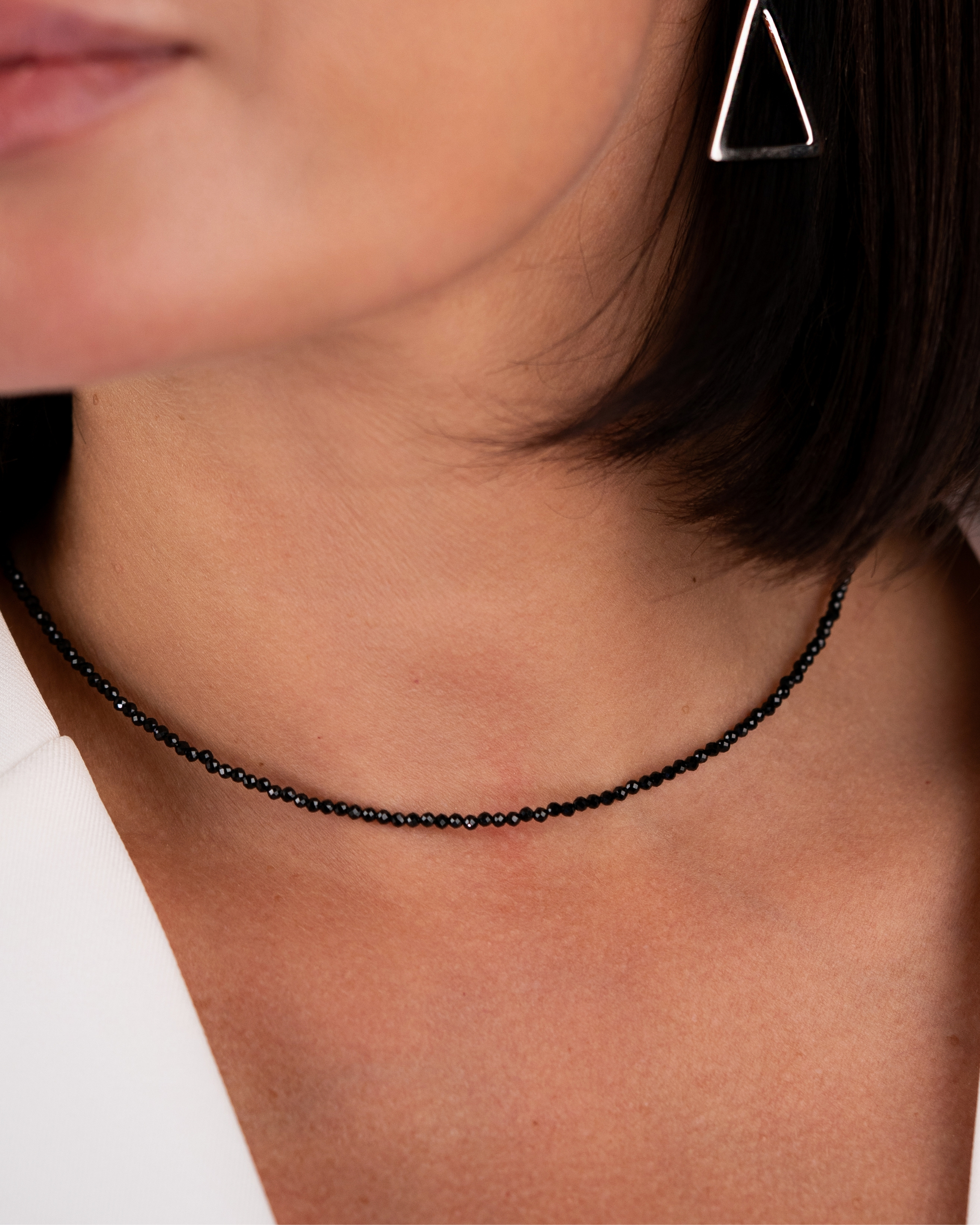 Срібне кольє-чокер с чорною шпінеллю 35см із регулятором-подовжувачем