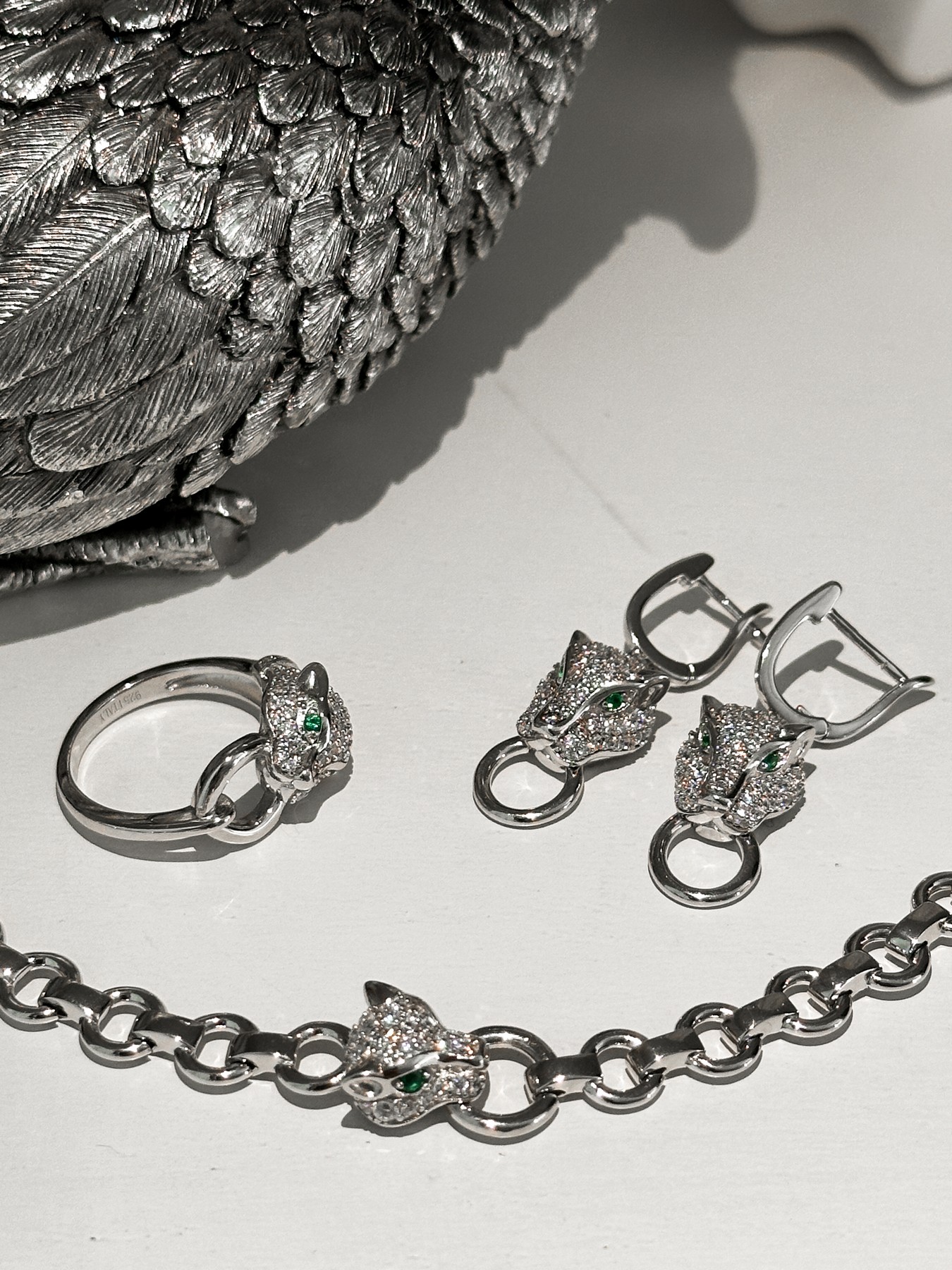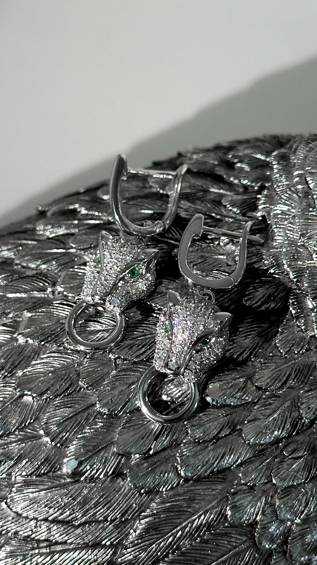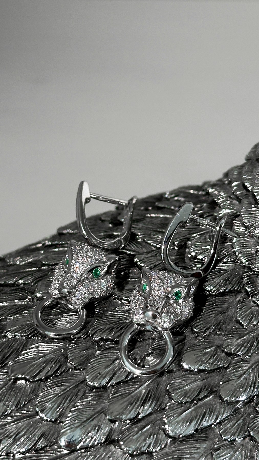Сережки срібні висячі Пантера із цирконієм діамантового огранювання