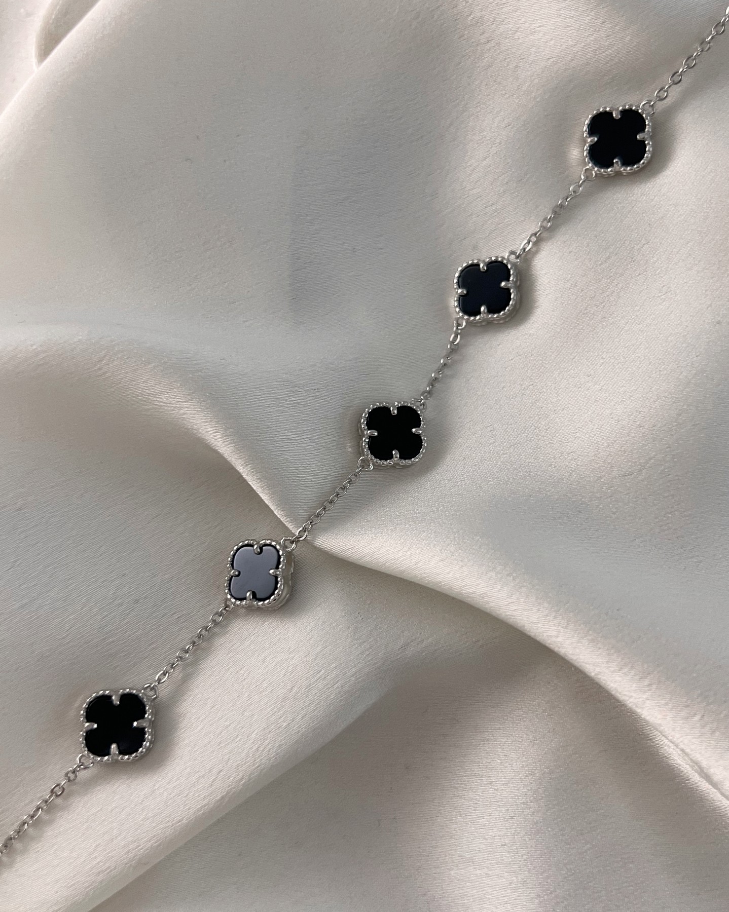 Браслет срібний з оніксом Клевери 1см 000019