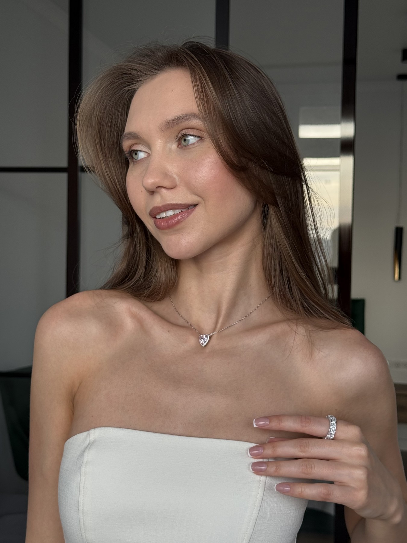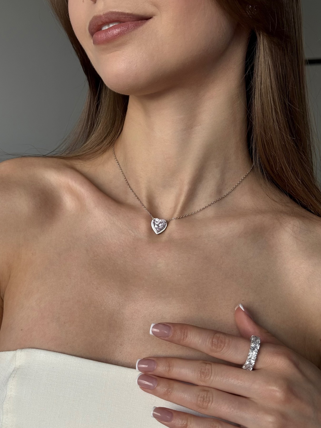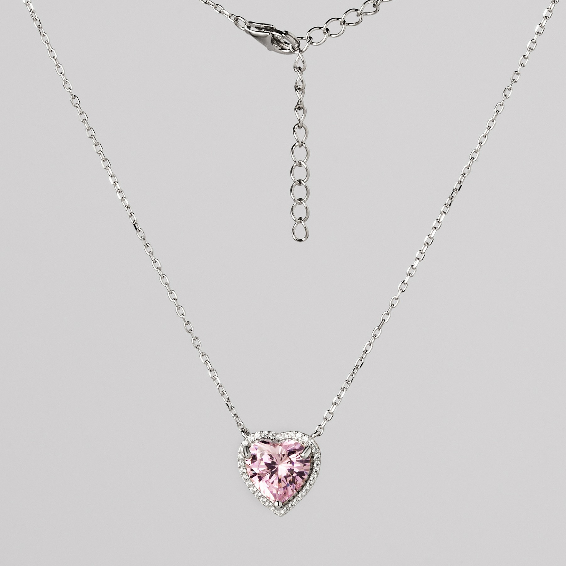 Підвіс Рожеве серце діамантової огранки 1 см на срібному ланцюжку 006855