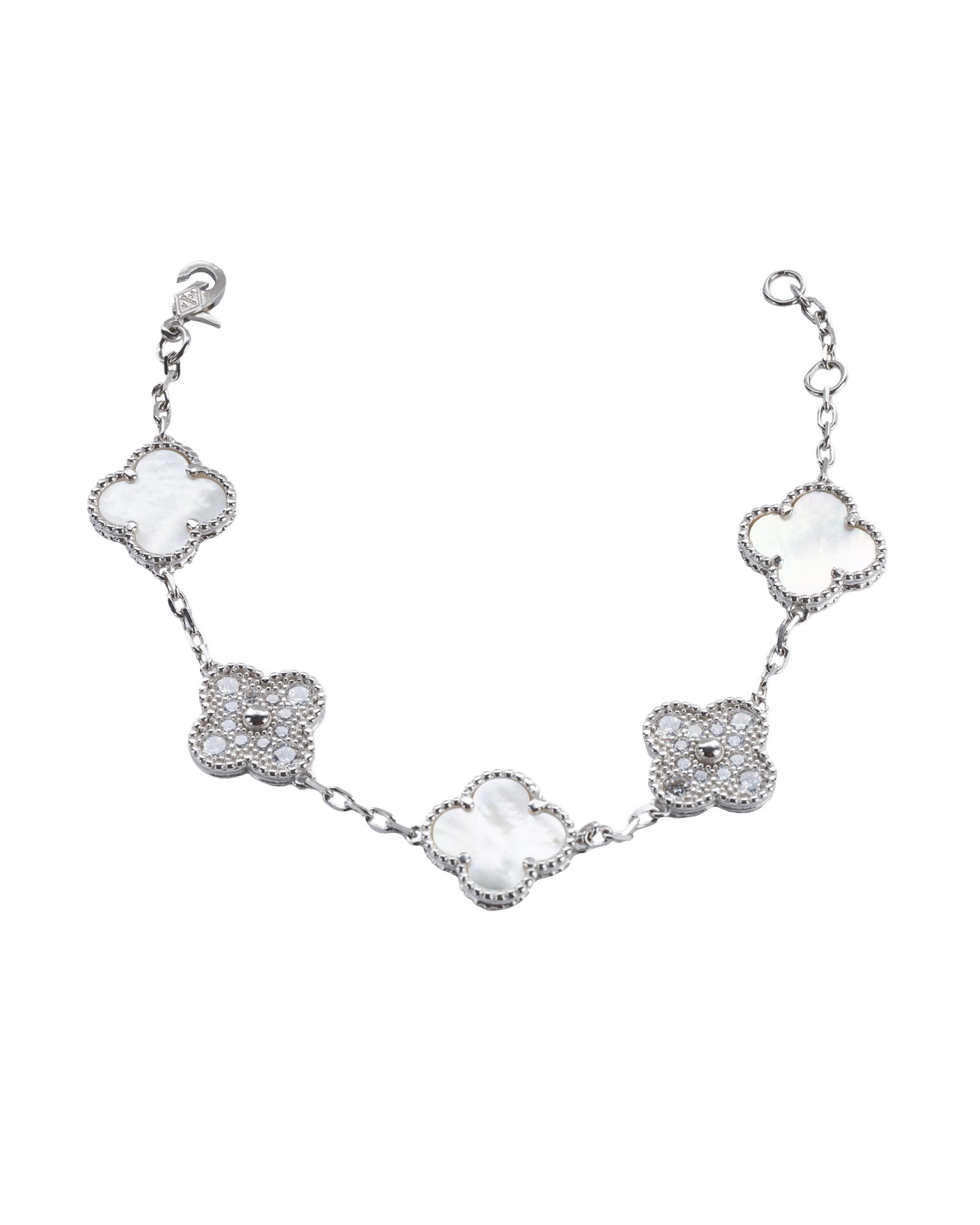 Браслет срібний з перламутром і цирконієм діамантового огранювання 5 Клеверів 1,5см 006876