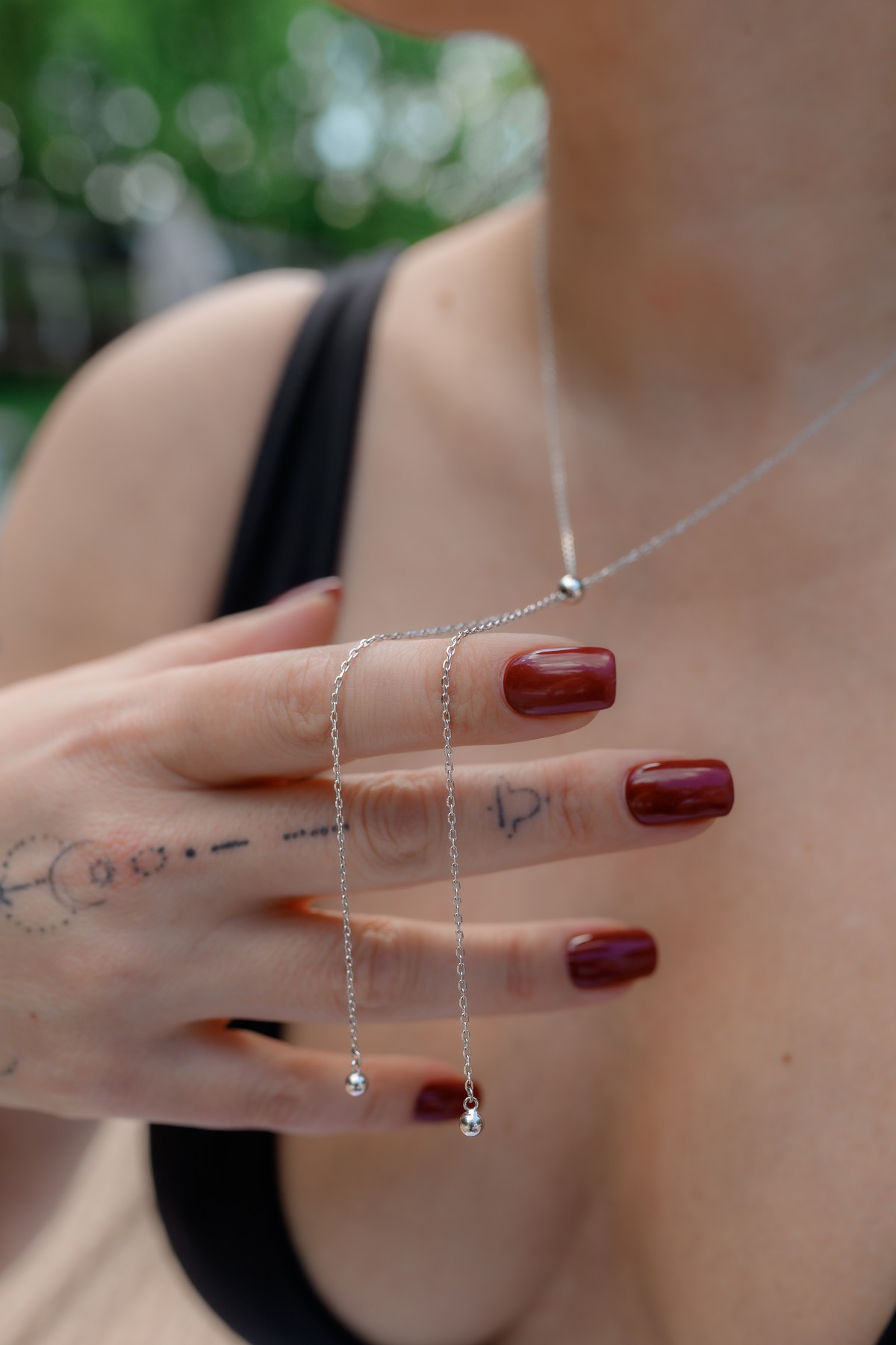 Срібне кольє-краватка з кульками трансформер 006922