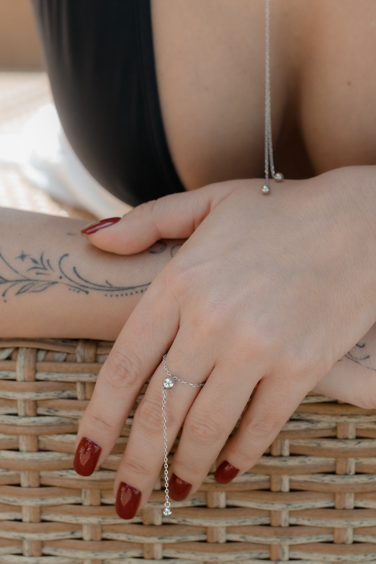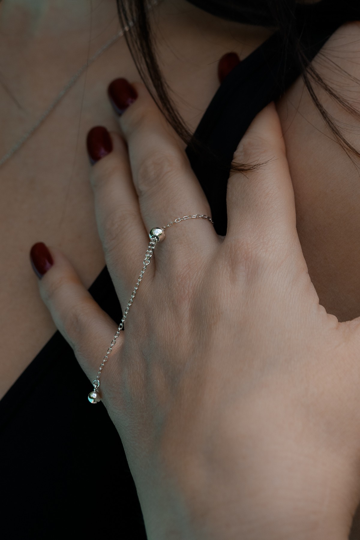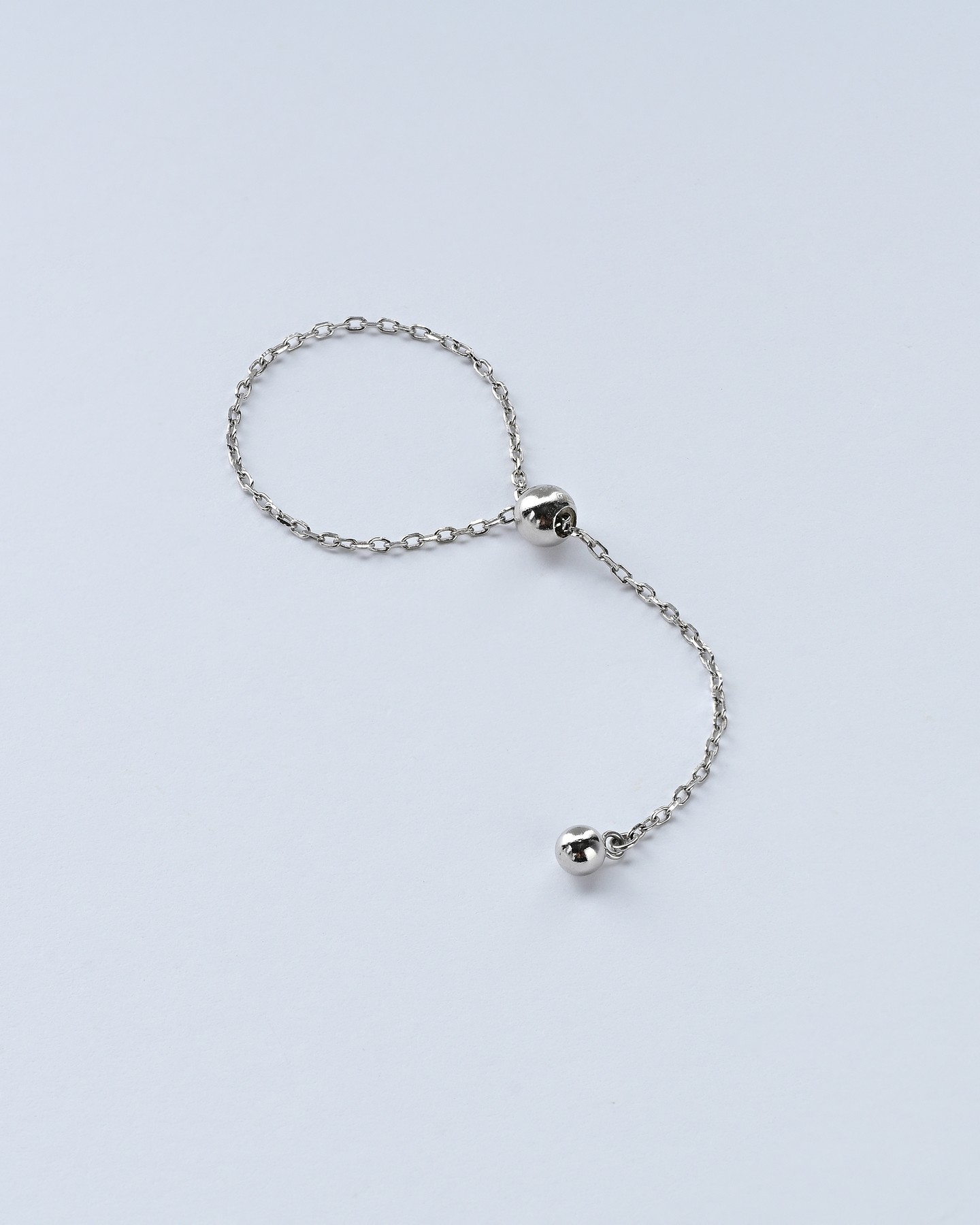 Каблучка срібна Кулька із ланцюжком на силіконовій затяжці 006919