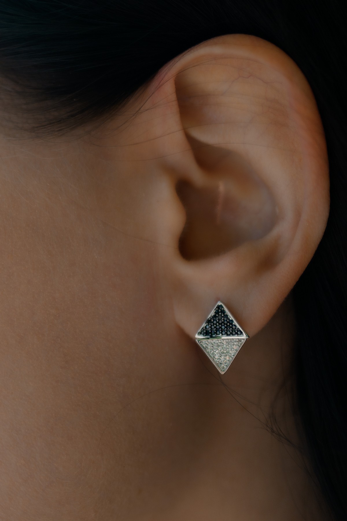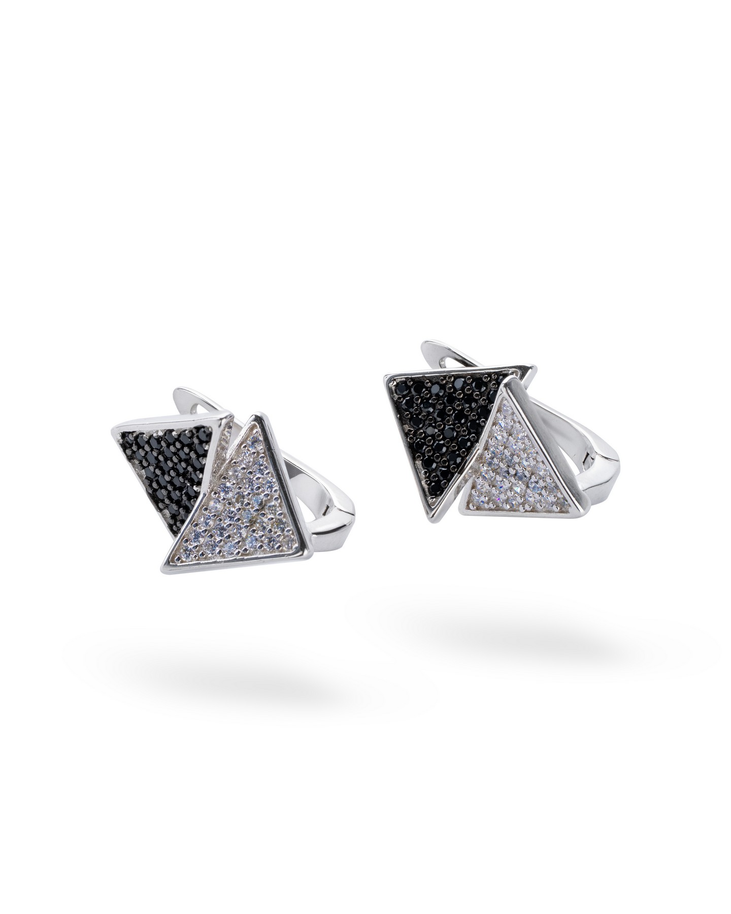 Сережки срібні Трикутники з чорно-білим цирконієм діамантового огранювання 006880