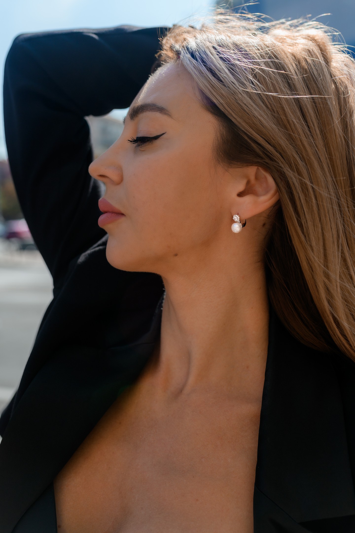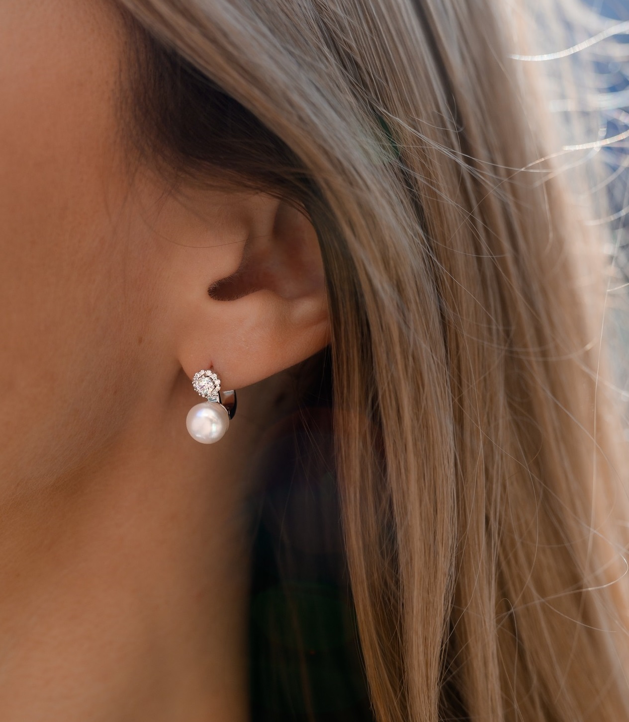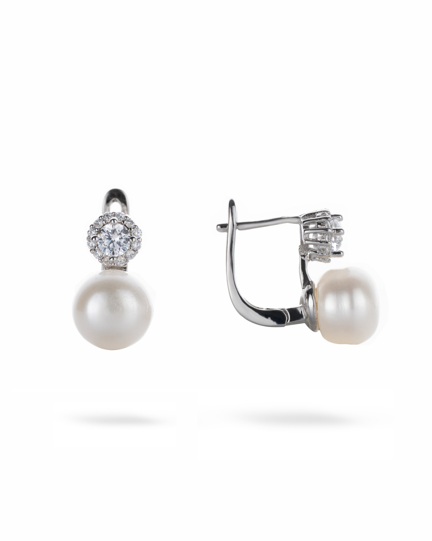Сережки срібні із перлами та цирконієм діамантової огранки 006944