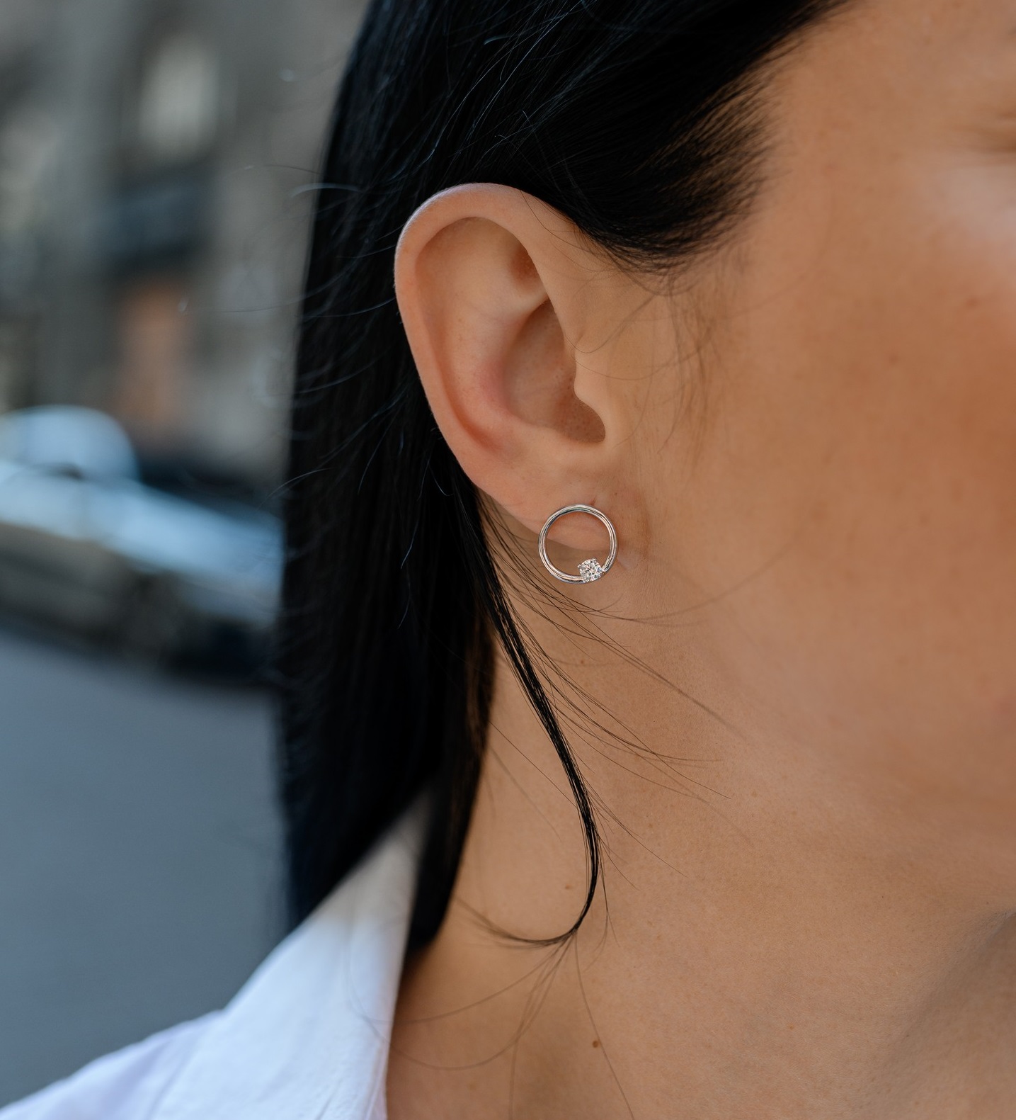 Сережки - пусети (гвоздики) Коло з цирконієм діамантової огранки 006963