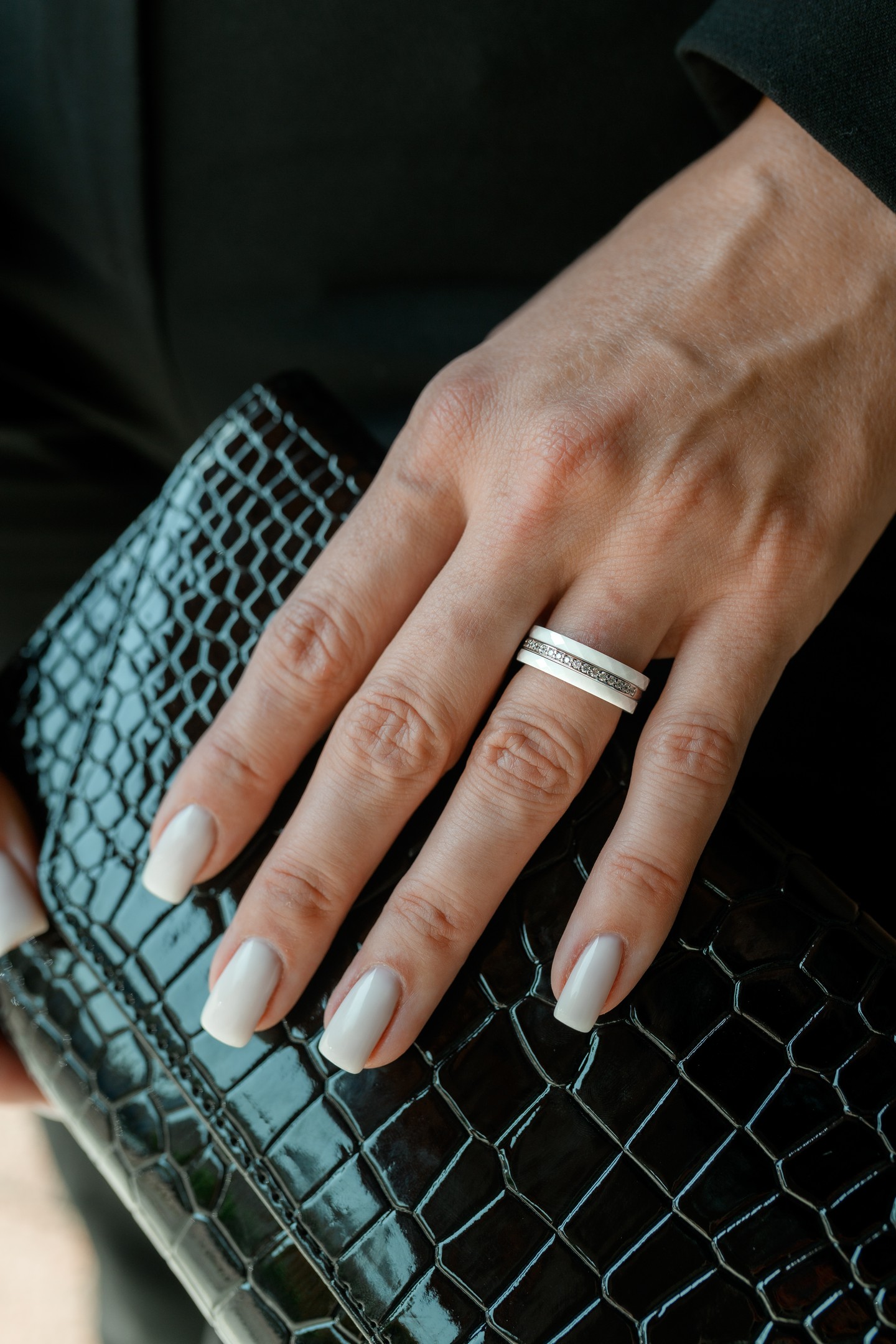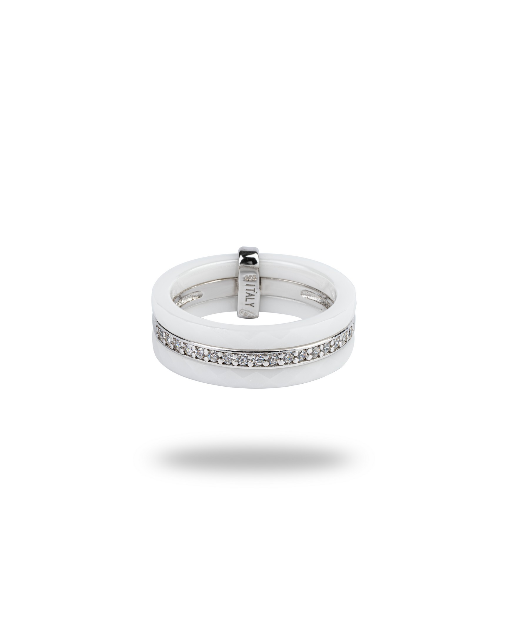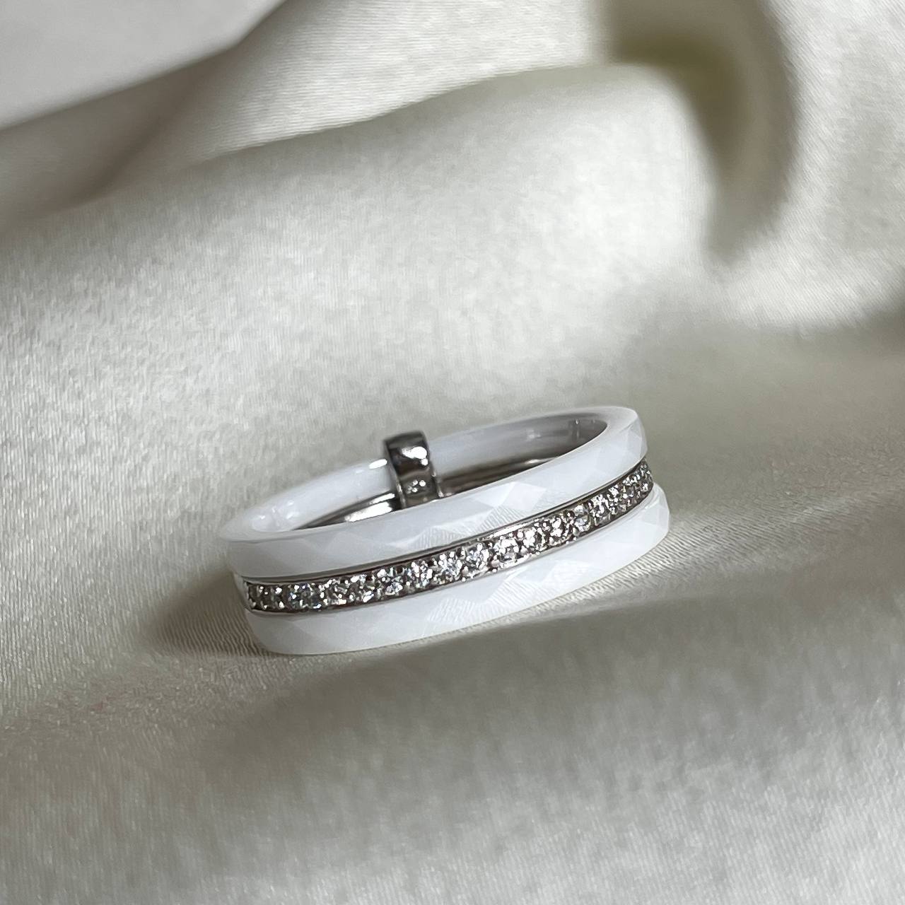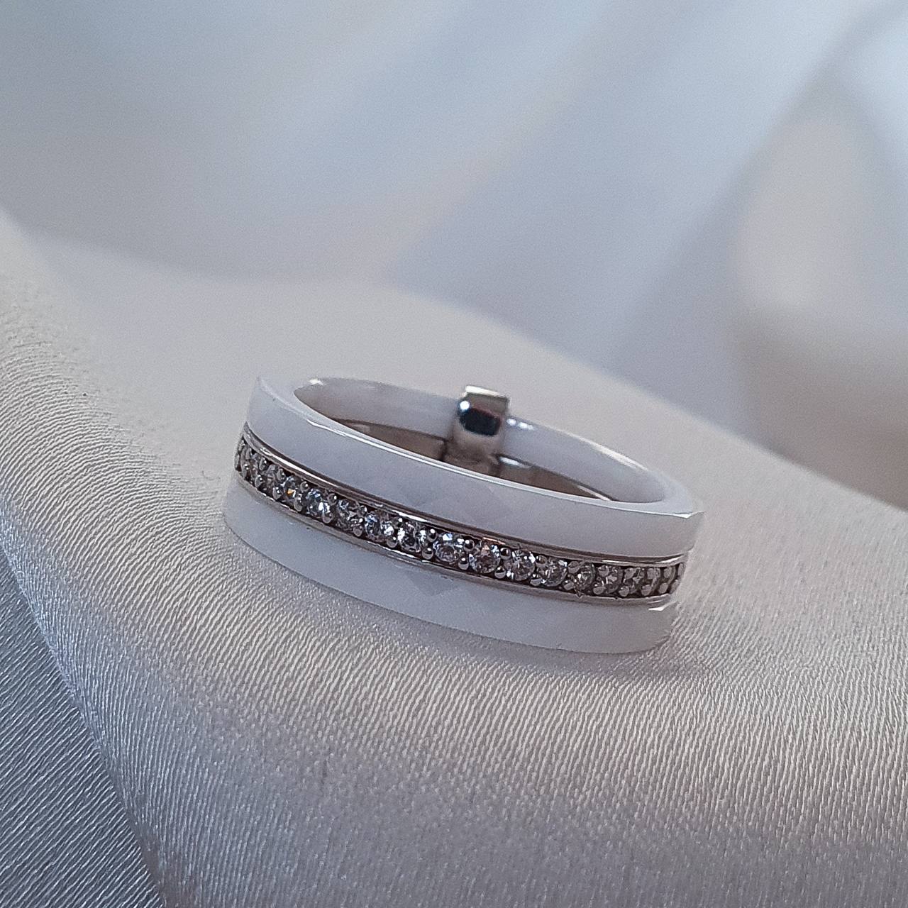 Каблучка срібна з білою керамікою і цирконієм діамантової огранки 006685