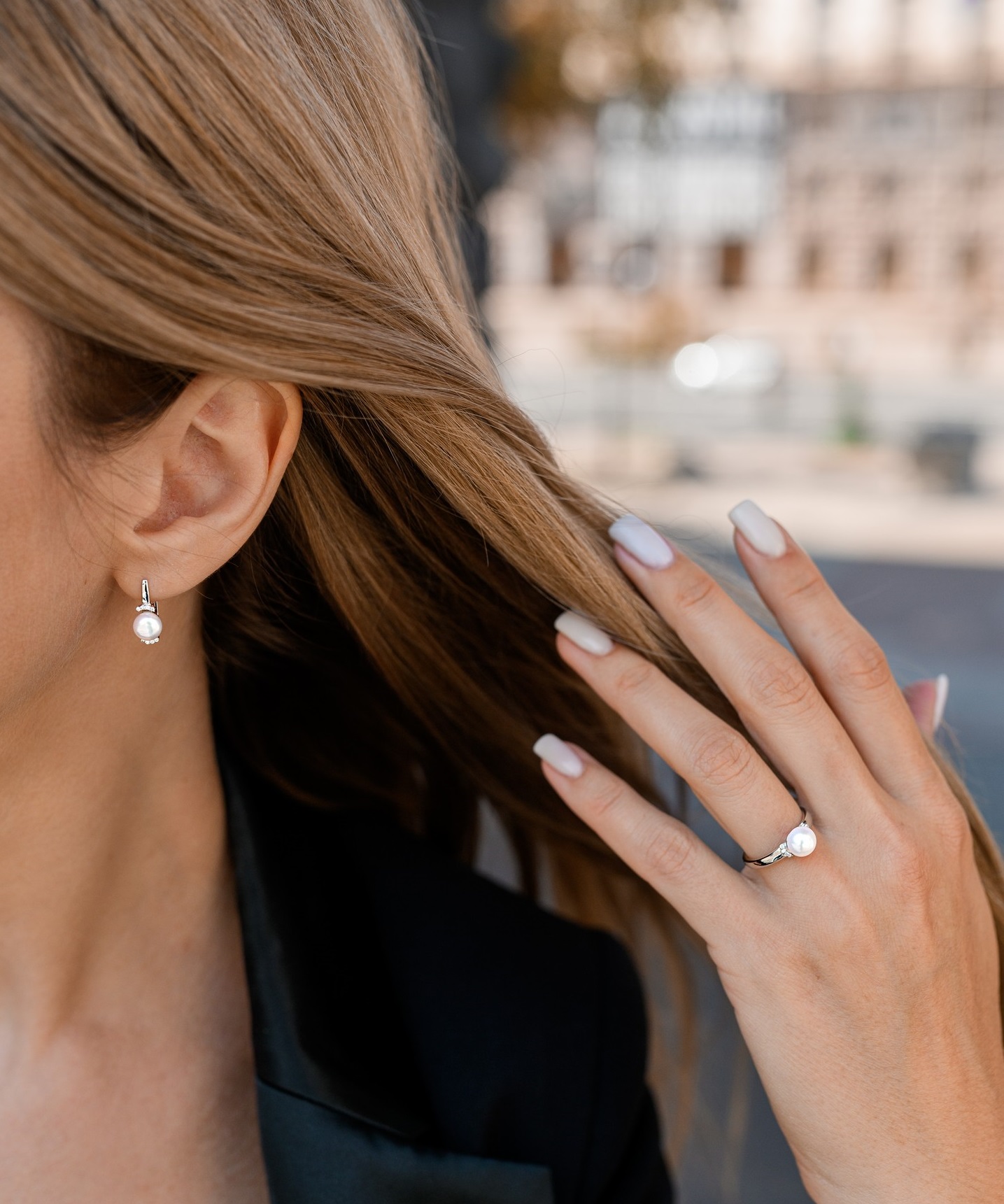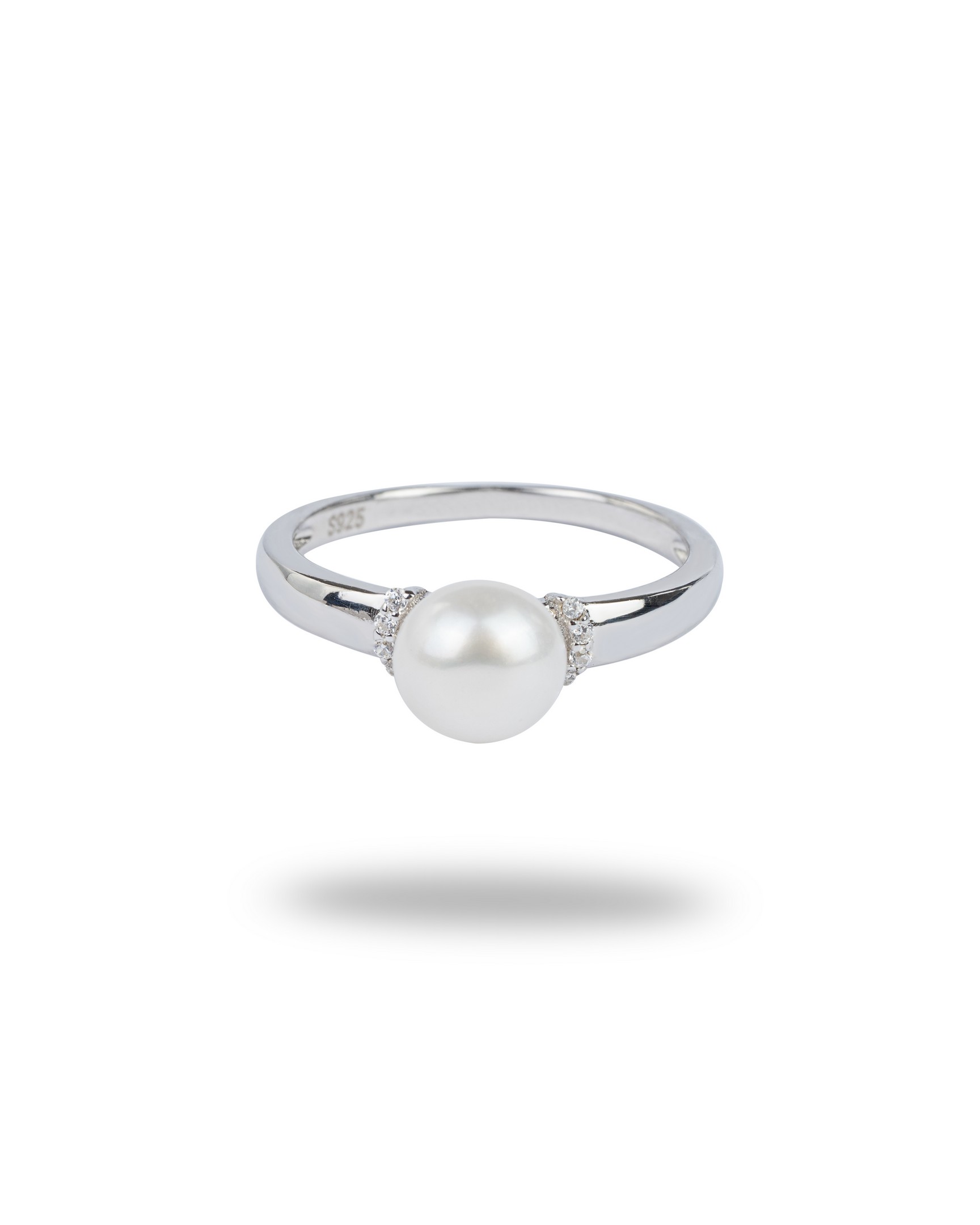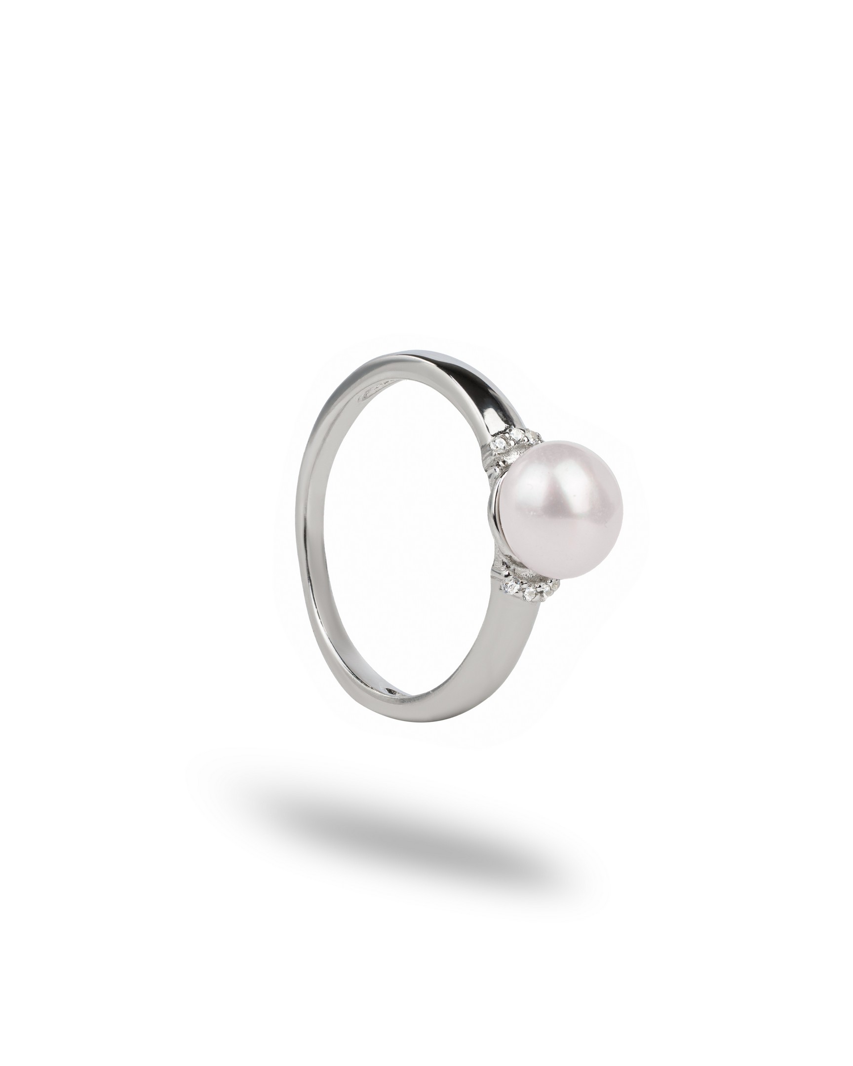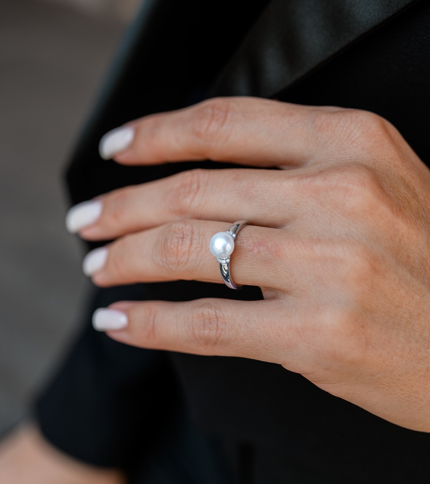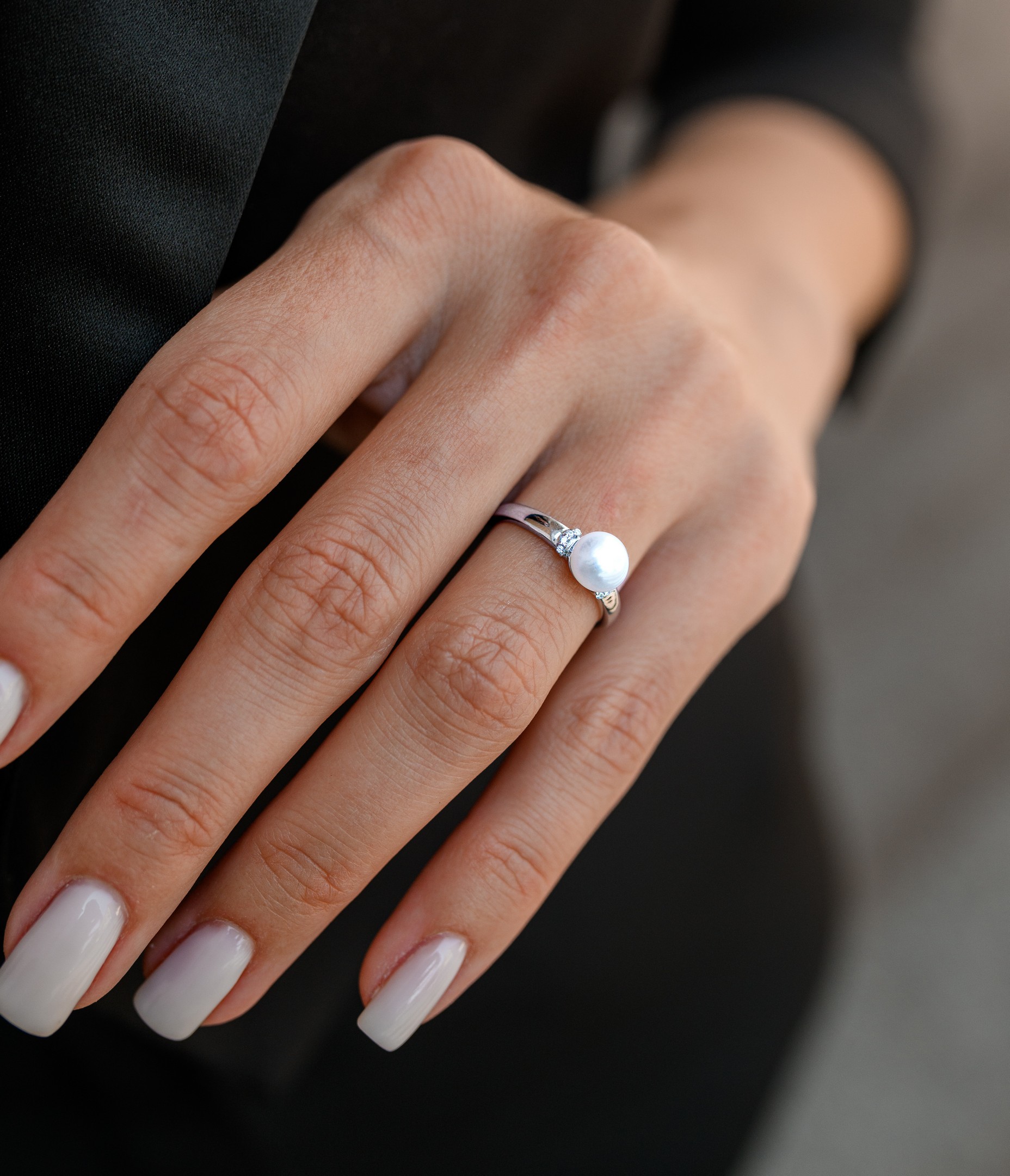 Каблучка срібна з перлиною та цирконієм діамантового огранювання 006946