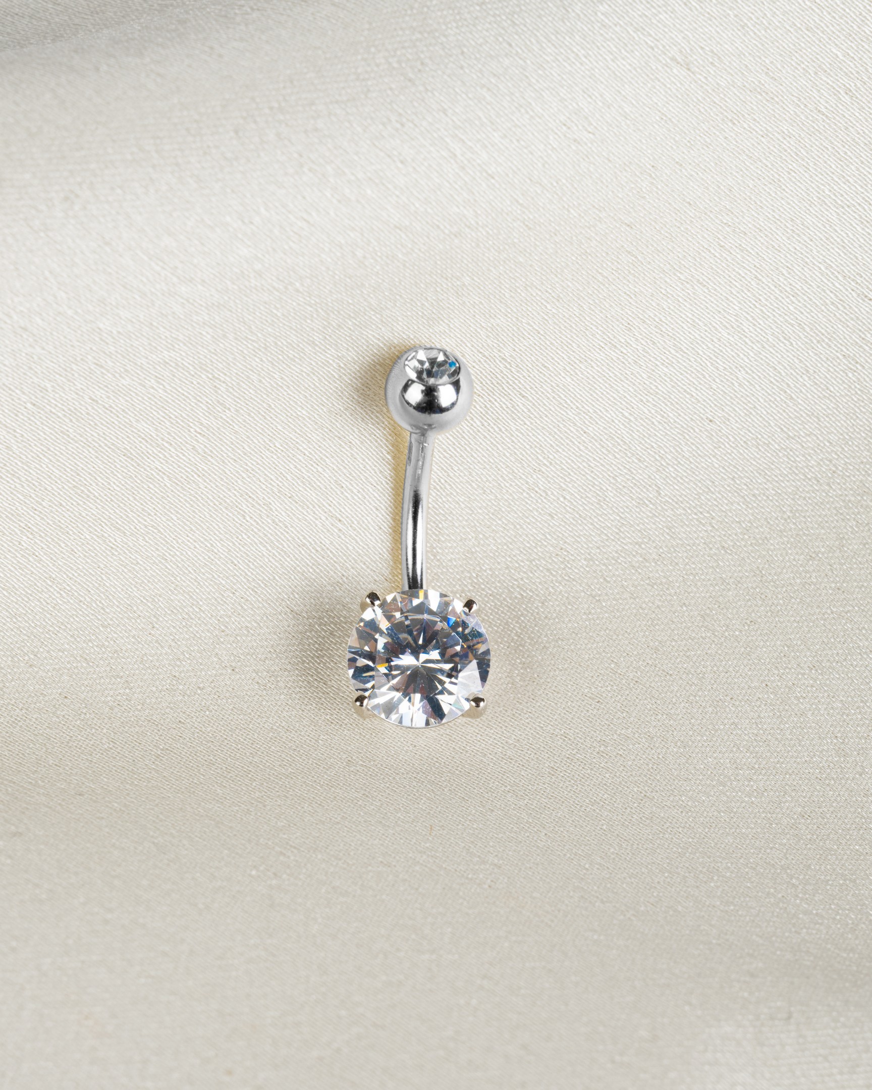 Пірсинг срібний в пупок з крупним цирконієм діамантового огранювання 006979