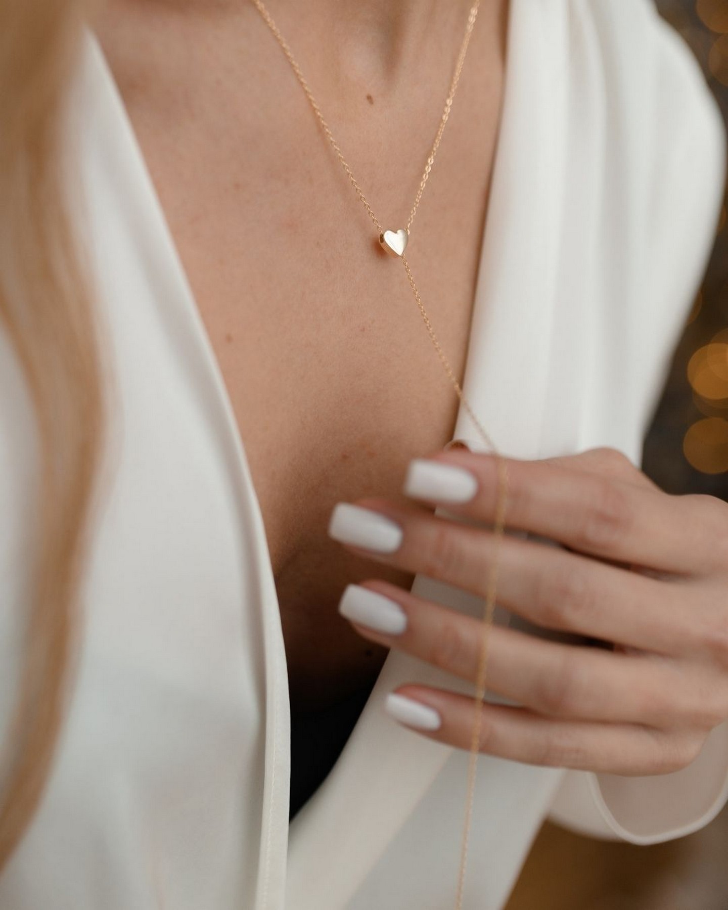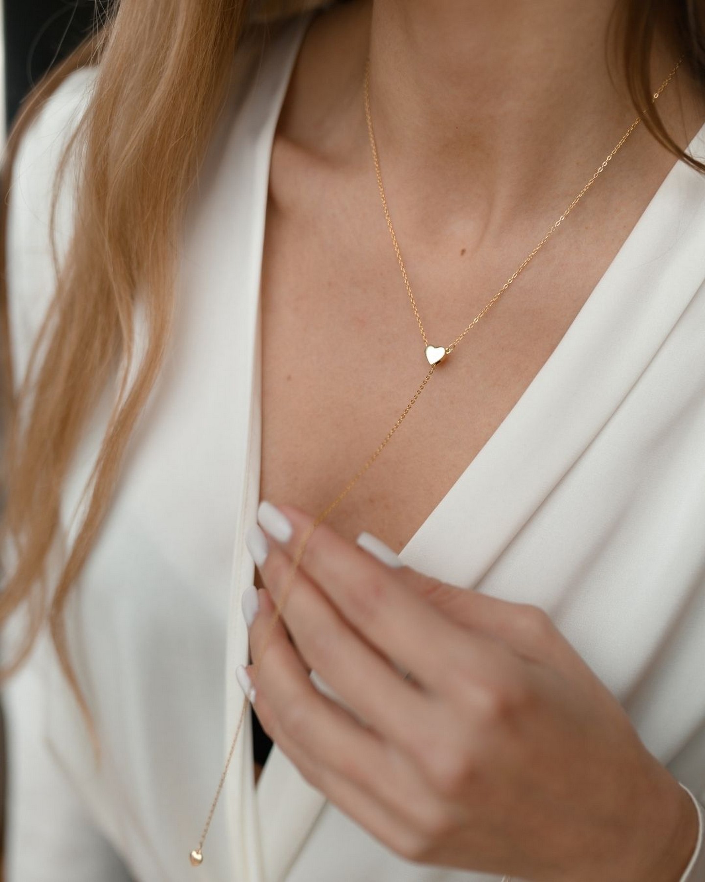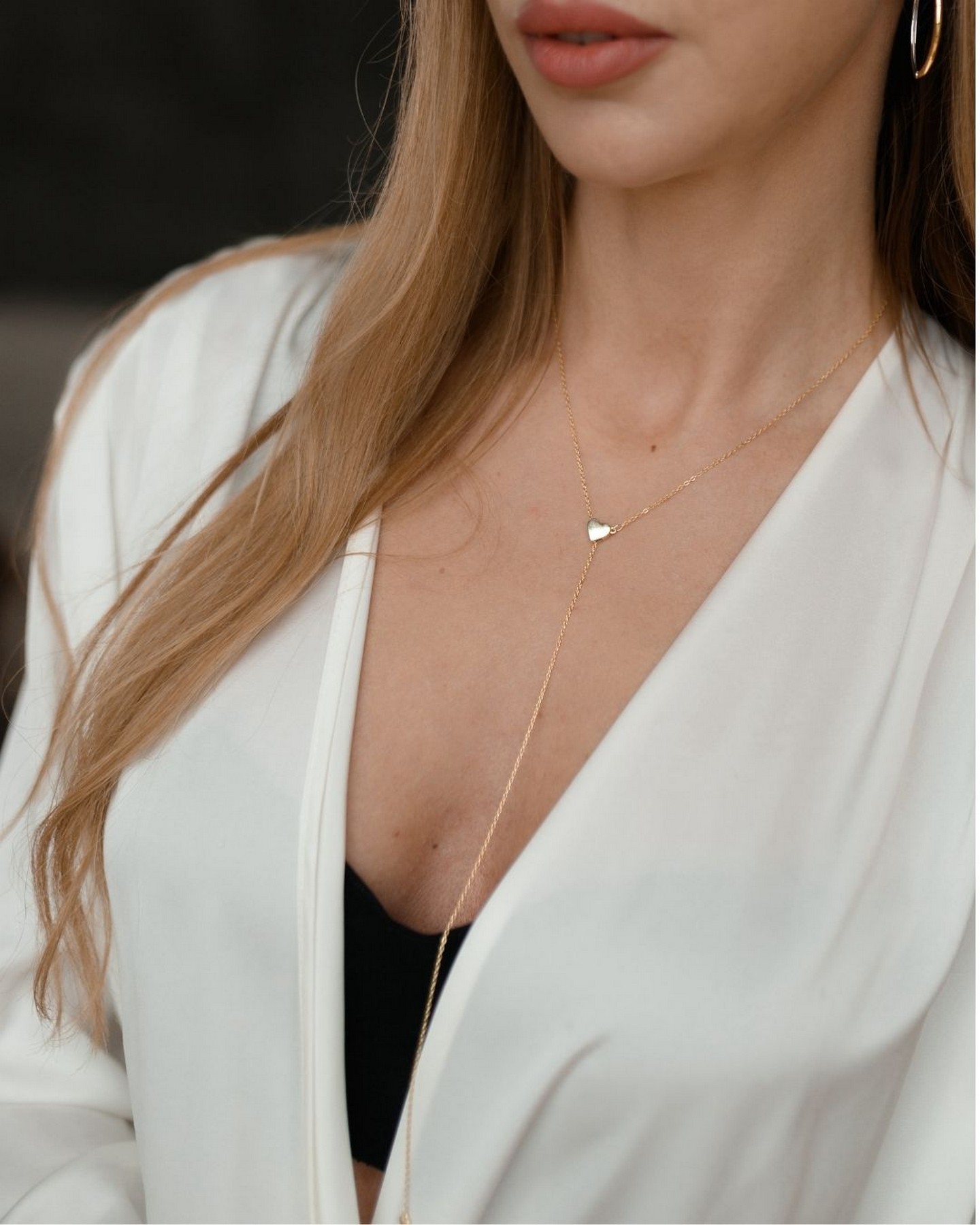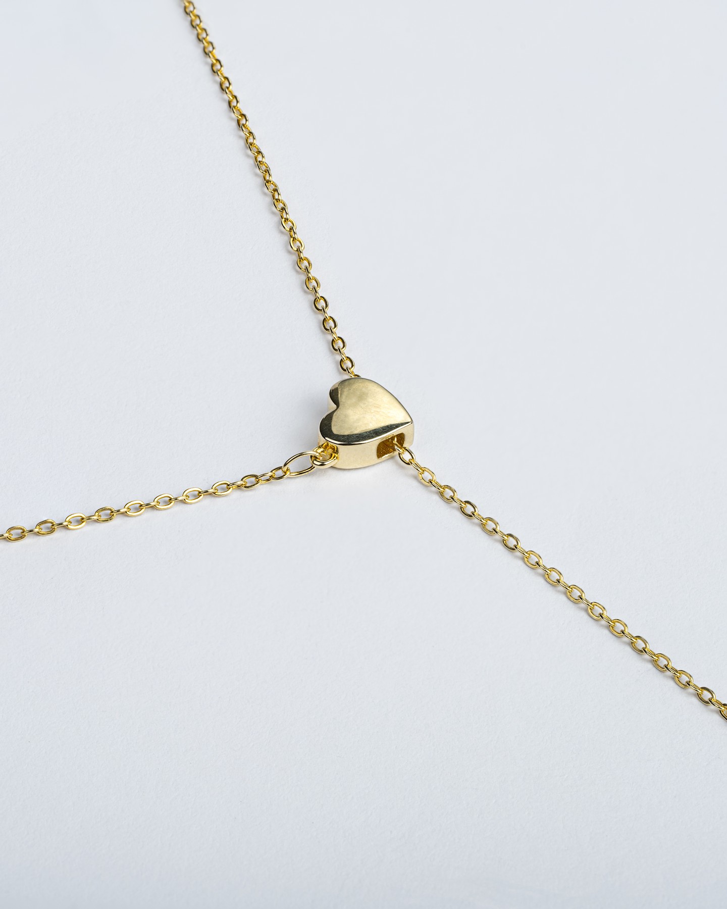 Срібне кольє-краватка із сердечком, що рухається у позолоті 007045