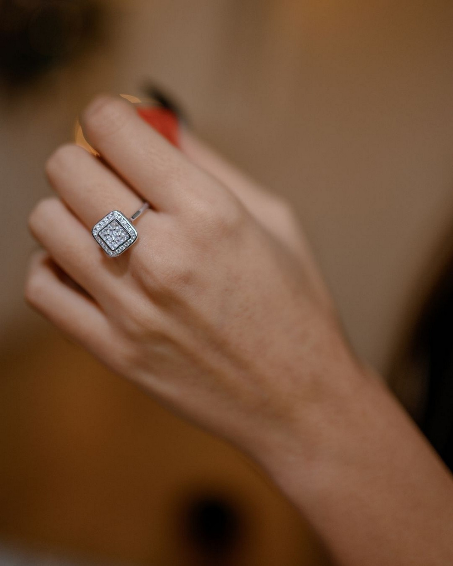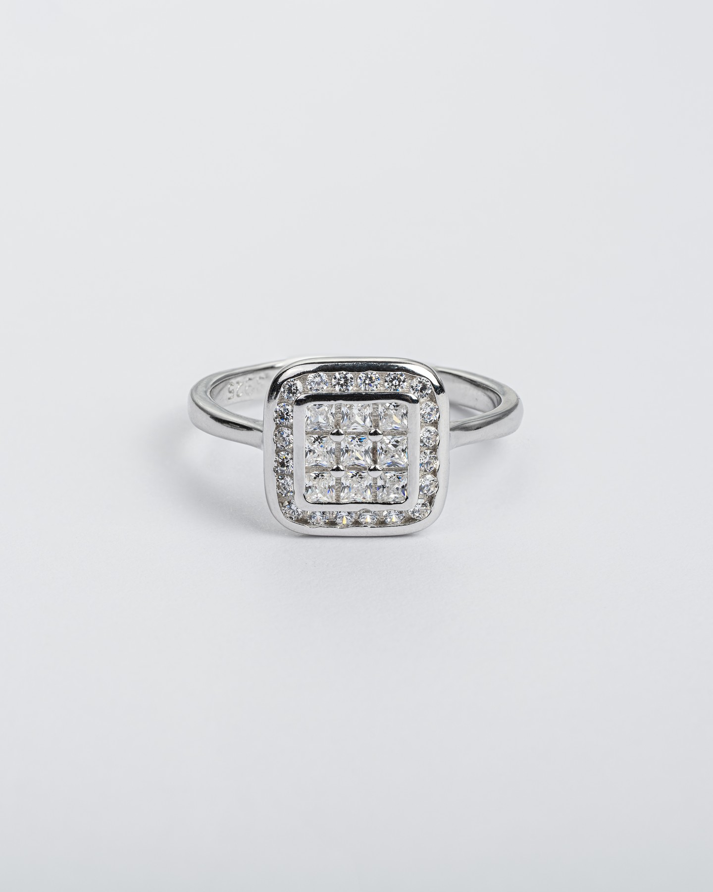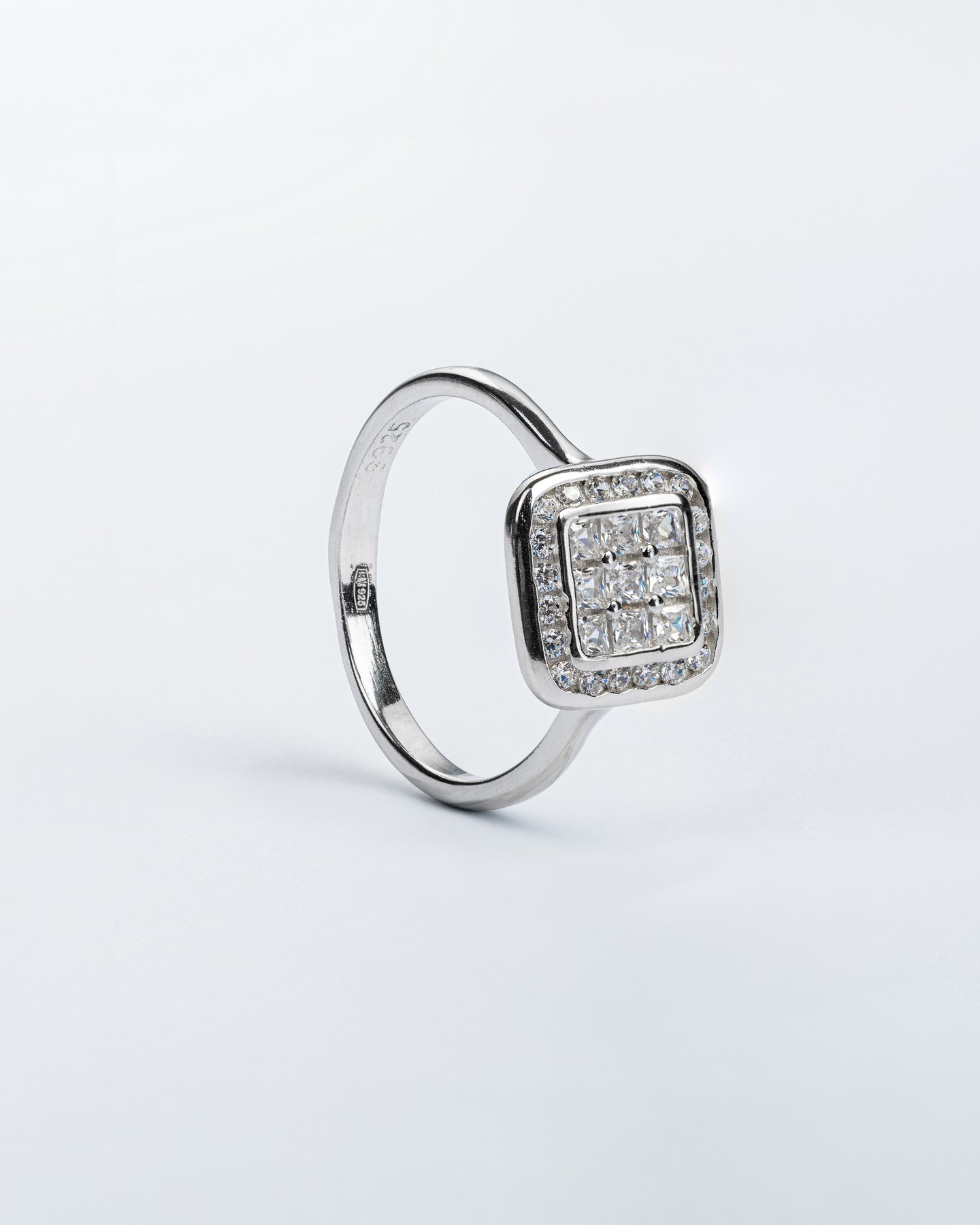 Каблучка срібна Квадрат із цирконієм діамантового огранюванню 007039