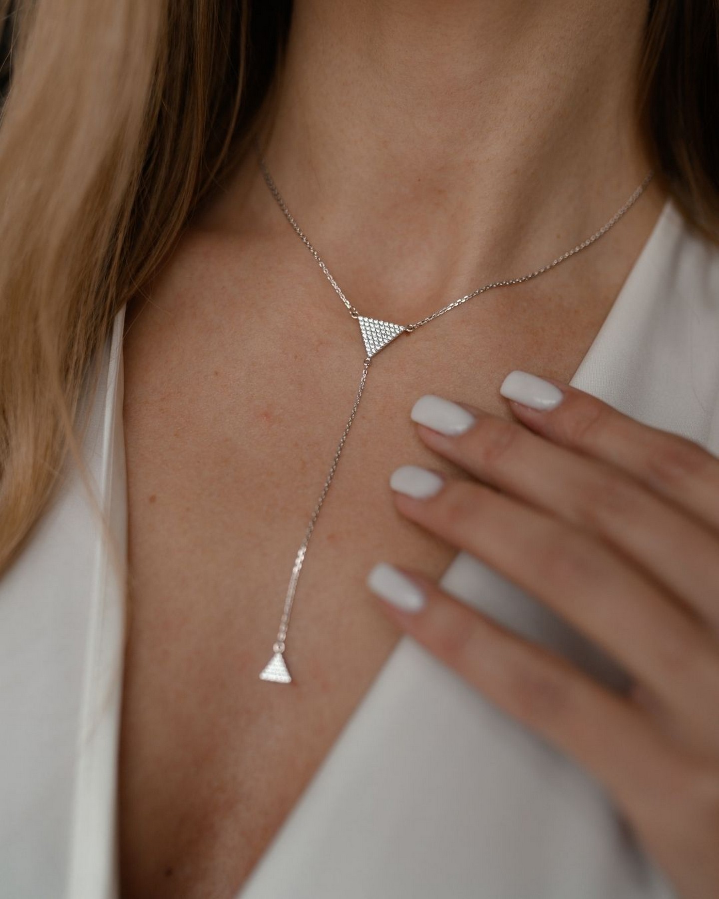 Кольє-краватка Трикутники з цирконієм діамантового огранювання 007075
