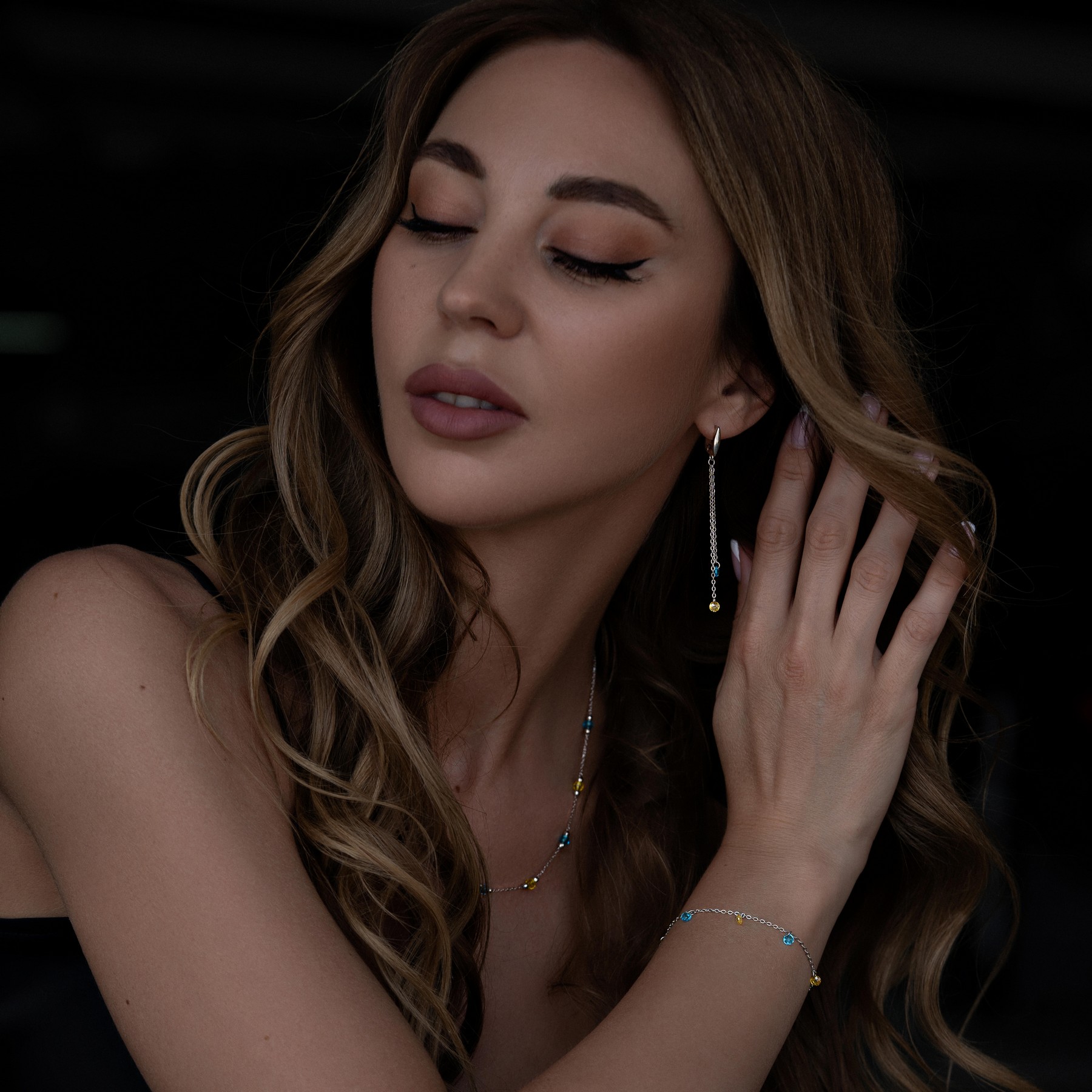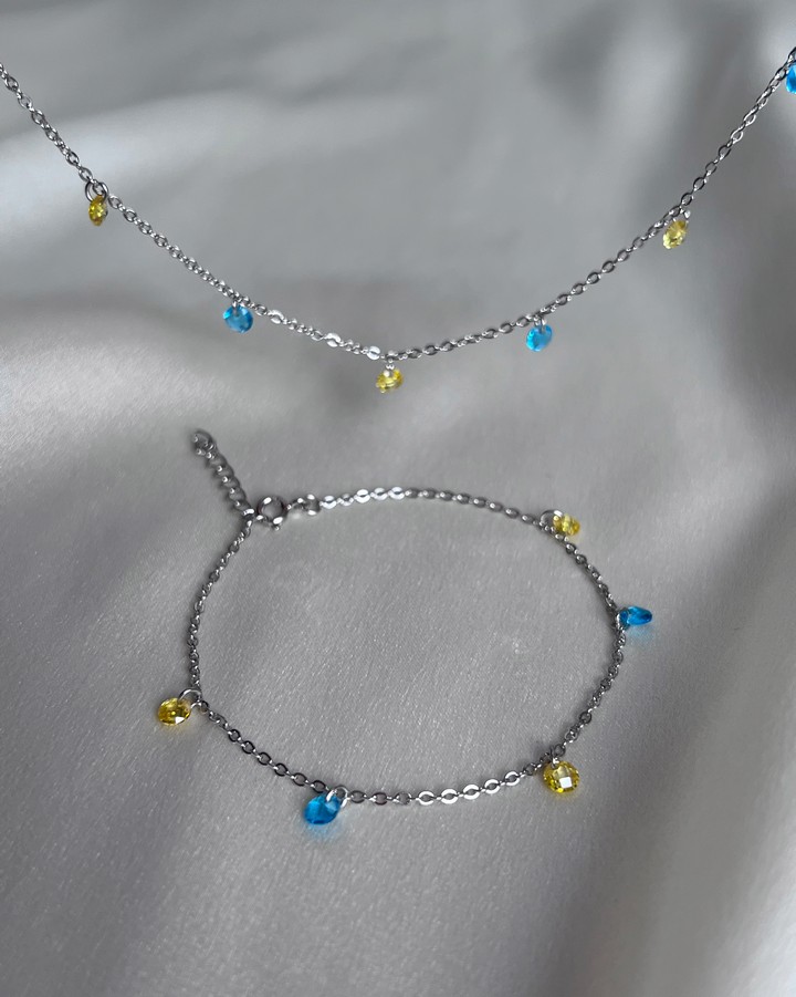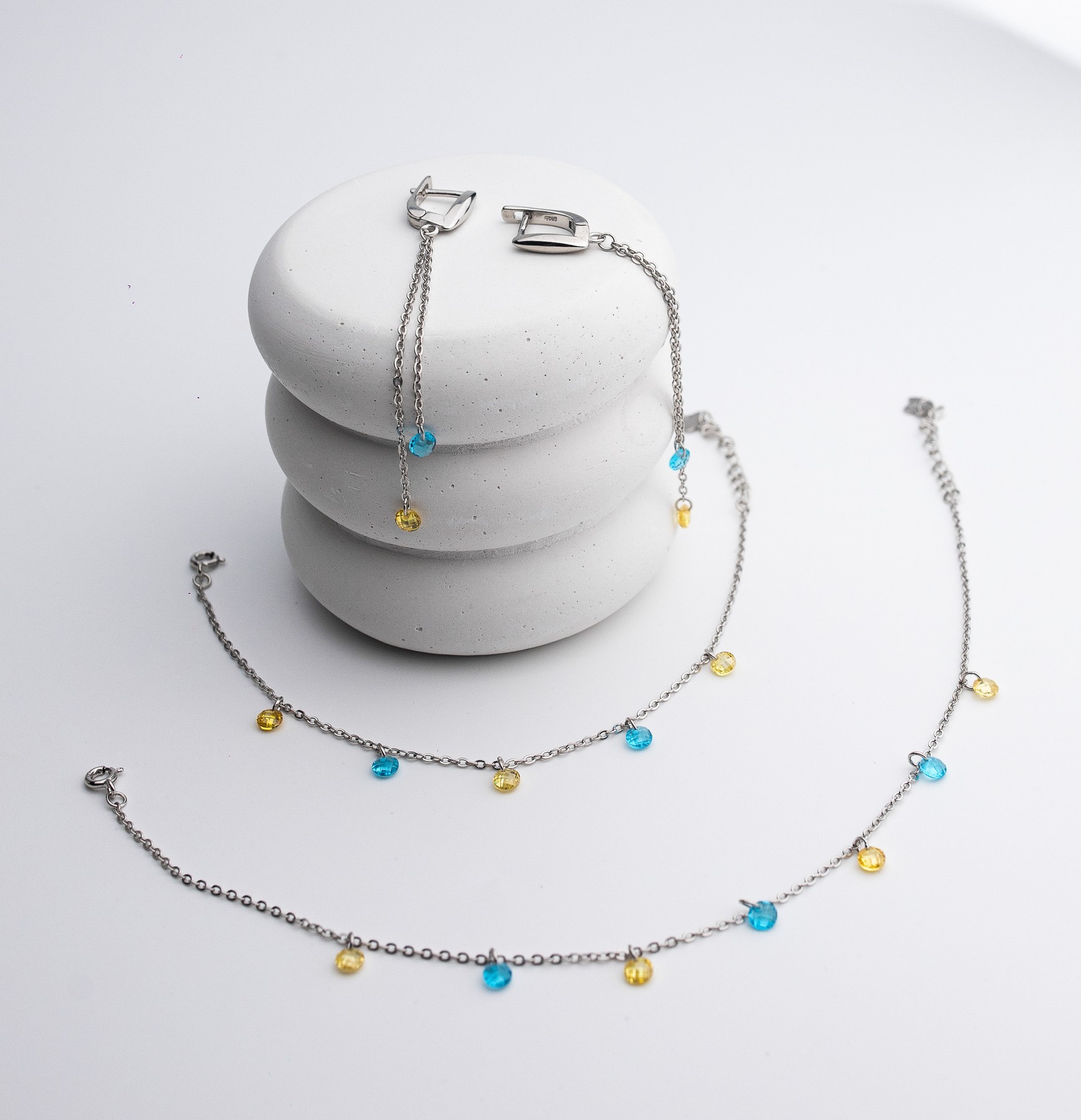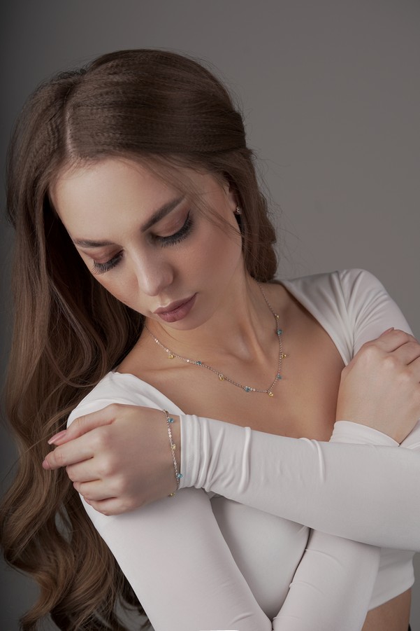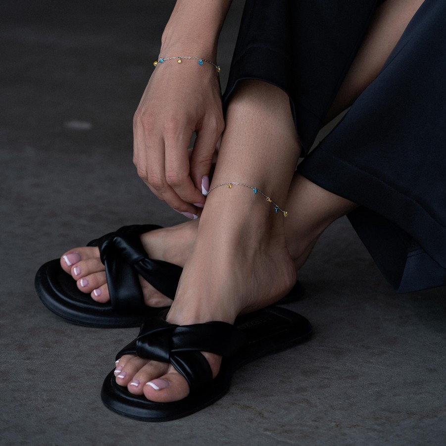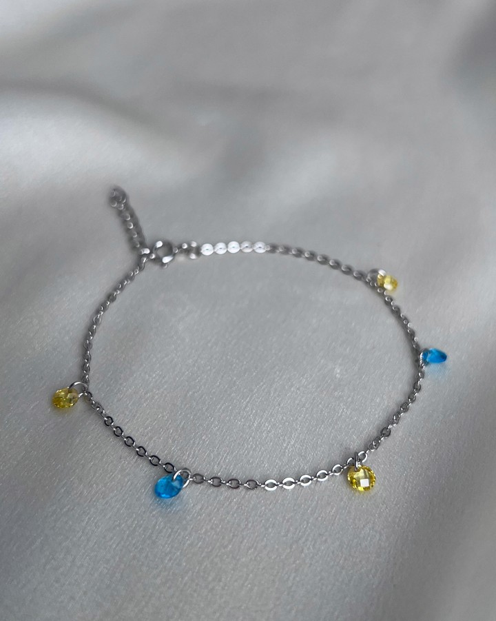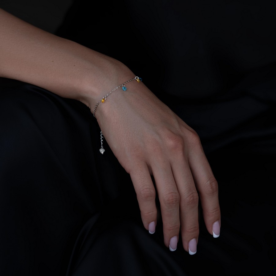 Браслет срібний із жовто-блакитним цирконієм