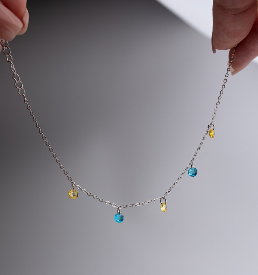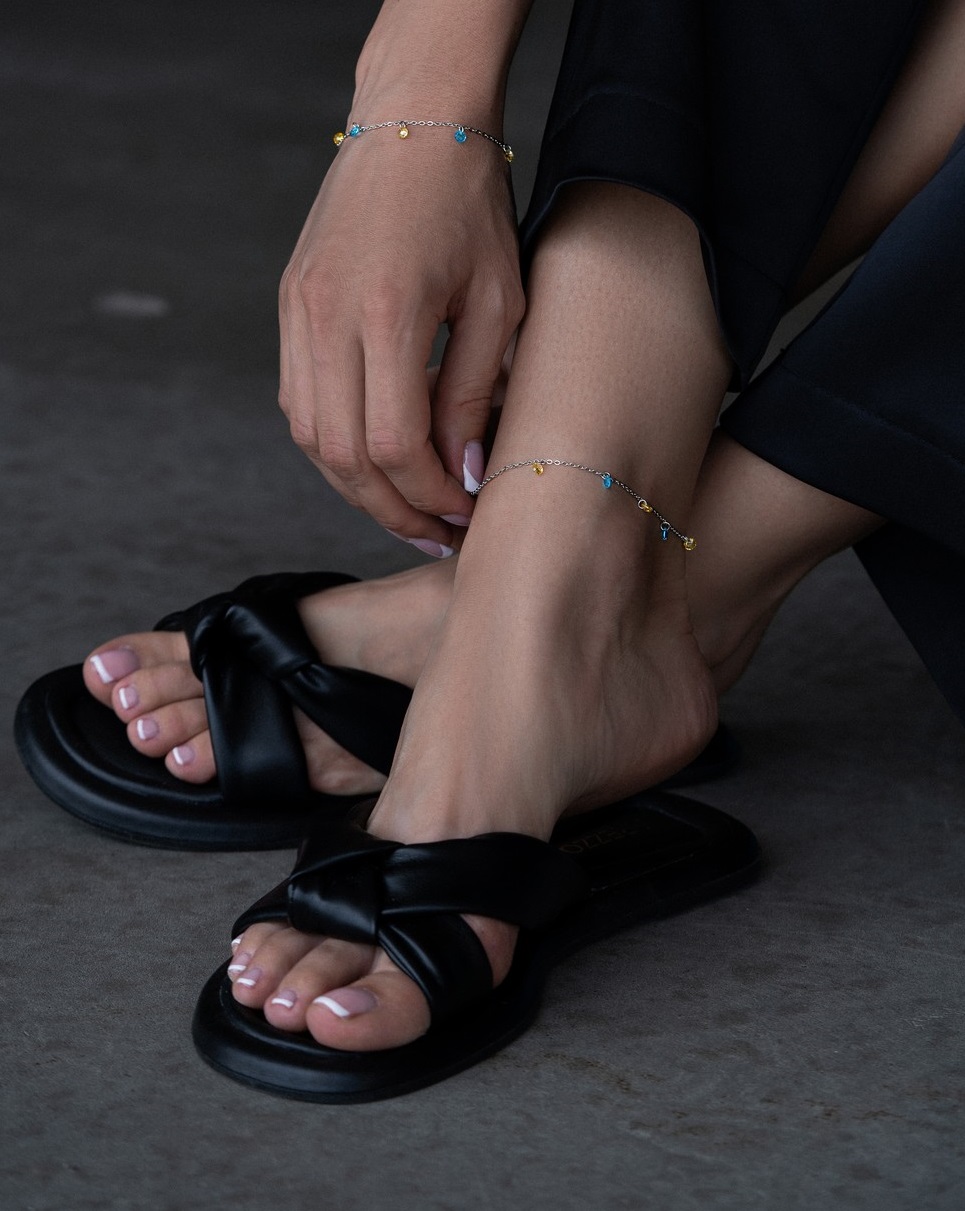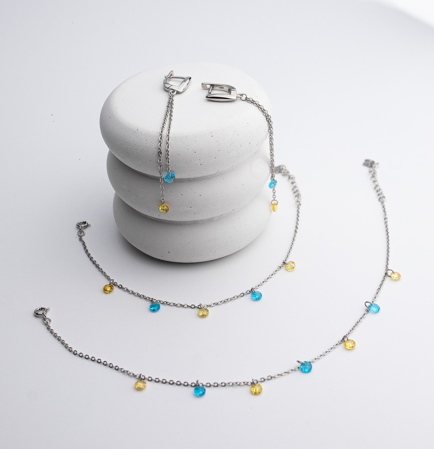 Браслет срібний на ніжку з жовто-блакитним цирконієм